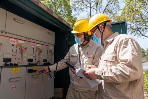 4月6日至7日,方舱医院建设进入冲刺阶段,公司集结用电检查、电气试验、配电运检等专业人员来到建设现场。他们内外兵分两路,场馆外,配电运检人员将花博园两路高压供电线路6个配电环网柜升级改造为自动化环网柜,以备后续外部供电线路发生故障时,可快速切除故障恢复方舱医院的供电。场馆内,用电检查人员和润源电建的电气试验人员,紧张有序地为3台10千伏变压器,以及2个高压进线柜、4个高压出线柜、20个低压出线柜、进线电缆做送电前的预防性电气试验。