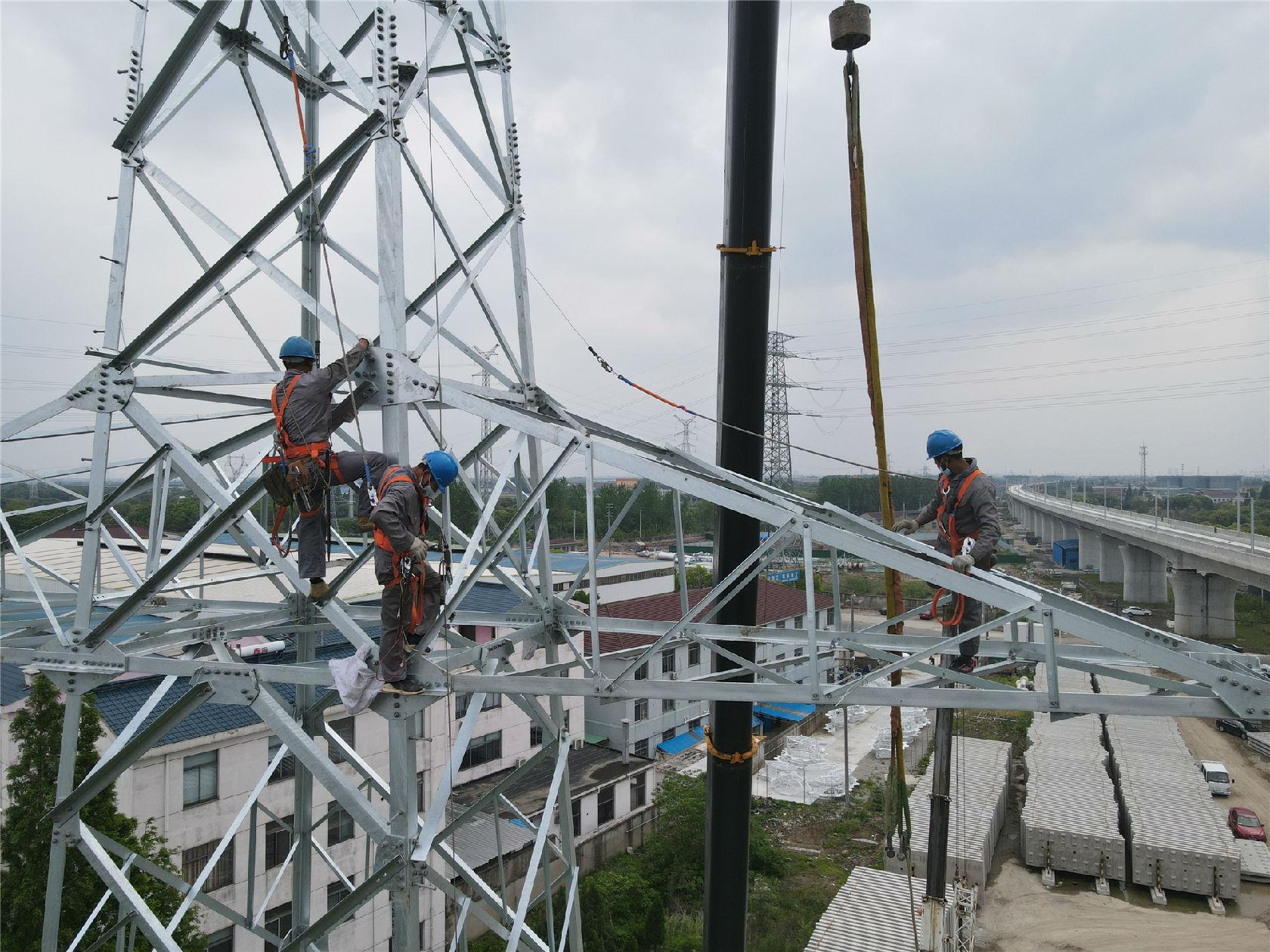 4月30日,“五一”假期的第一天,30多名电力工人奋战在江苏南沿江城际铁路常州东牵引站配套220千伏线路工程的施工现场,组立起为常州东牵引站输送电力的第一基铁塔。 江苏南沿江城际铁路是长江经济带综合立体交通走廊的重要组成部分,起于南京南站,止于太仓站后可利用沪苏通铁路进入上海枢纽,全长278.53千米,设计时速350千米,于2018年10月正式开工建设。建成通车后,沿线各区市将融入沪宁一小时交通圈。 高铁列车本身不带电源,电力经配套供电线路输送至牵引站,由牵引站为列车运行提供电能。江苏南沿江城际铁路在常州境内共有常州东、金坛两座220千伏牵引站,均配套新建双回路、共4条供电线路,累计新建铁塔97基、线路22.9千米,目前均已进入立塔阶段,预计在2022年底线路全线贯通,具备送电条件。 “在‘一手抓防疫,一手抓工程建设’的工作思路下,我们努力抓抢当前施工的黄金期,把被疫情影响的进度给抢回来。”国网常州供电公司项目管理中心项目经理张庆华介绍说,面对现场施工安全风险高、物资供应紧张、施工力量不足的难题,该公司成立党员突击队,提前谋划,采取机械化施工,压降现场施工风险;周密安排,打通各环节供应链,确保物资供应顺畅;积极统筹,协调各方力量,增派施工人员,全力保障项目如期投运。 据悉,“五一”假期期间,常州地区共25个电网基建施工现场在如火如荼建设中,739人坚守岗位,确保全年建设目标顺利完成。