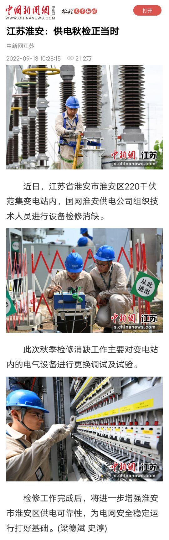 中国新闻网:江苏淮安:供电秋检正当时