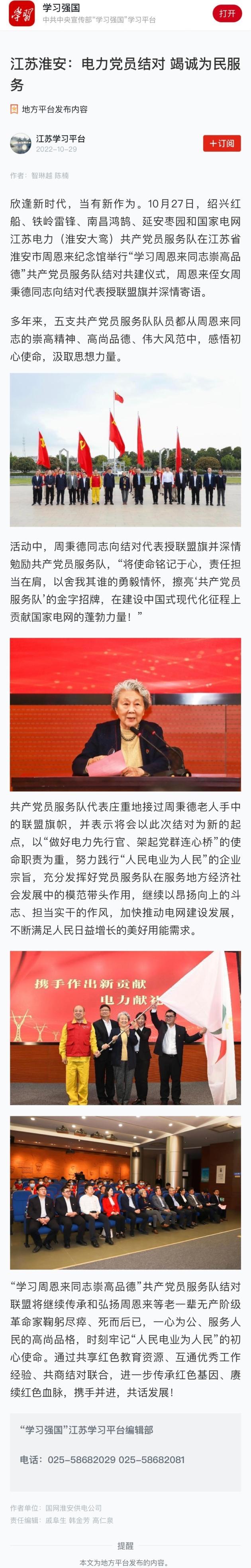 学习强国:江苏淮安:电力党员结对 竭诚为民服务