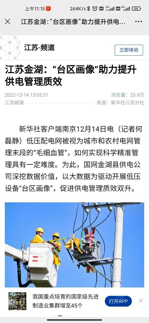 新华社:江苏金湖:“台区画像”助力提升供电管理质效