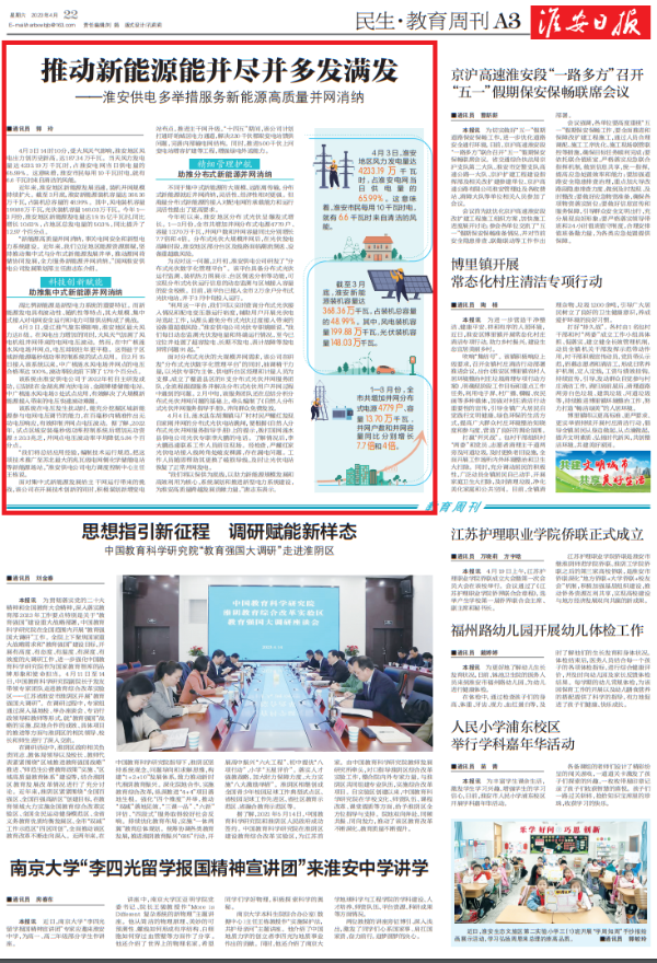 淮安日报版面头条:推动新能源能并尽并多发满发