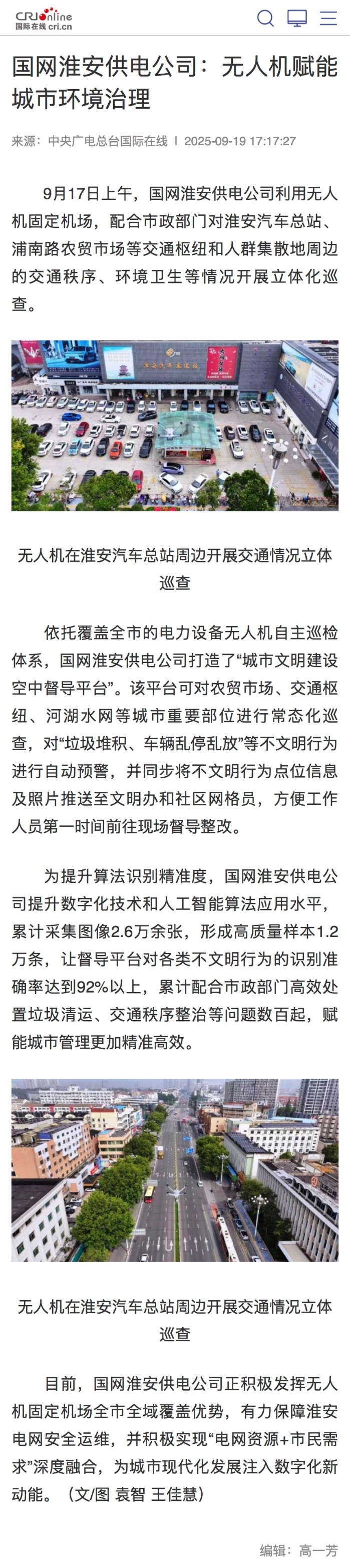 央广国际在线:国网淮安供电公司 无人机赋能城市环境治