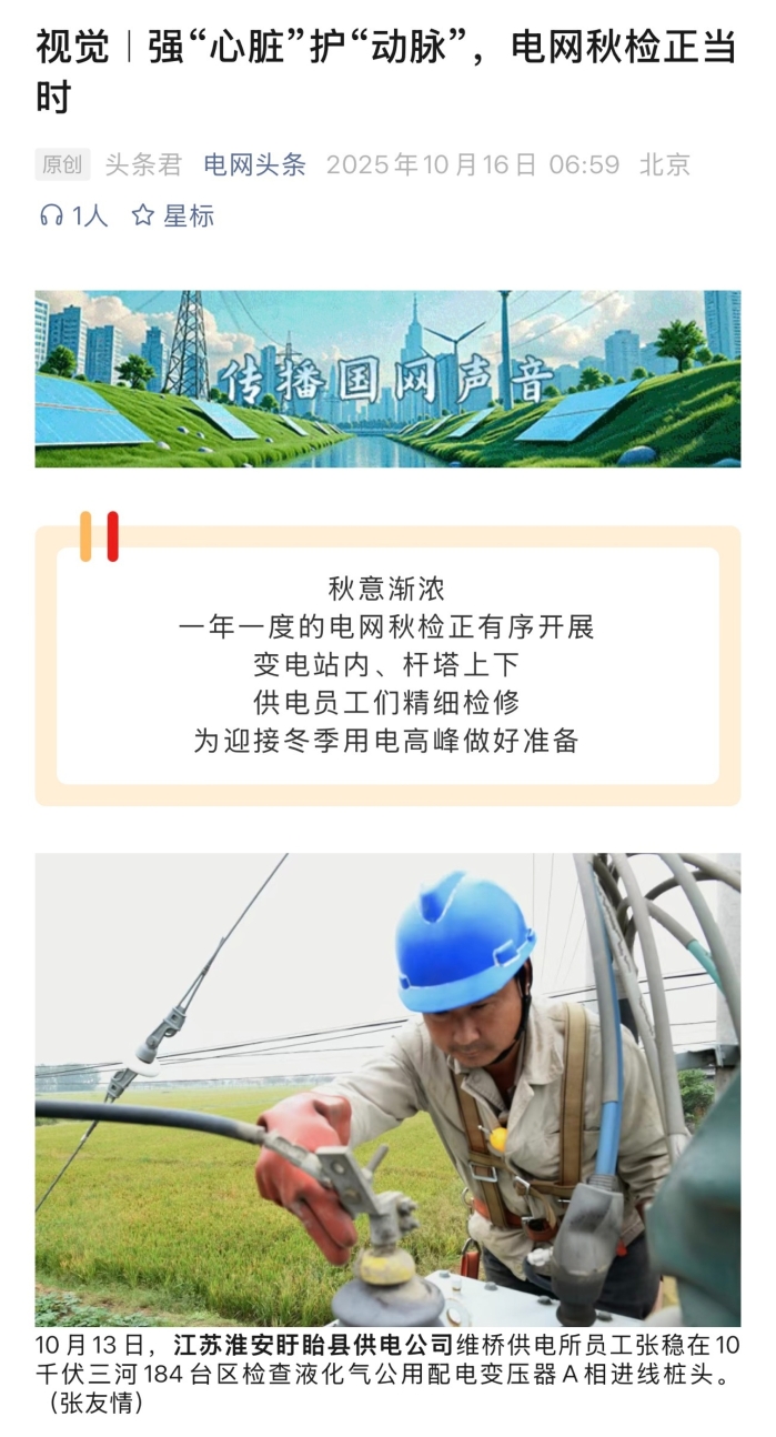 电网头条微信公众号:视觉|强“心脏”护“动脉”,电网秋检正当时
