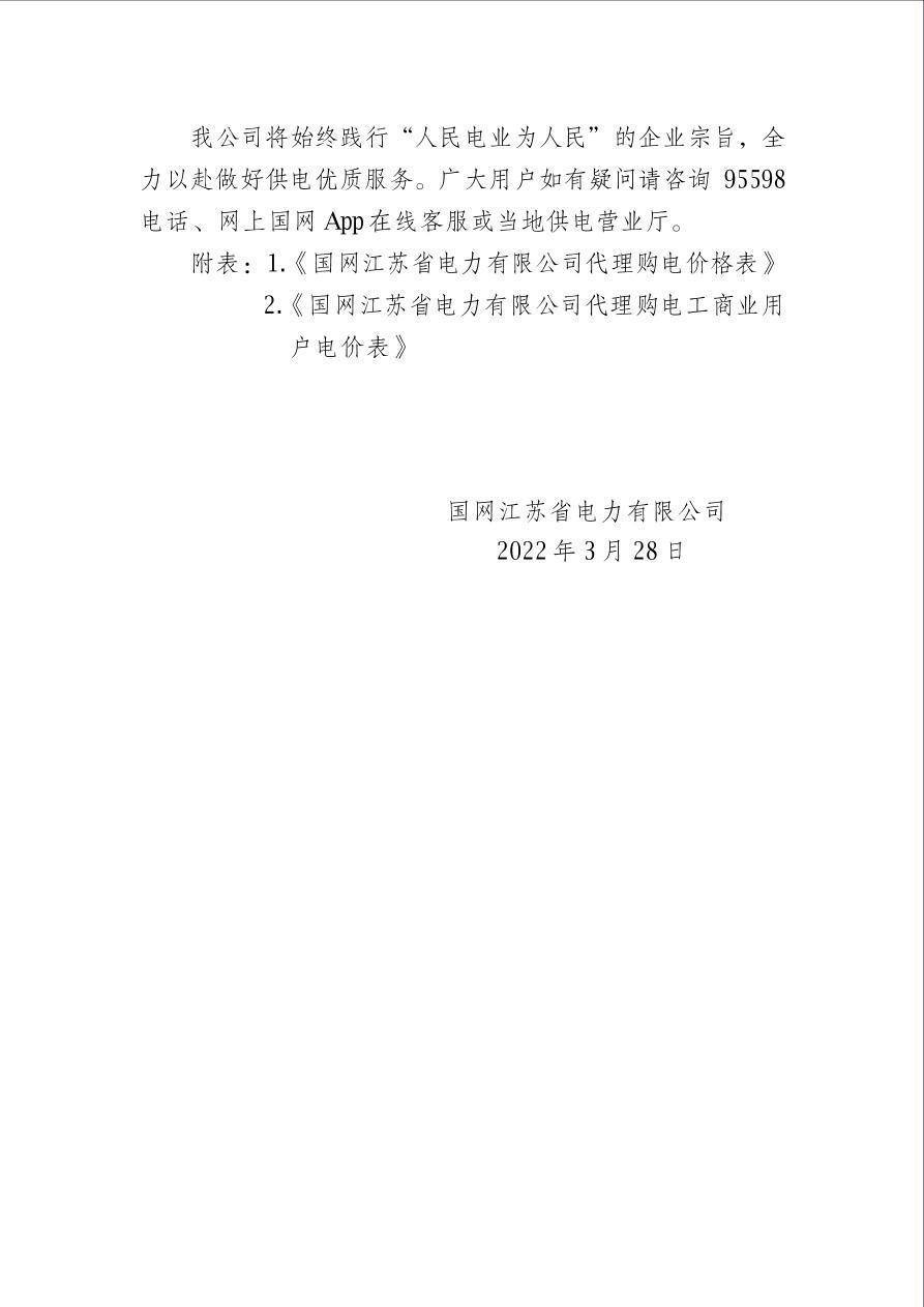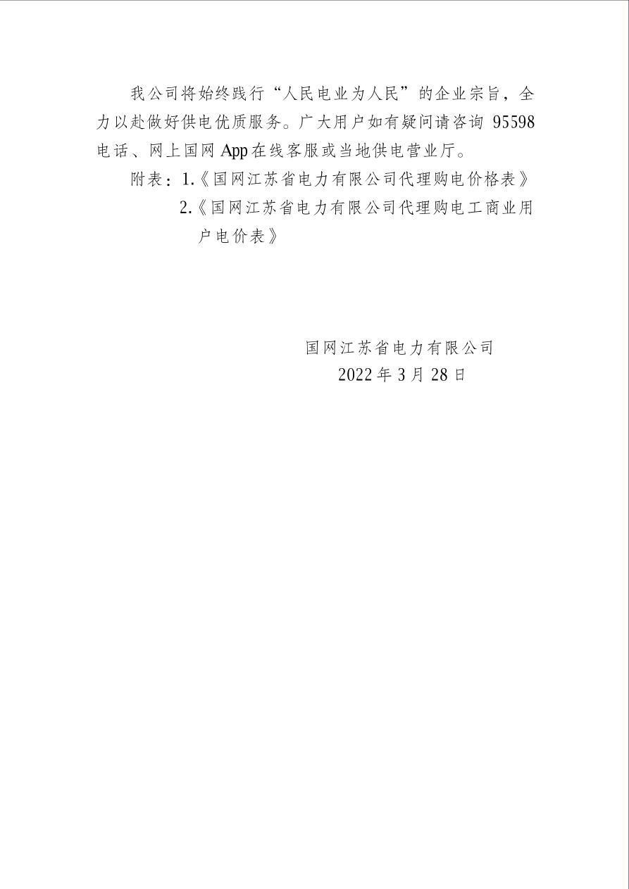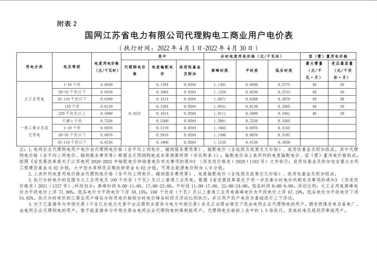 国网江苏省电力有限公司关于2022年4月代理购电工商业用户电价的公告