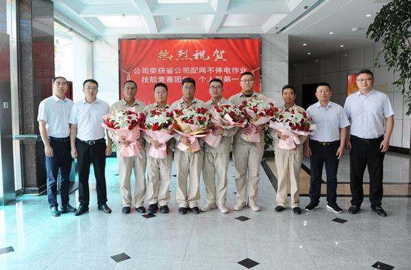 8月5日,公司领导景巍巍、陈健、崔建胜、钱波慰问配网不停电作业技能竞赛获奖选手和教练员,向他们送上鲜花,对他们为公司争得荣誉表示祝贺,号召公司广大员工以获奖选手为榜样,在公司上下形成比学赶超的良好氛围。 在刚刚结束的全省配网不停电作业技能竞赛中,灌南公司员工袁泉取得10千伏综合不停电法更换柱上变压器项目第一名,获评一等奖;赣榆公司员工宋厚明取得第二名,获评二等奖;在0.4千伏配电柜台区综合智能融合终端个人项目中,公司两位选手以大比分优势斩获前两名,其中,灌南公司员工周良志获得个人第一名,配电运检中心陈家玄获得个人第二名;在10千伏空载电缆搭接架空引线个人项目中,齐天工程公司员工马飞飞获得个人第六名。公司参赛选手历经千锤百炼,创造了公司参加省公司不停电作业技能竞赛历史最佳战绩,用优异成绩为公司争得了荣誉。