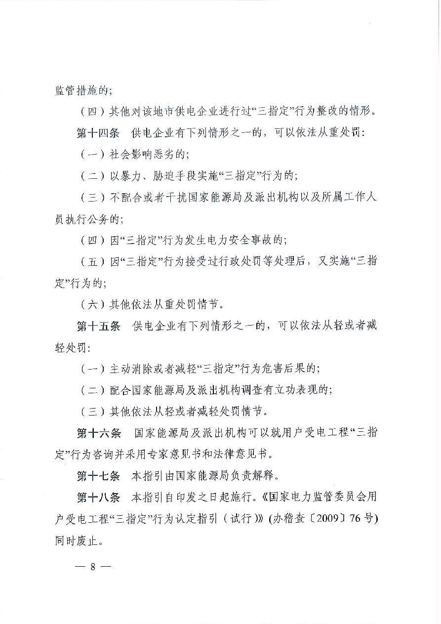 国家能源局关于印发《国家能源局用户受电工程“三指定”行为认定指引》的通知(国能发监管〔2020〕65号)
