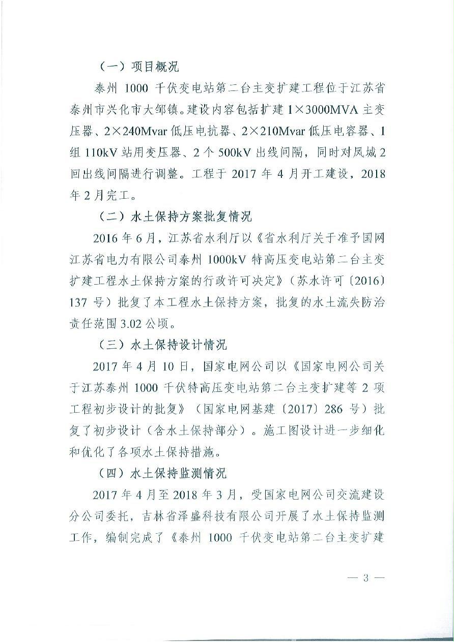泰州1000千伏变电站第二台主变扩建工程水土保持设施验收鉴定书