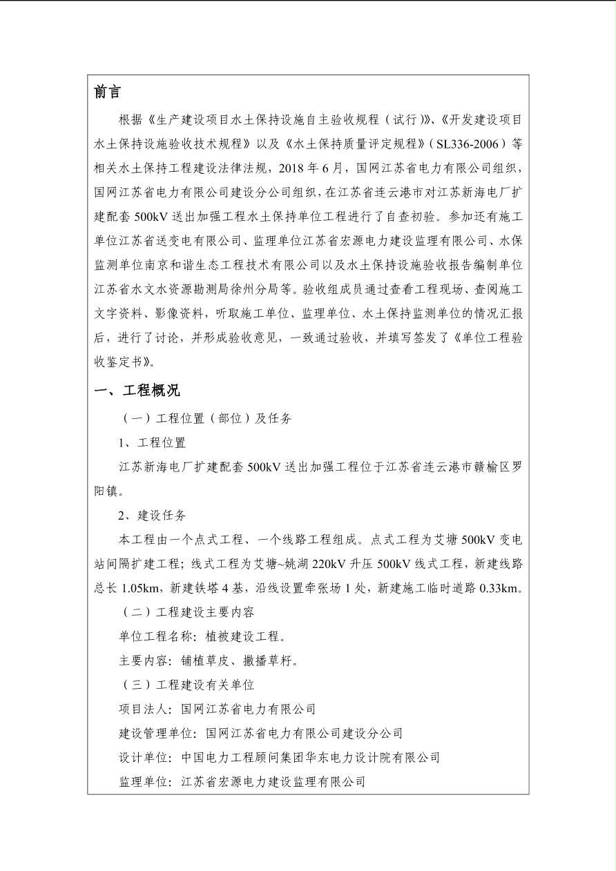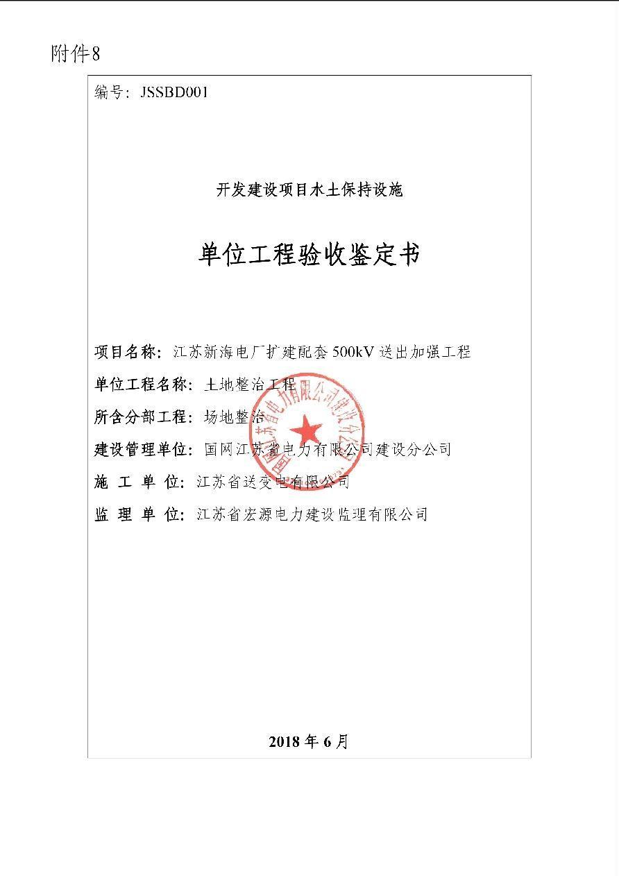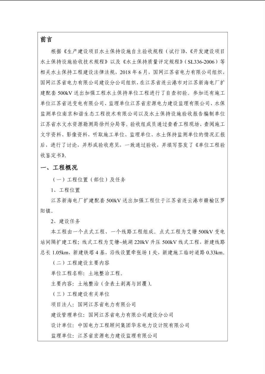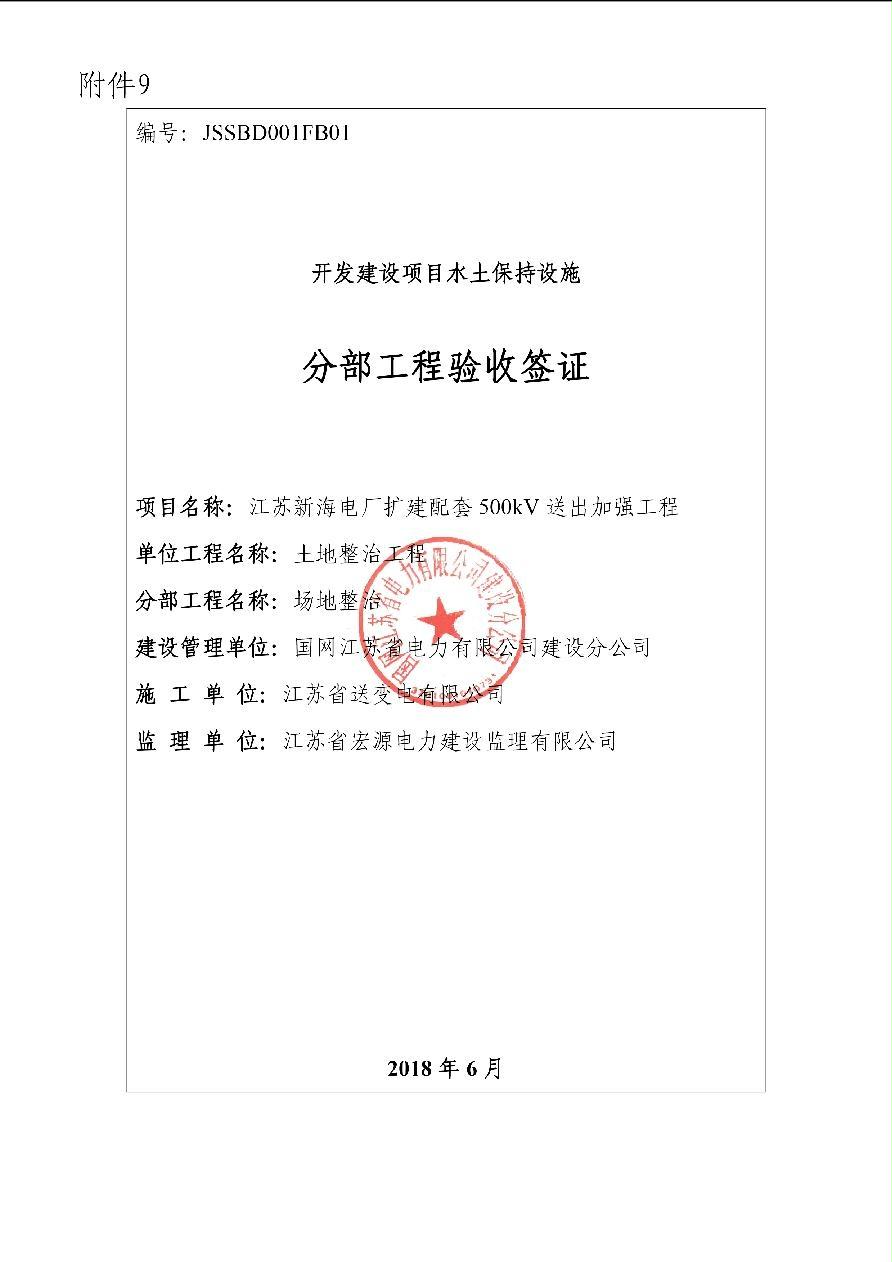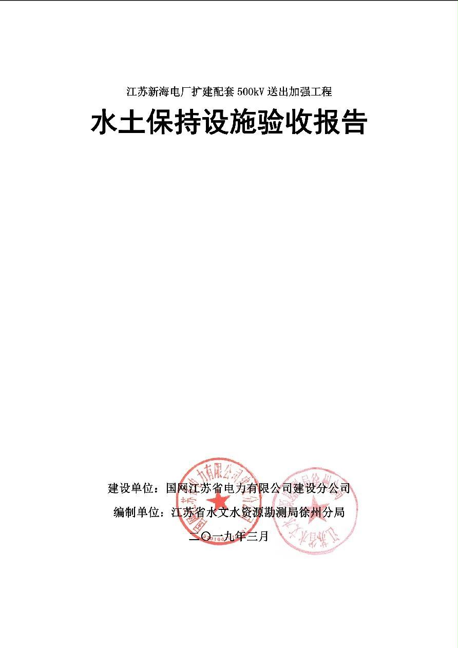 江苏新海电厂扩建配套500千伏送出加强工程设施验收报告