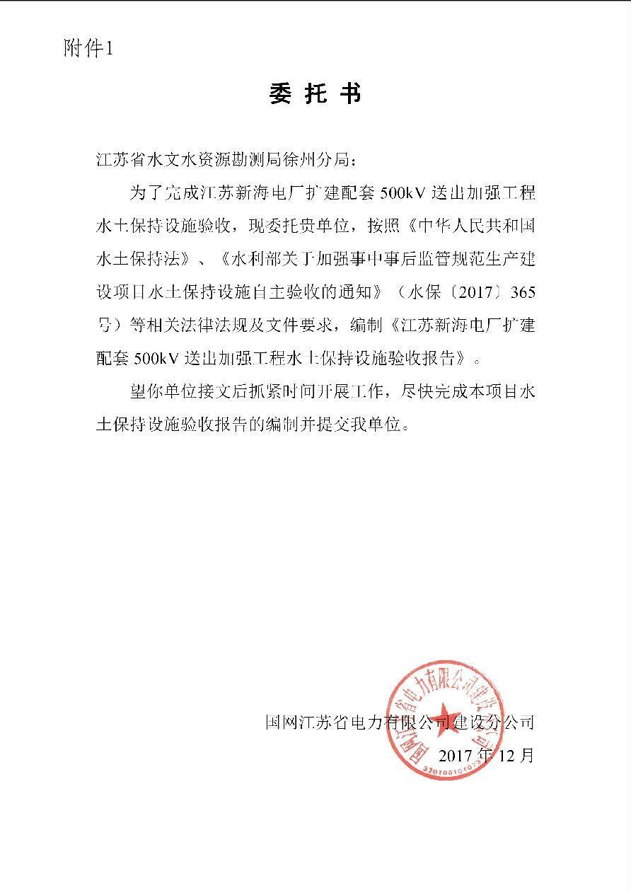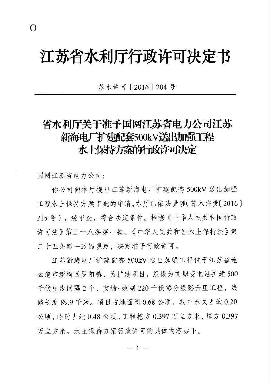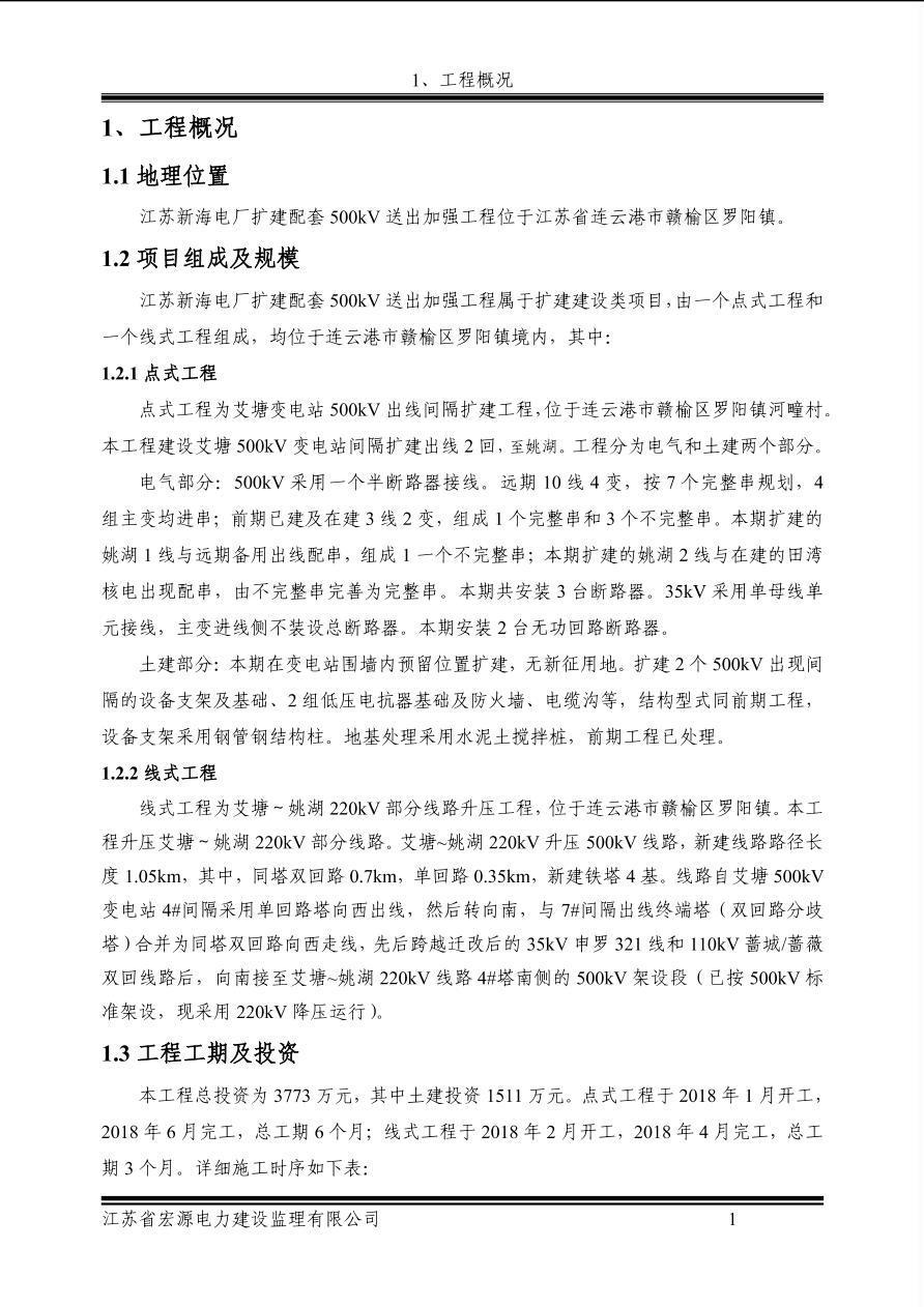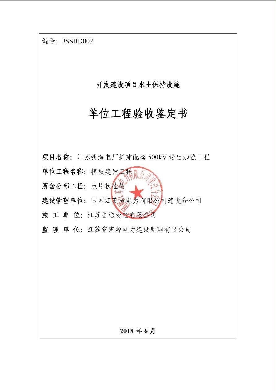 江苏新海电厂扩建配套500千伏送出加强工程设施验收报告