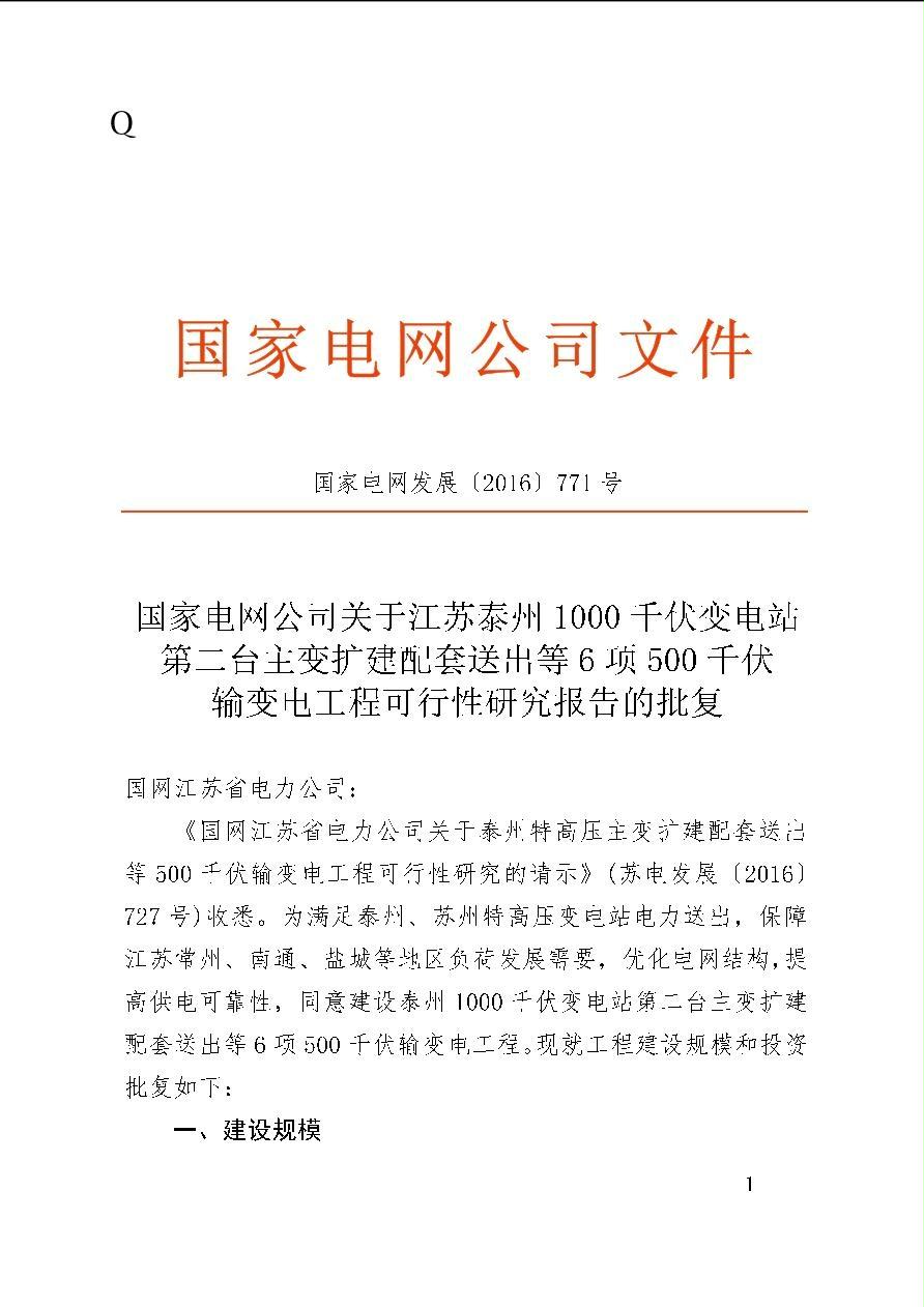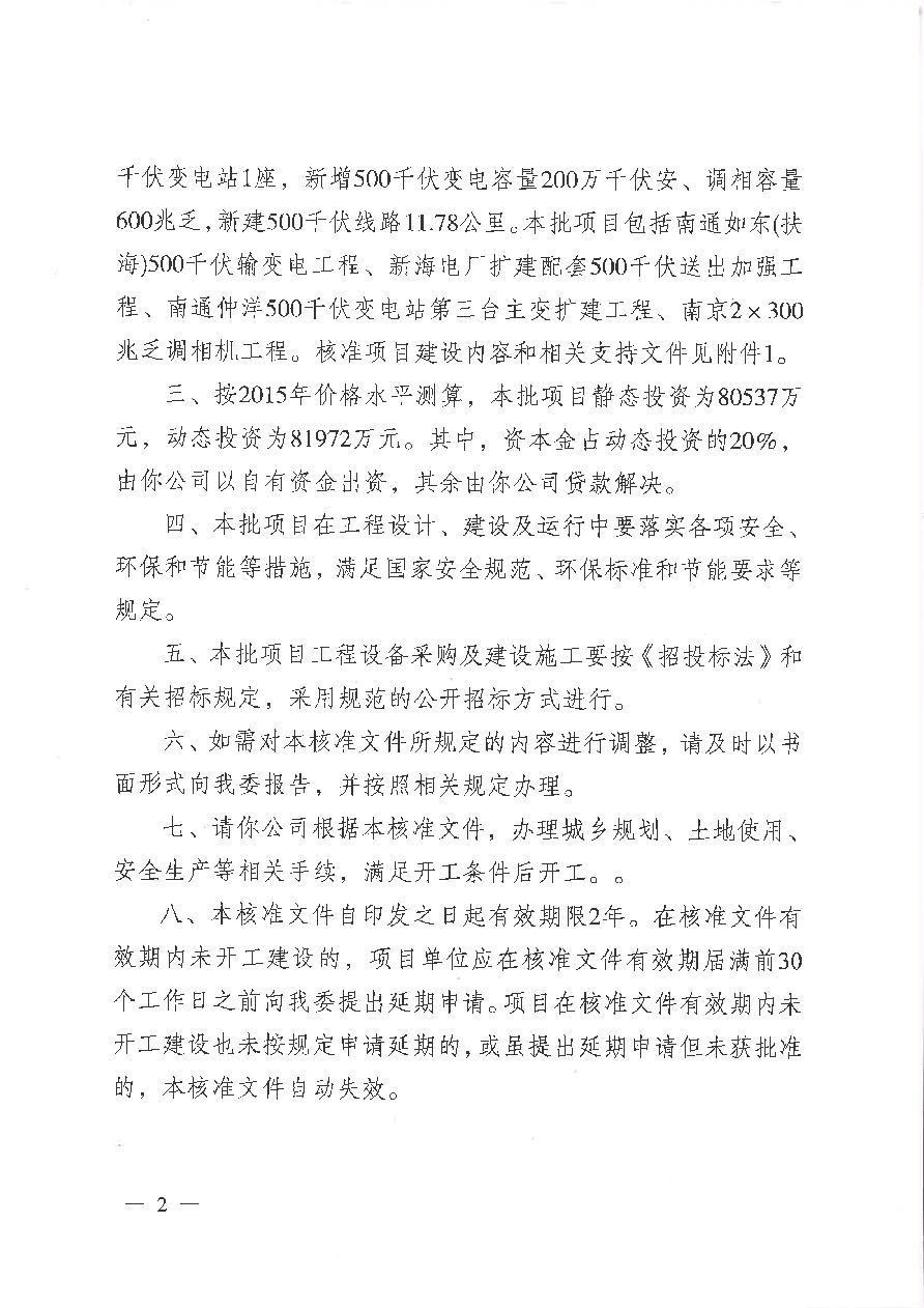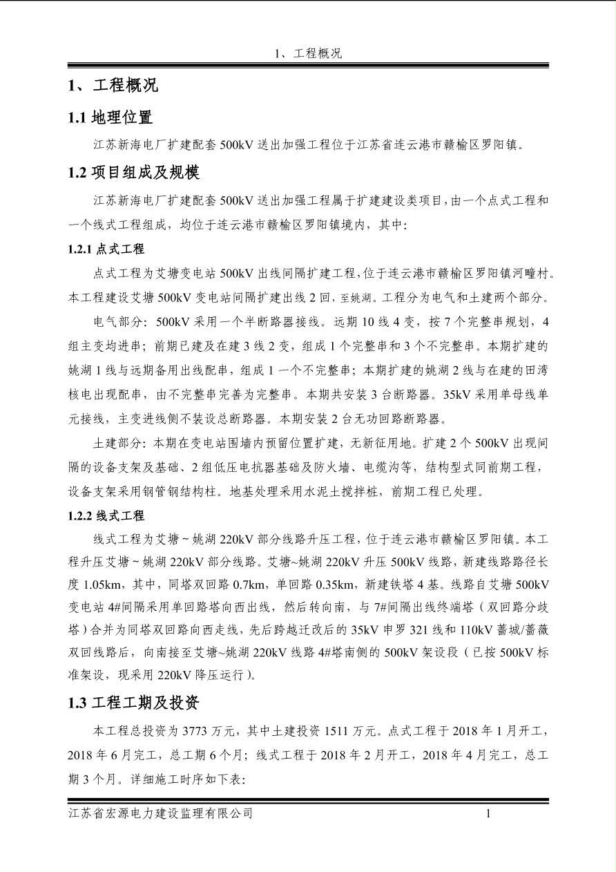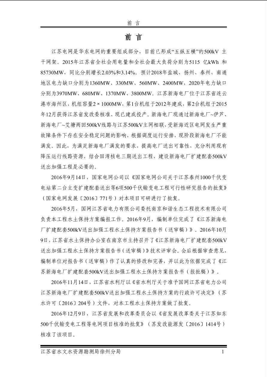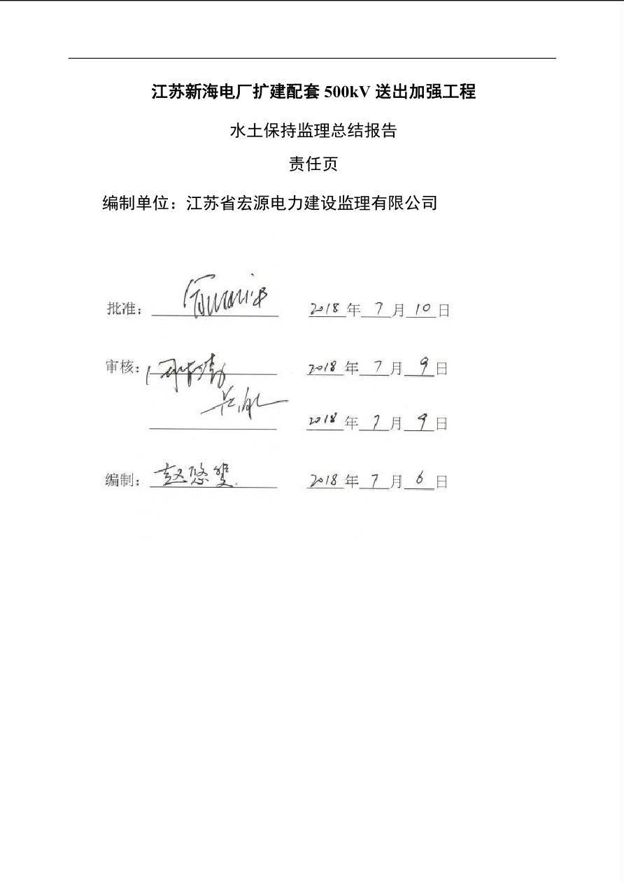 江苏新海电厂扩建配套500千伏送出加强工程设施验收报告