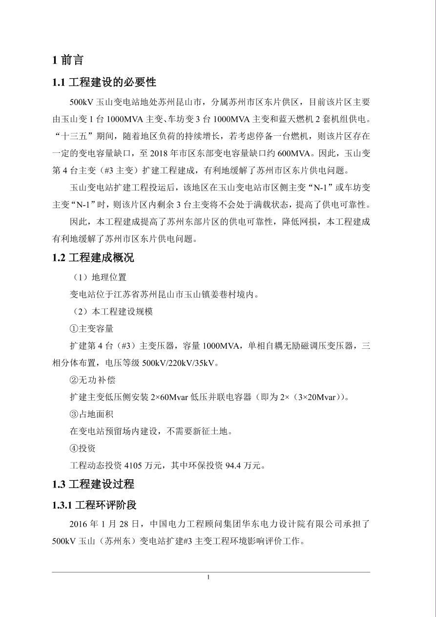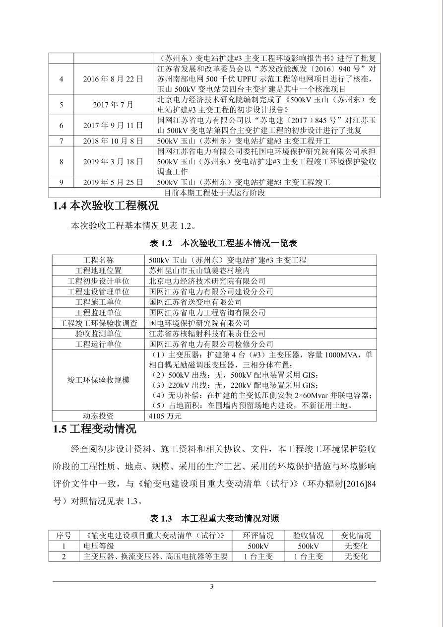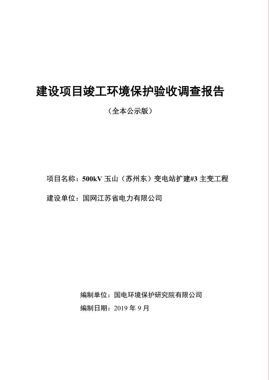500kV玉山(苏州东)变电站扩建#3主变工程竣工环境保护验收调查报告