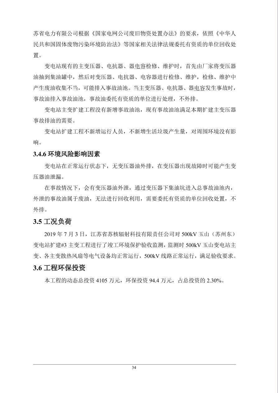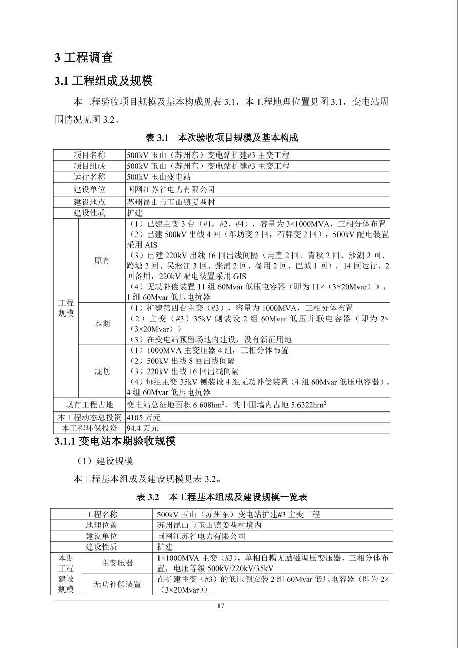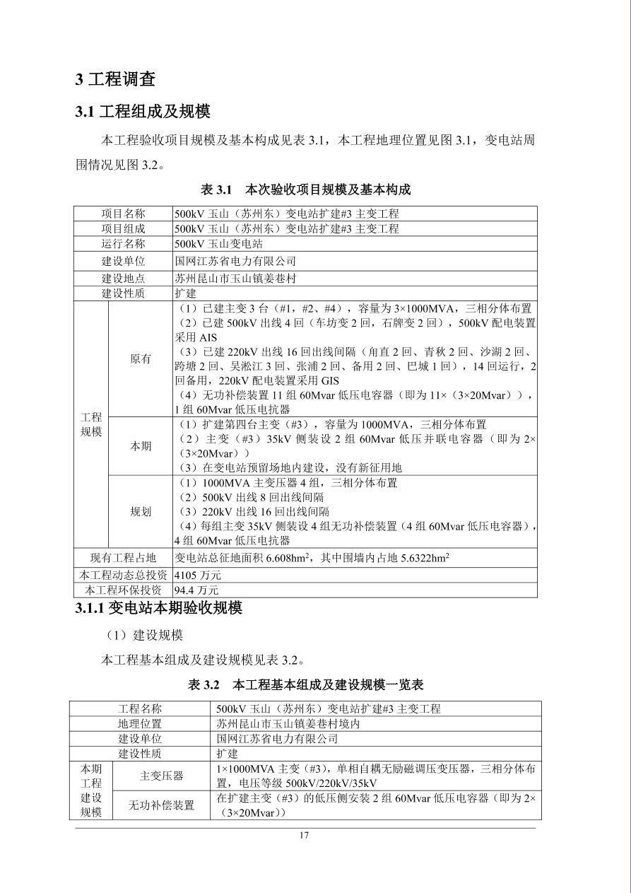 500kV玉山(苏州东)变电站扩建#3主变工程竣工环境保护验收调查报告