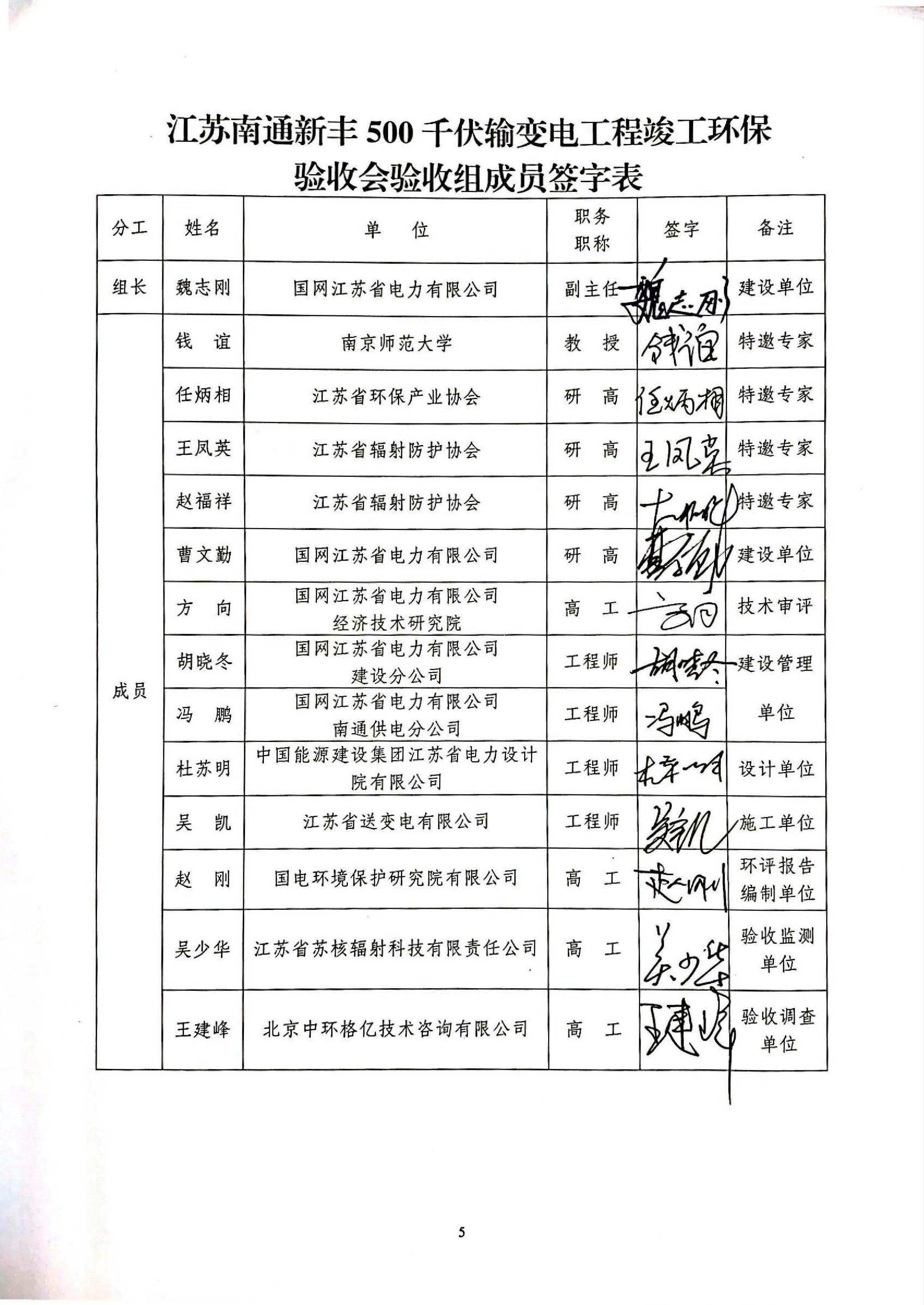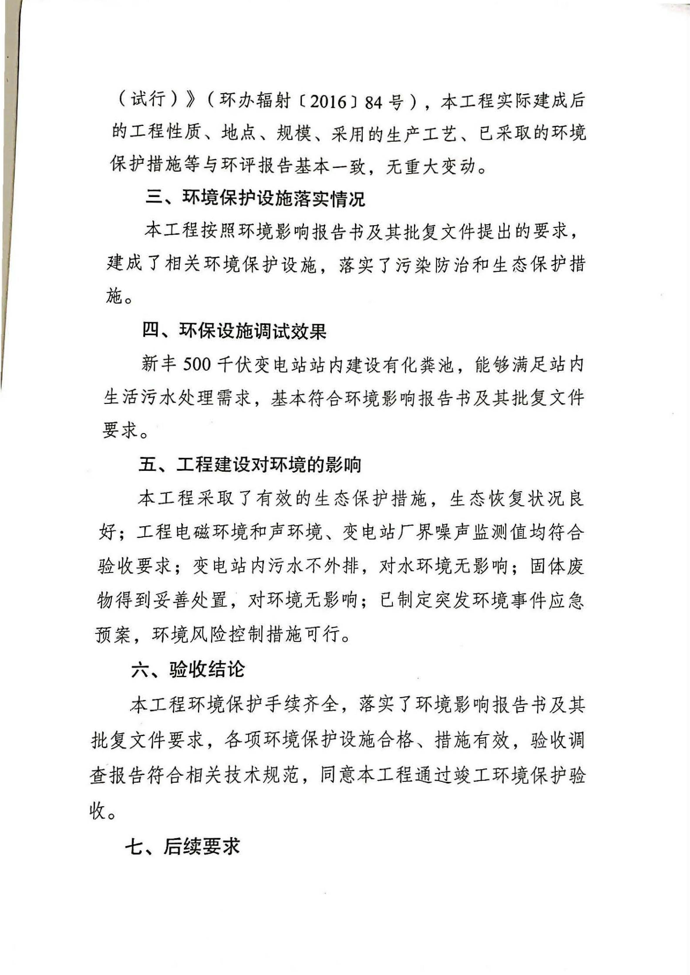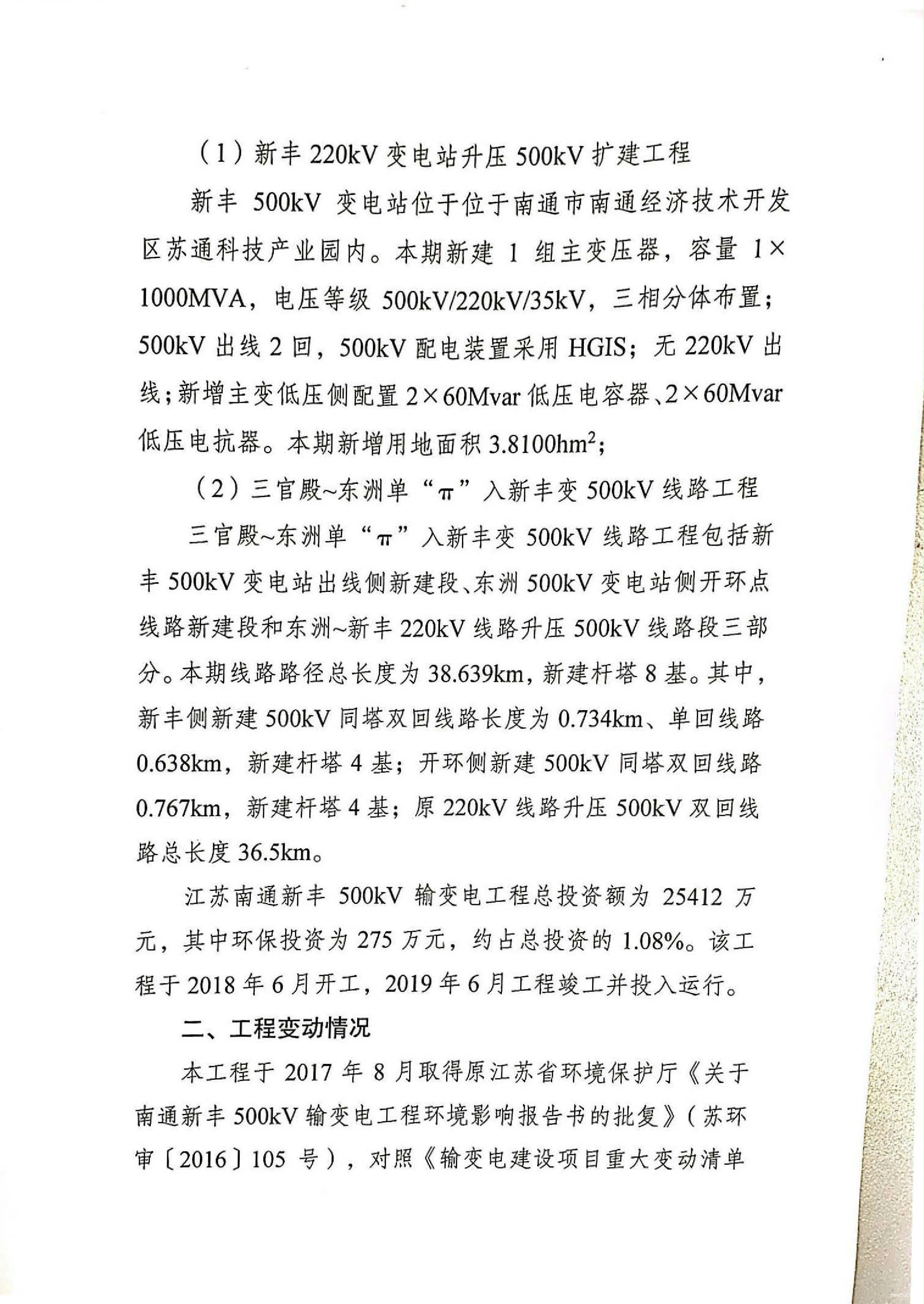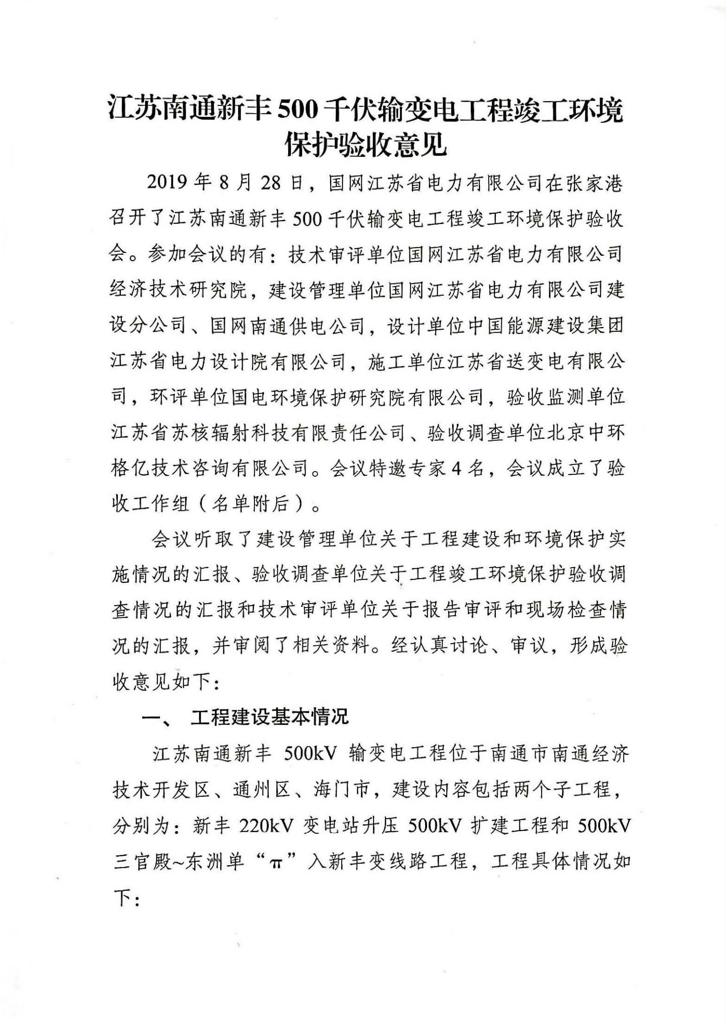 江苏南通新丰500kV输变电工程竣工环保验收意见