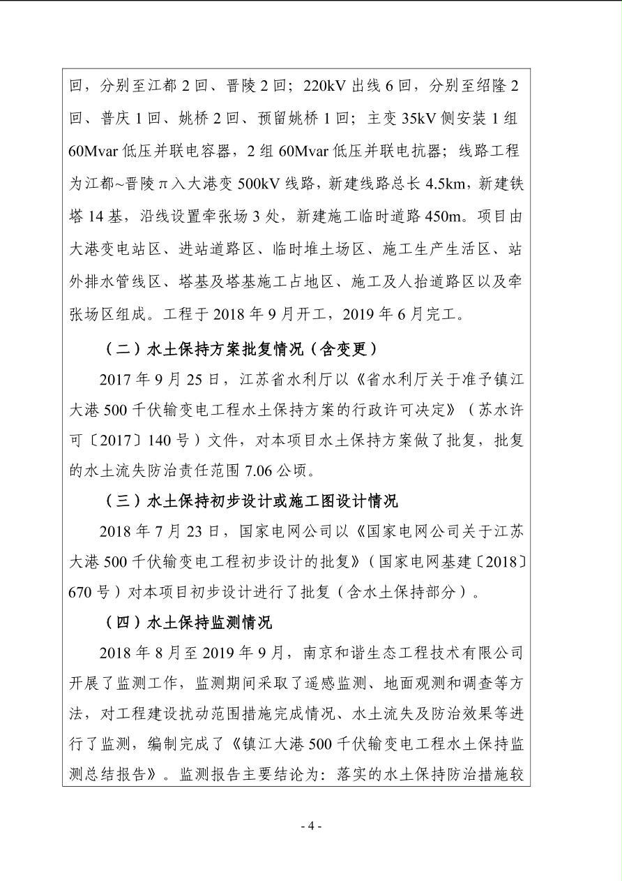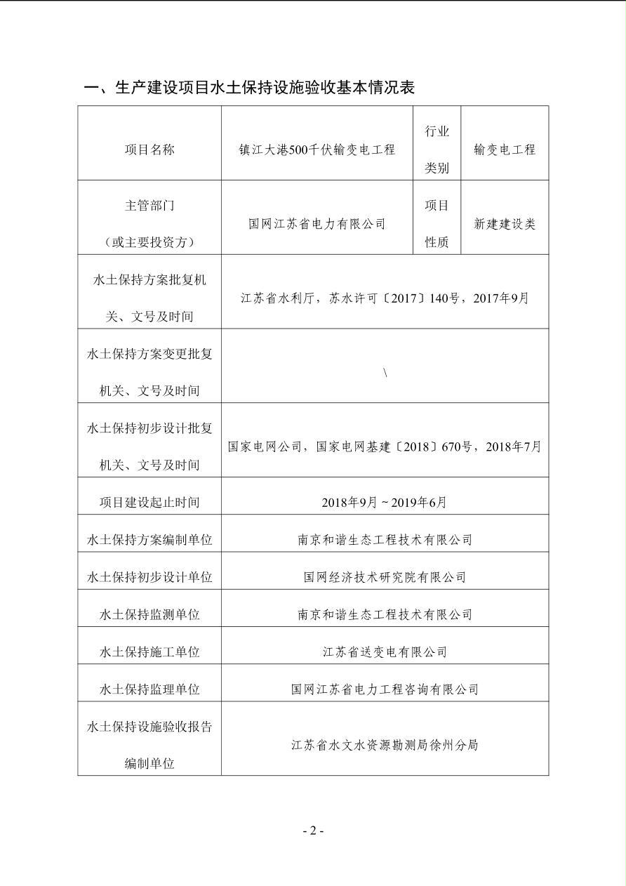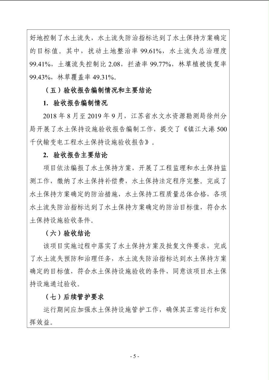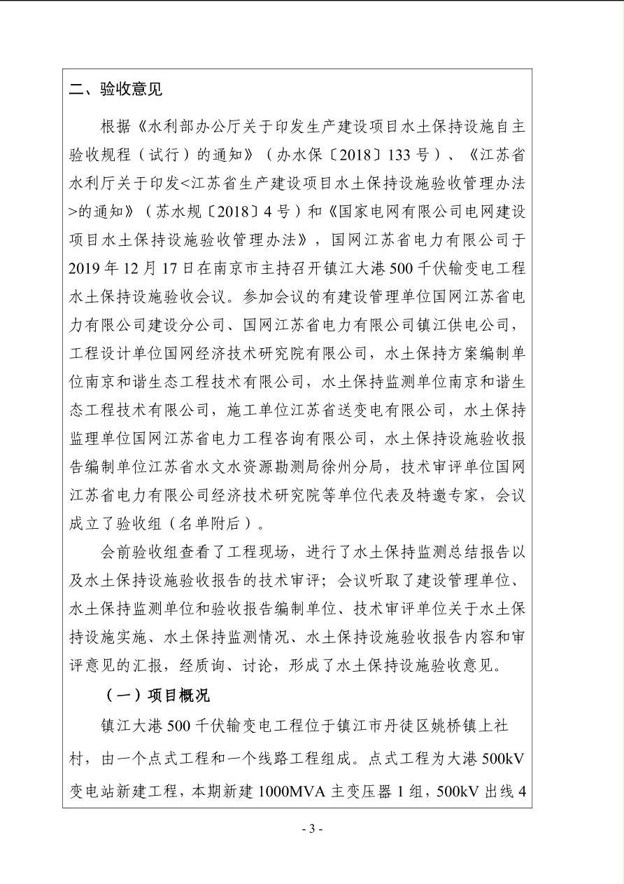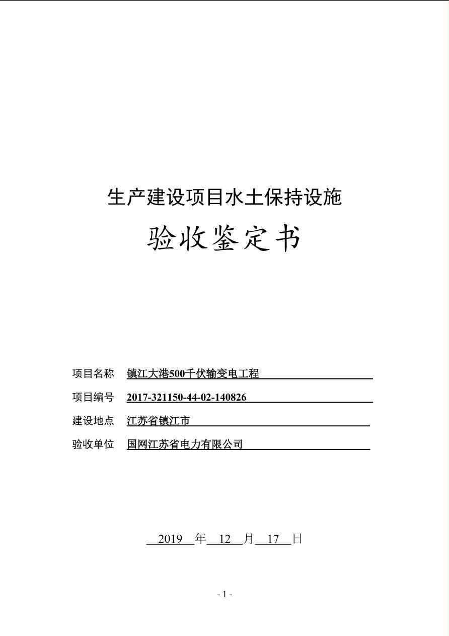 镇江大港500千伏输变电工程水土保持设施验收鉴定书
