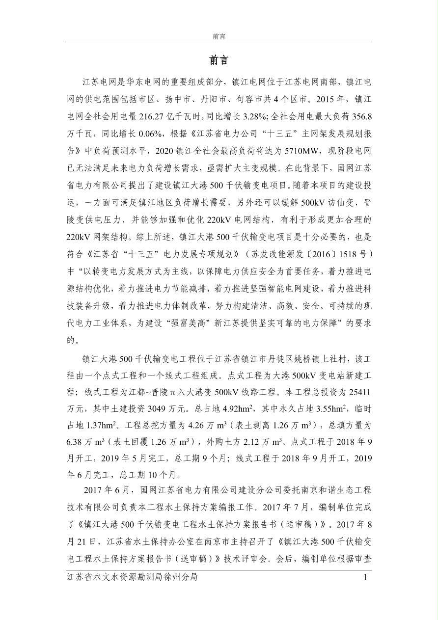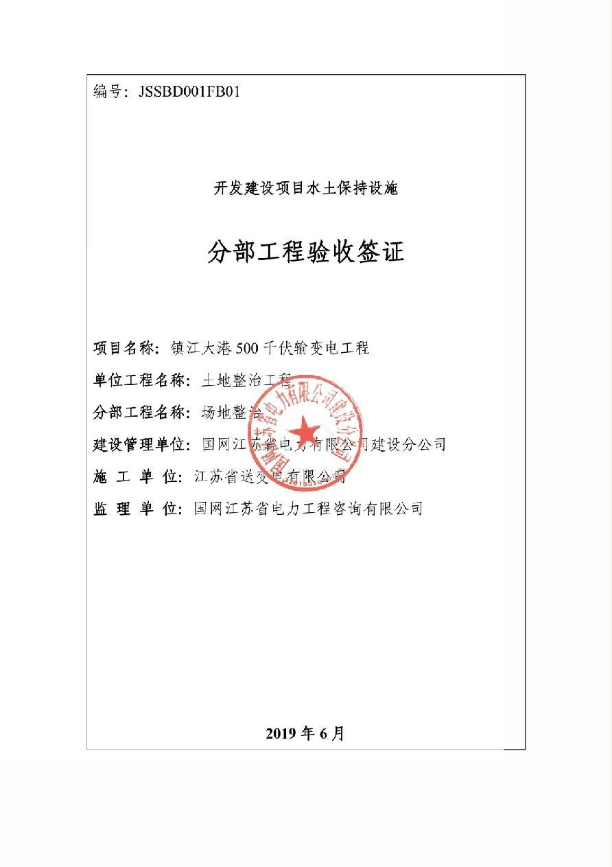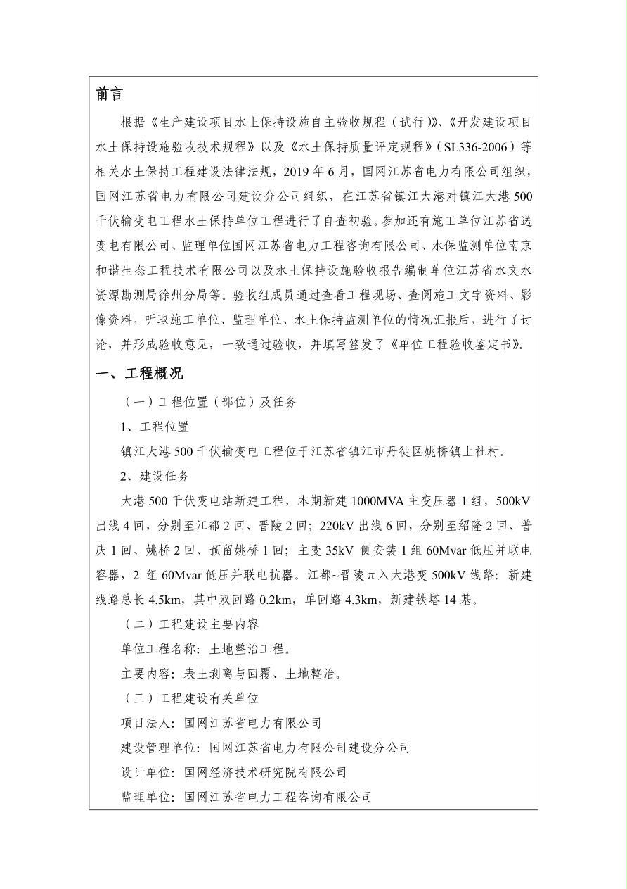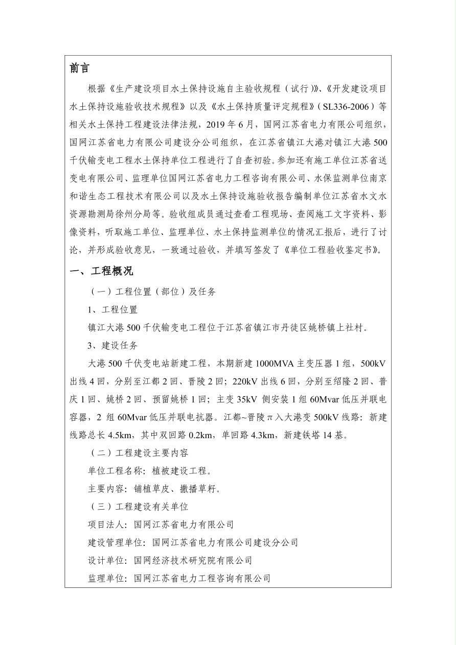 镇江大港500千伏输变电工程水土保持设施验收报告