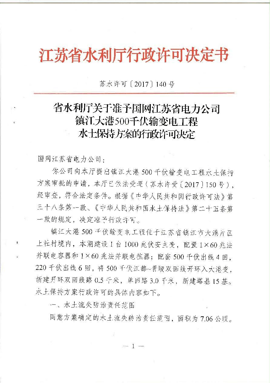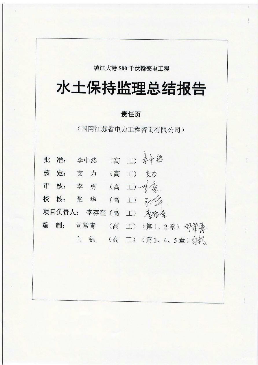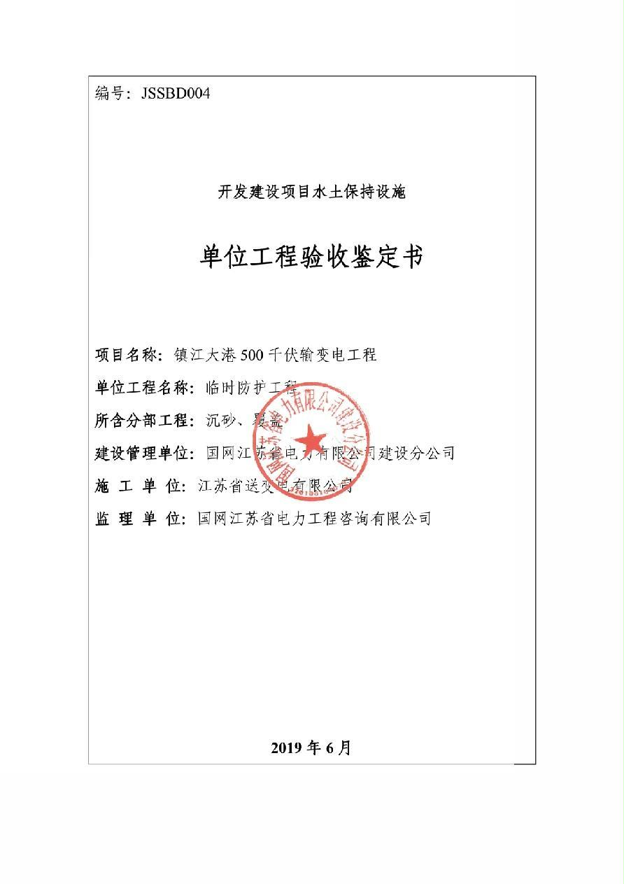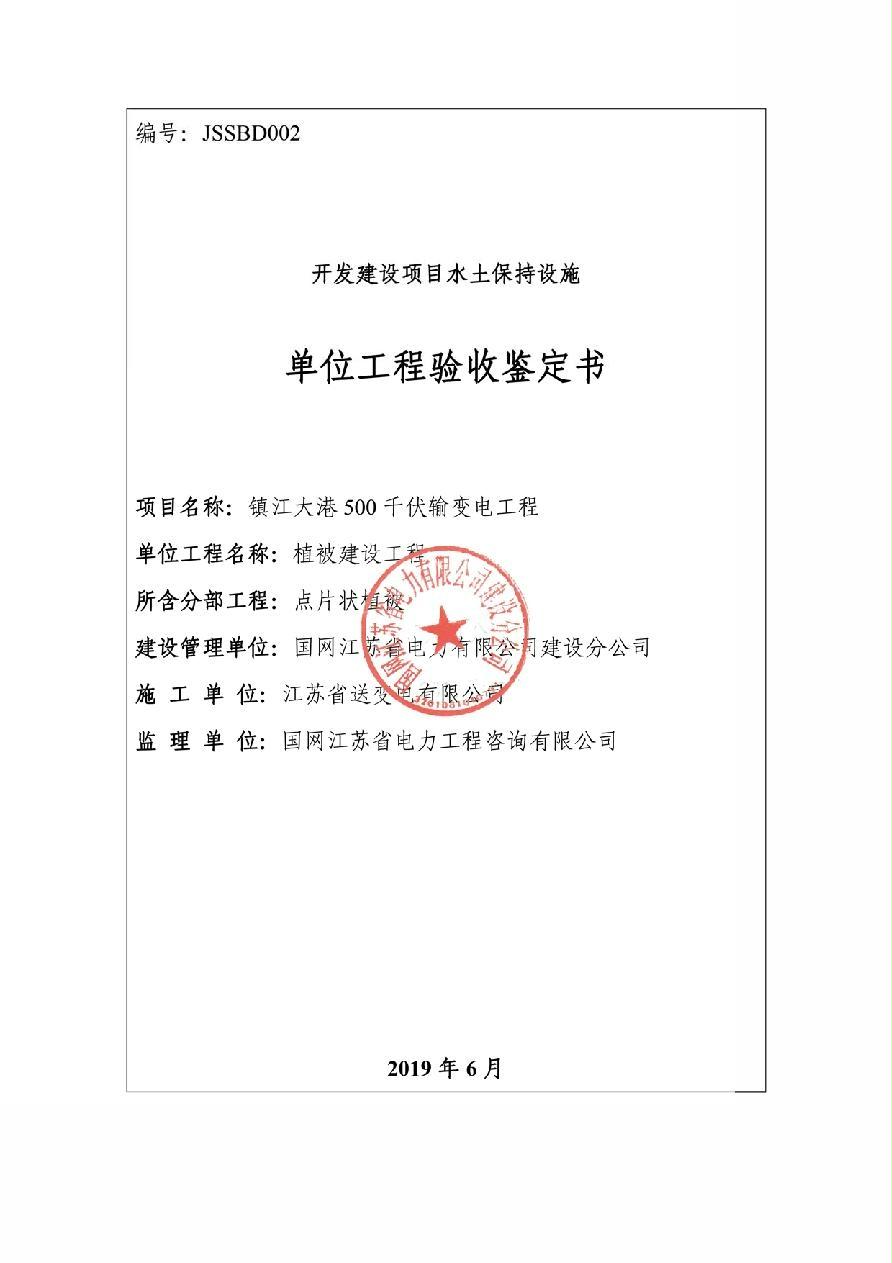 镇江大港500千伏输变电工程水土保持设施验收报告