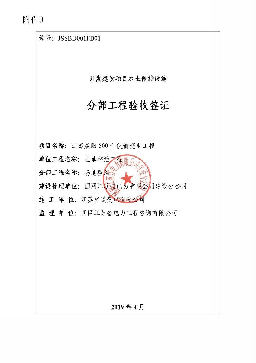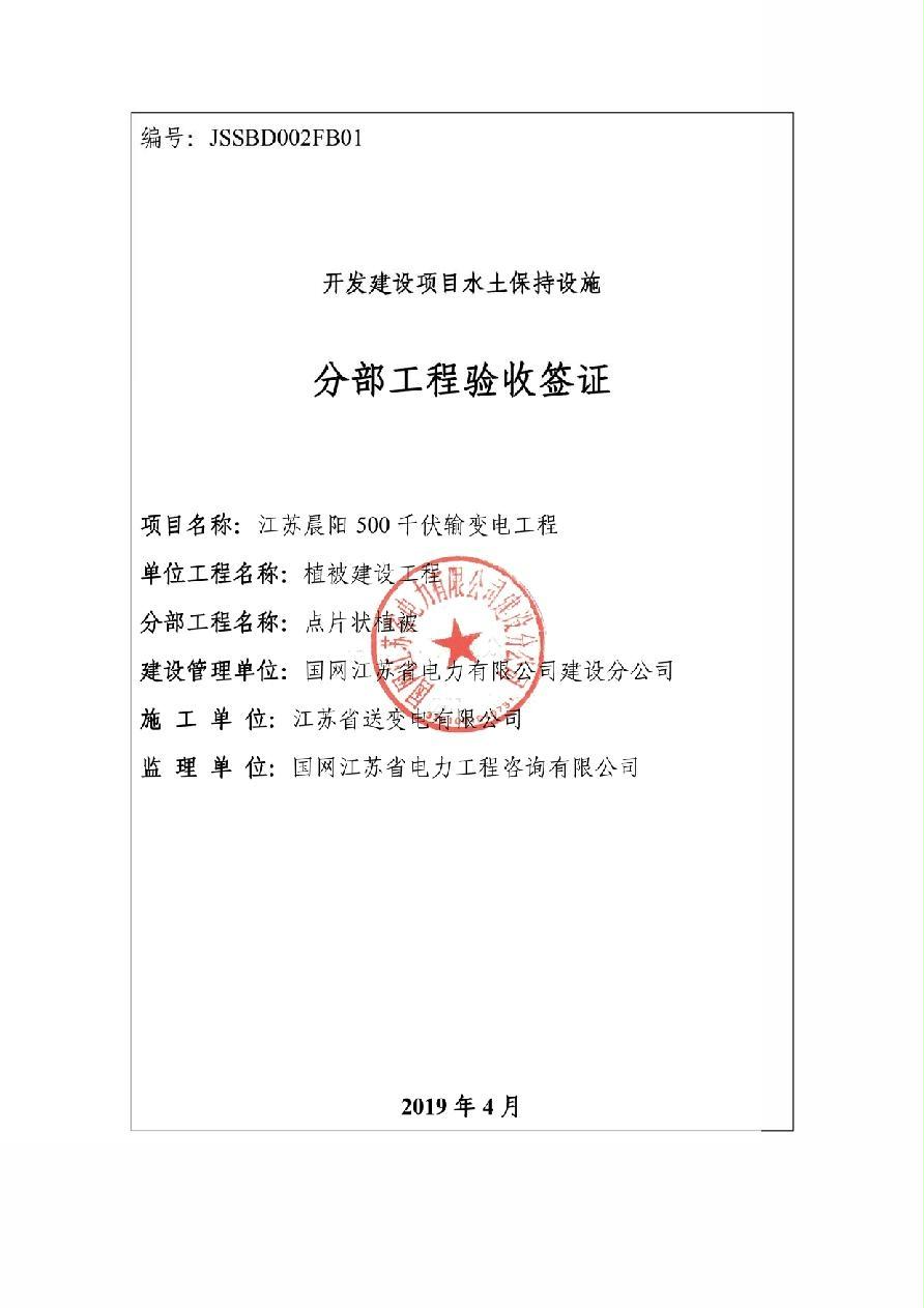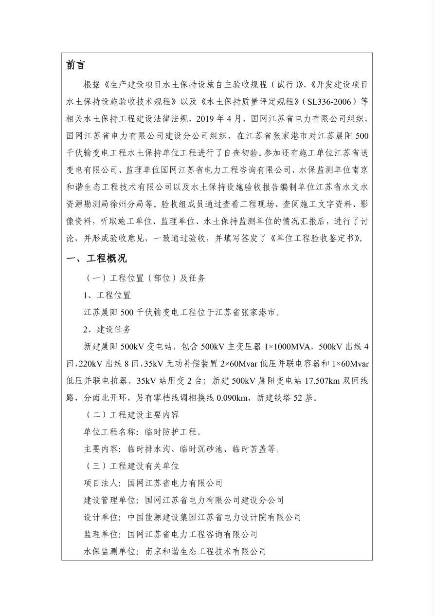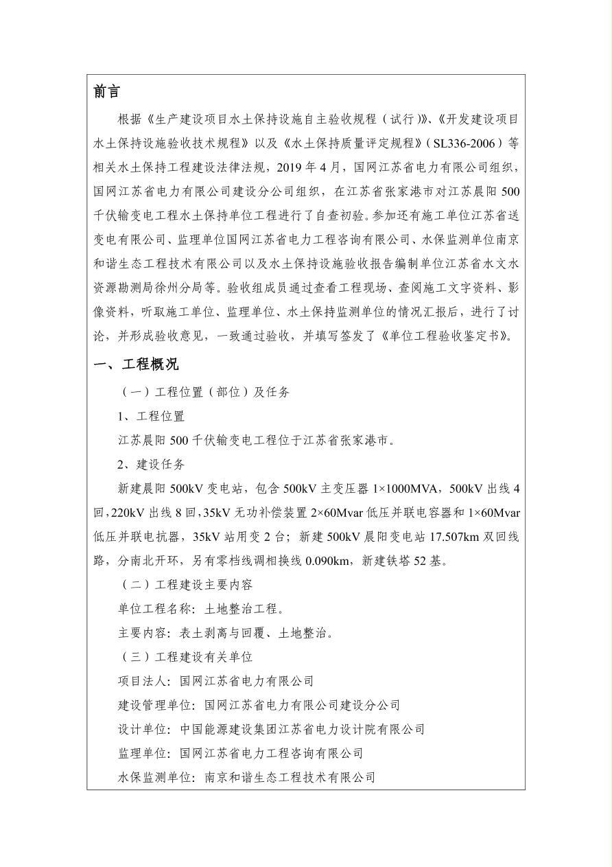 江苏晨阳500千伏输变电工程水土保持设施验收报告