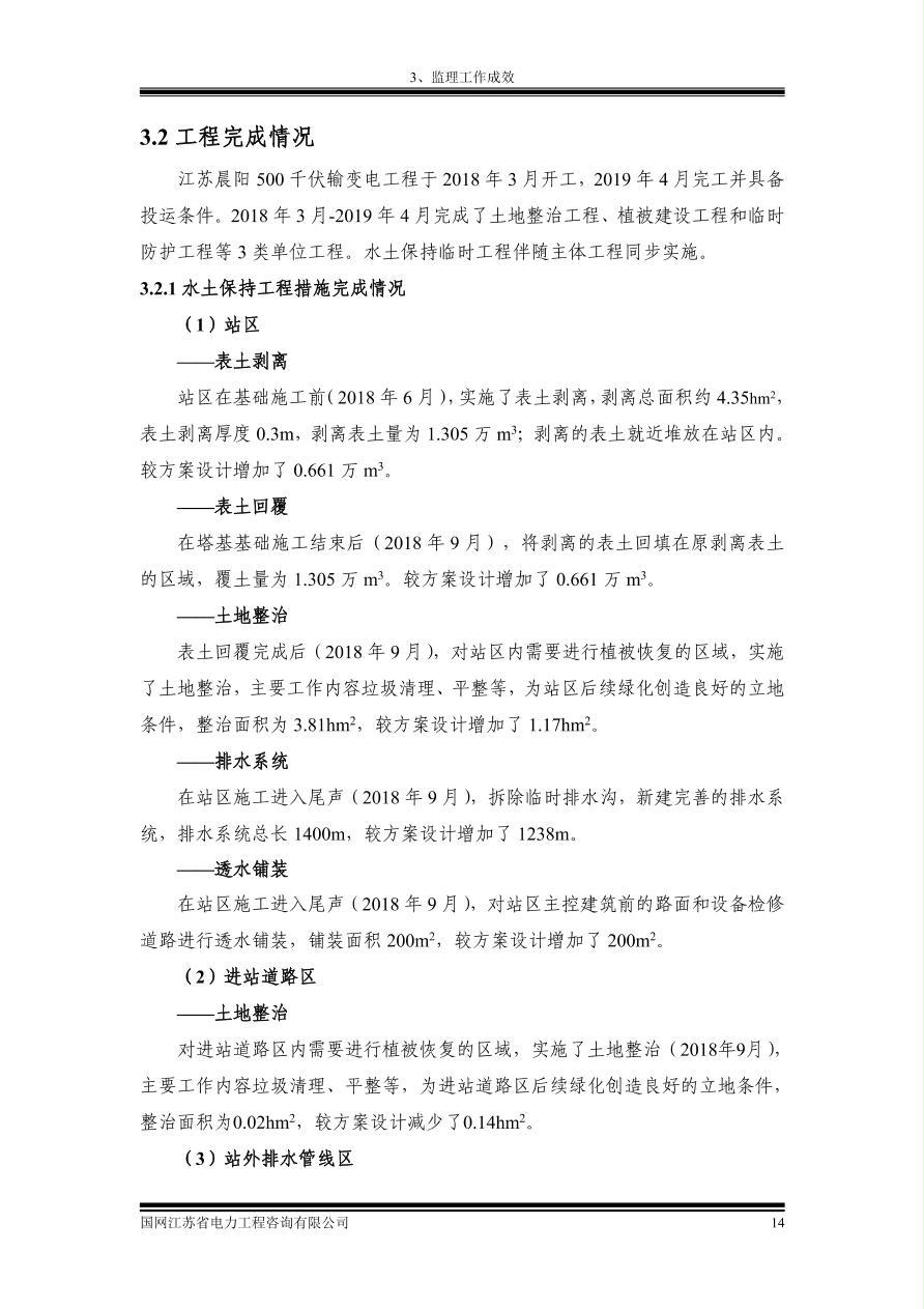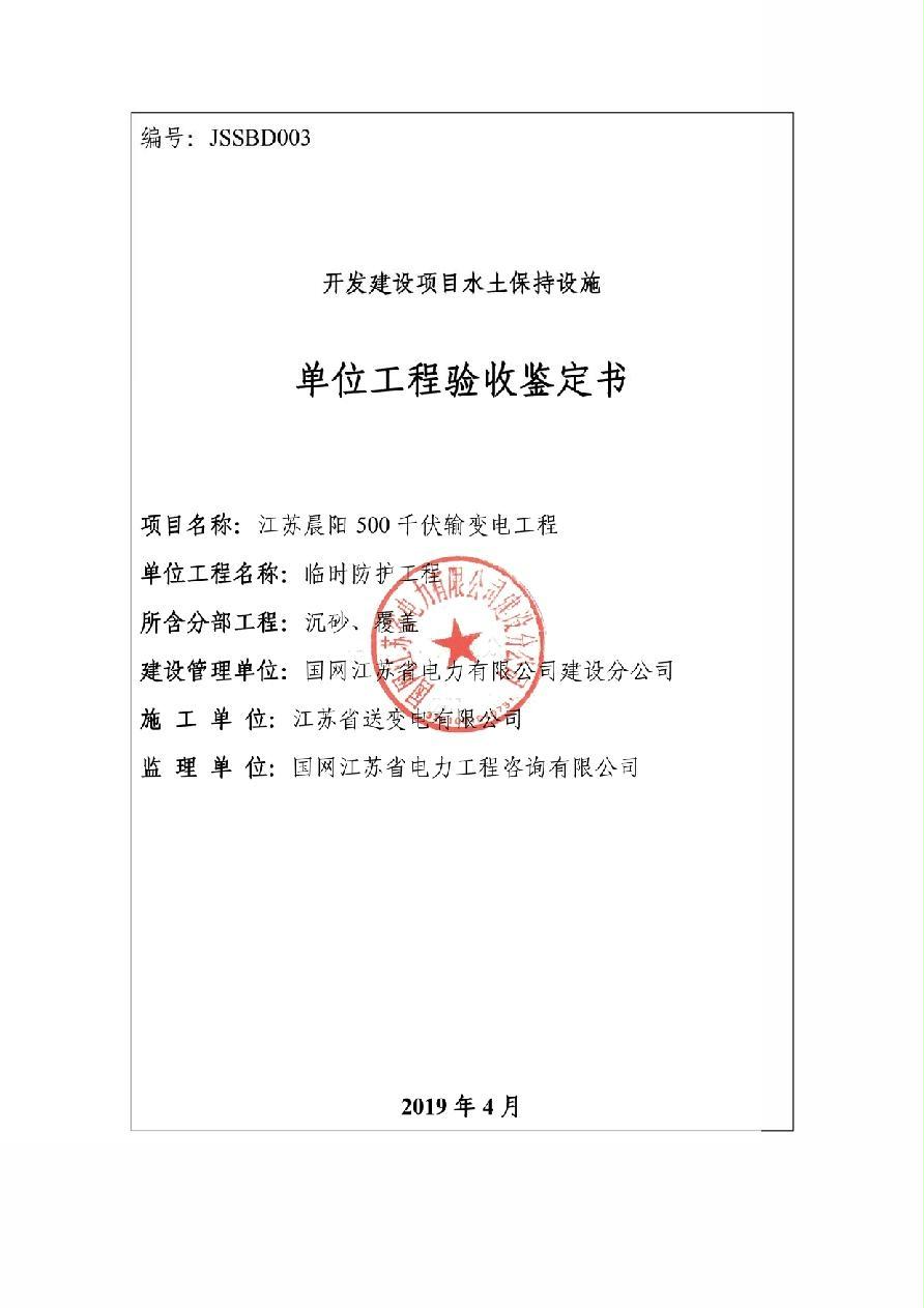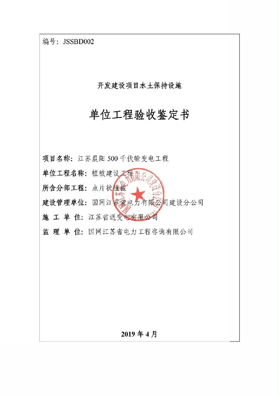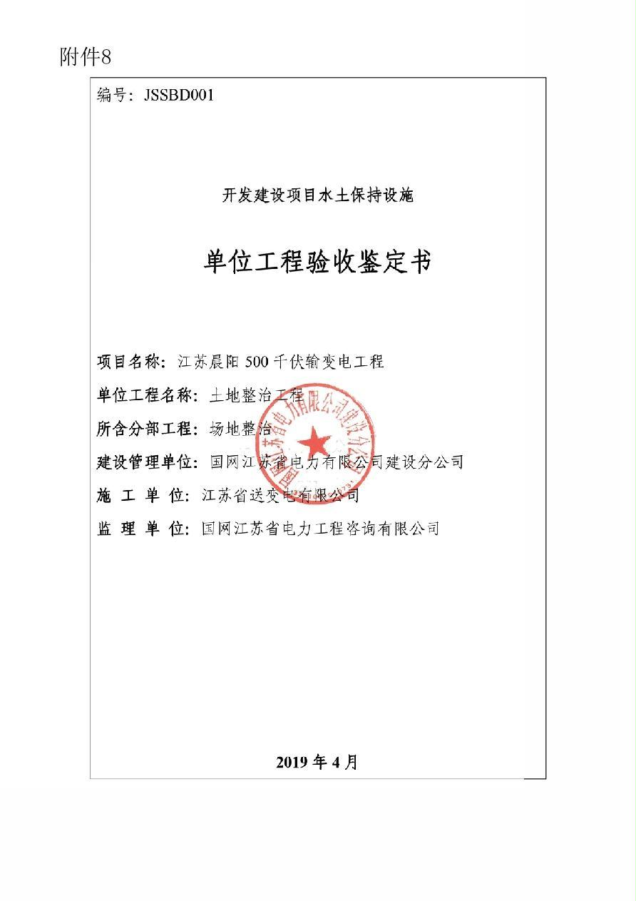 江苏晨阳500千伏输变电工程水土保持设施验收报告