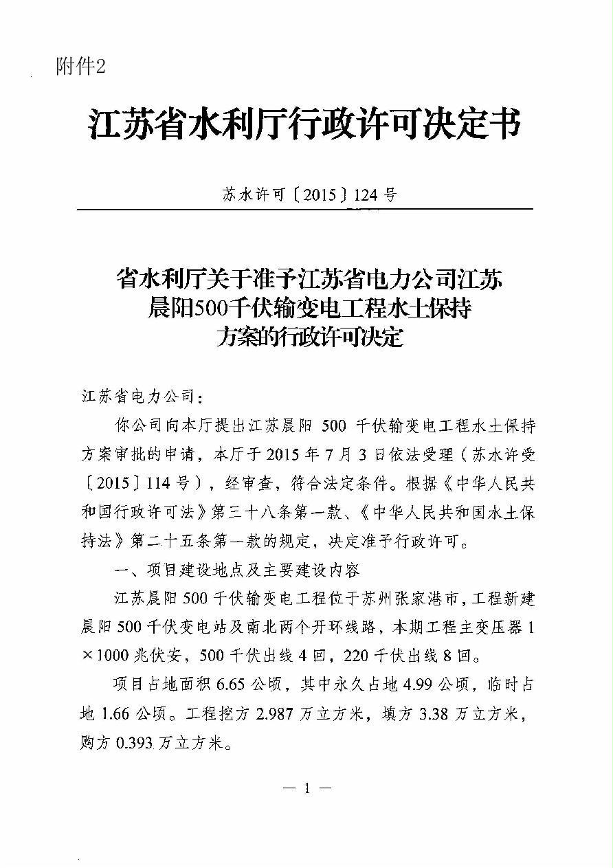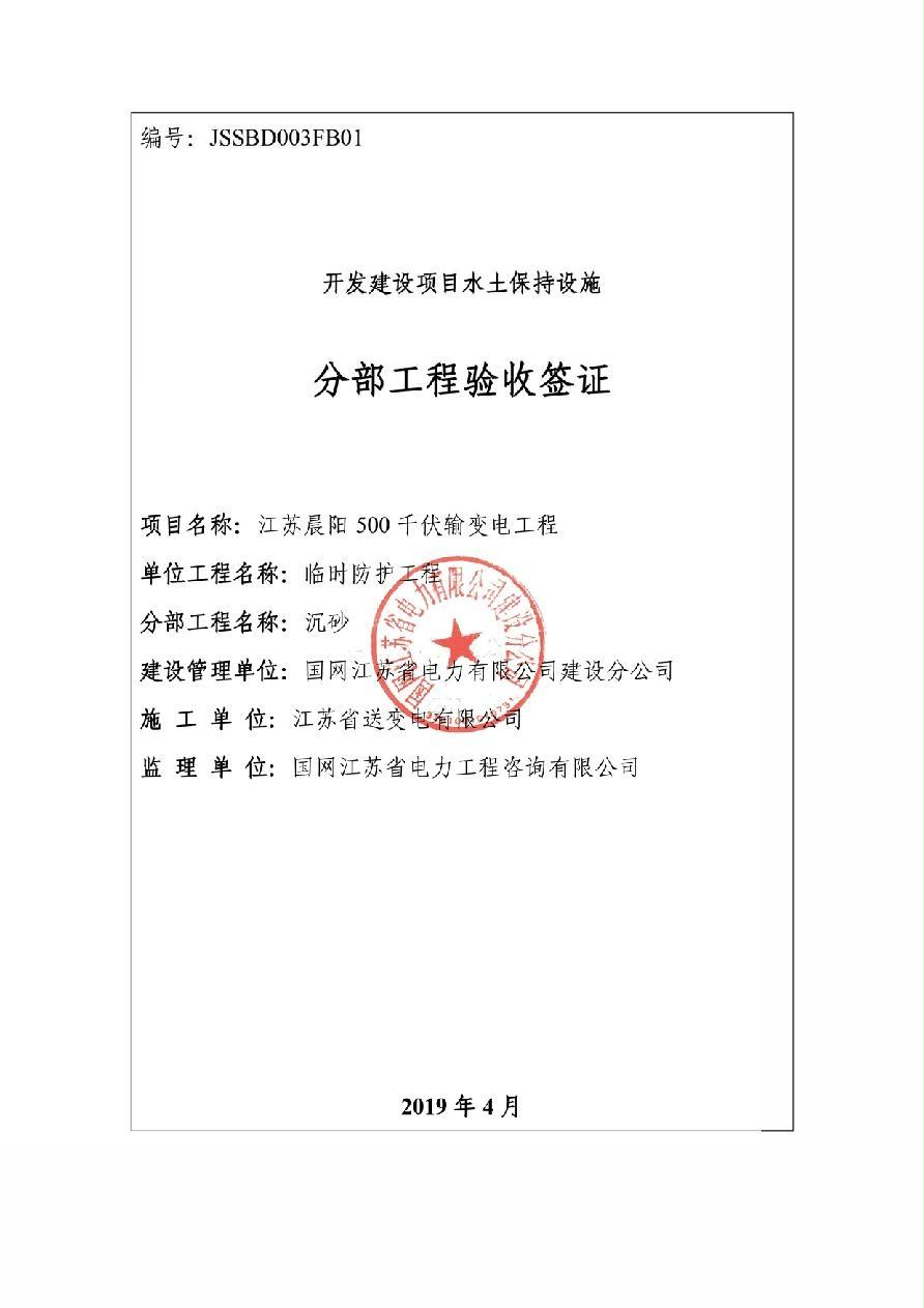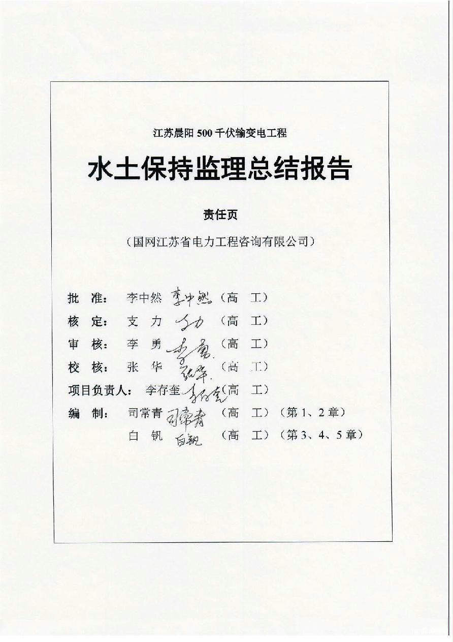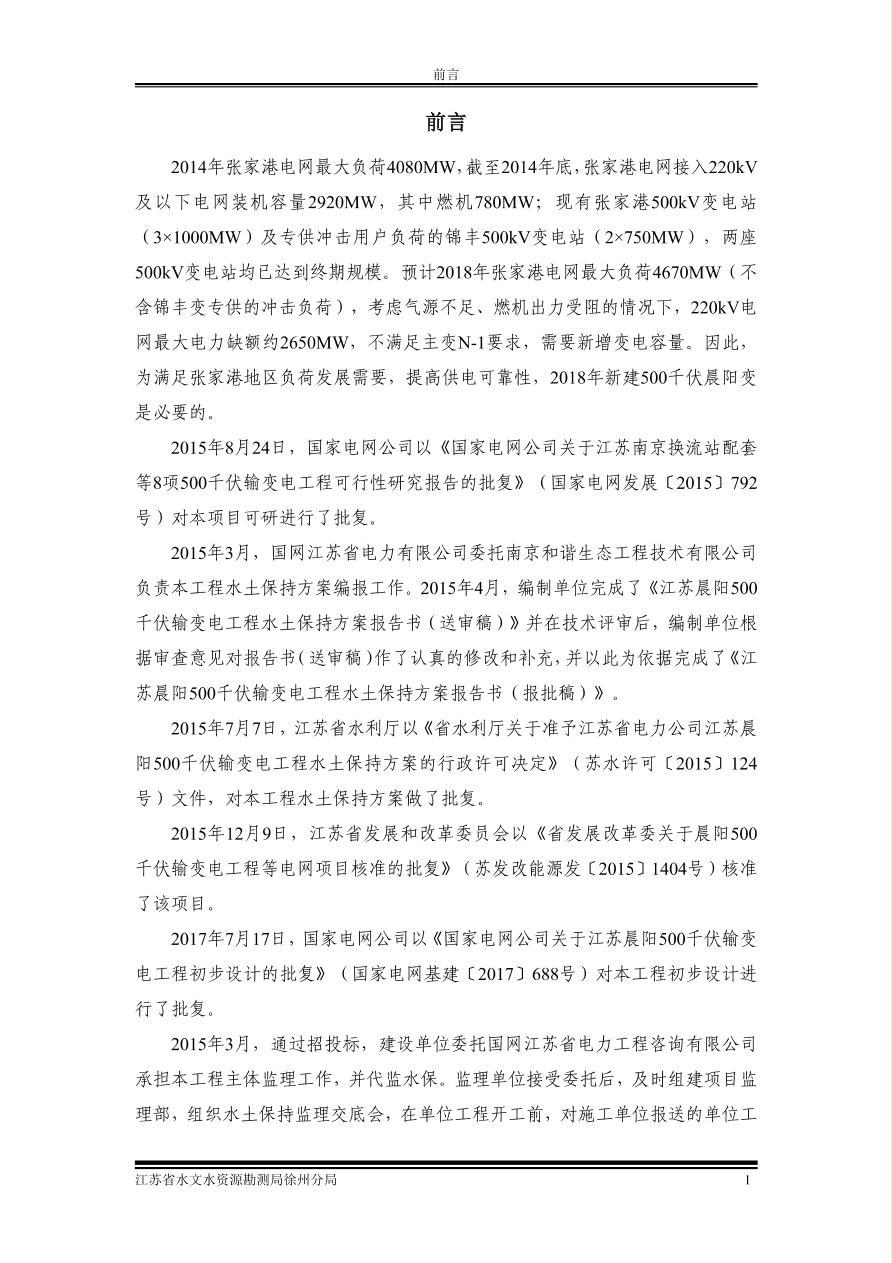 江苏晨阳500千伏输变电工程水土保持设施验收报告