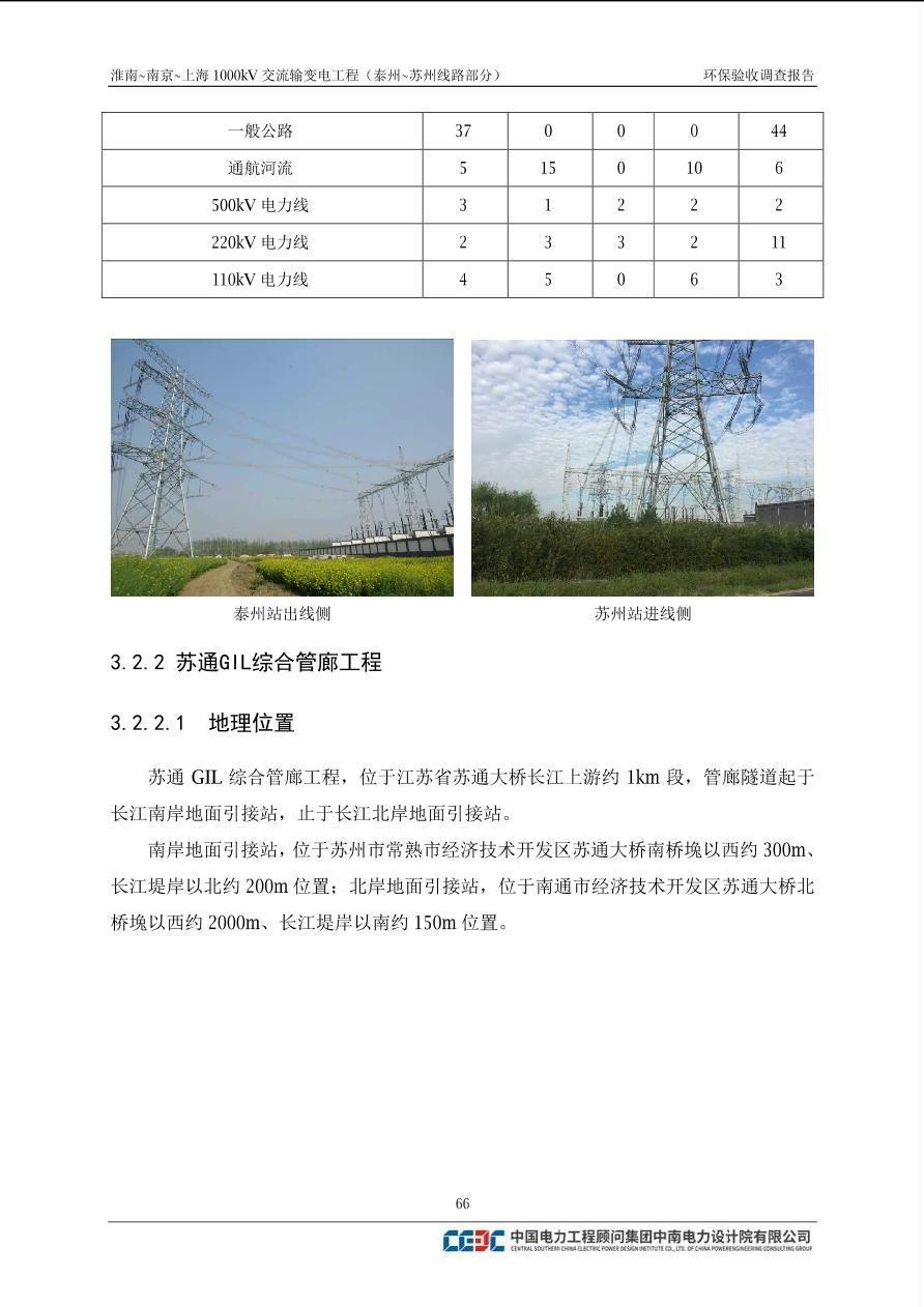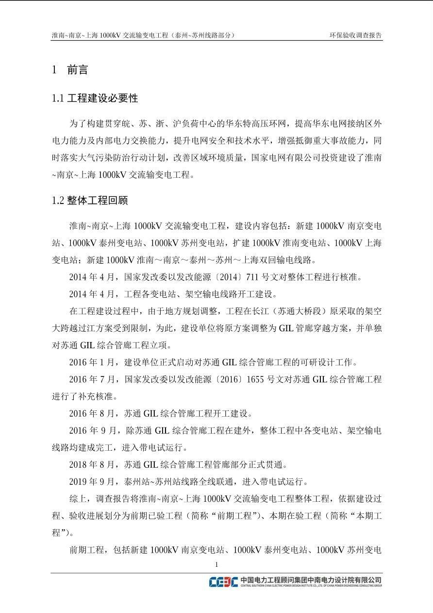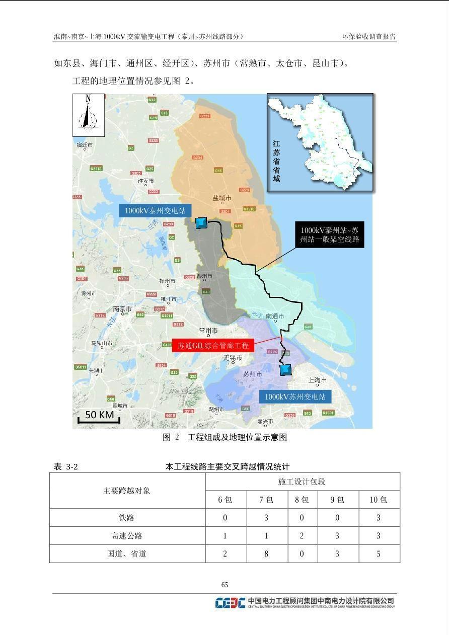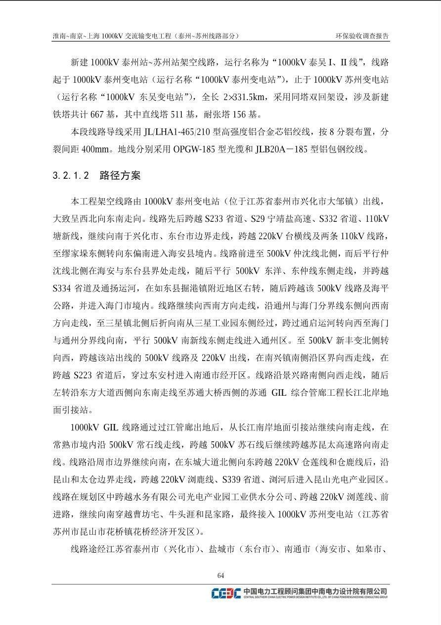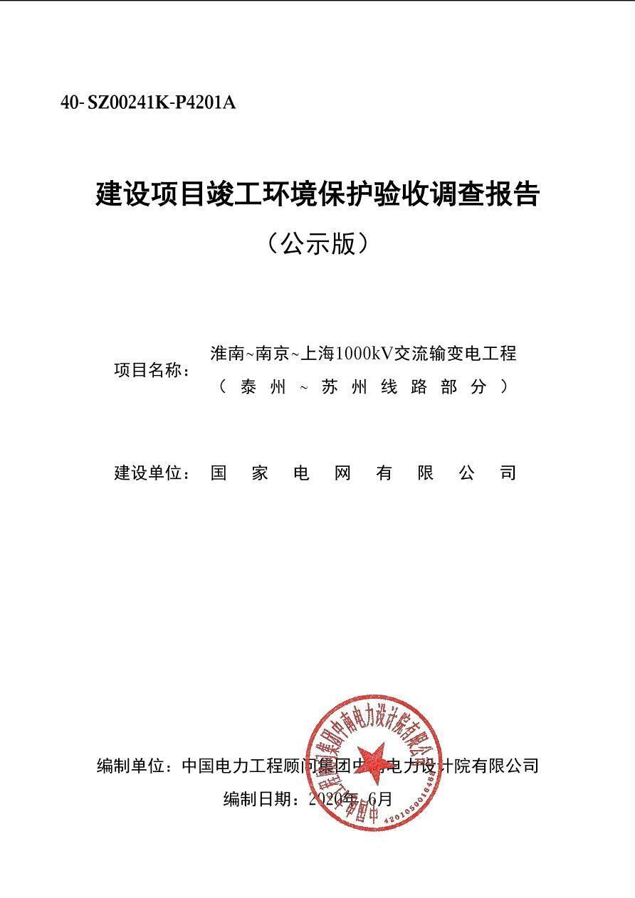 淮南-南京-上海1000kV交流输变电工程(泰州-苏州线路部分)验收调查报告(公示版)