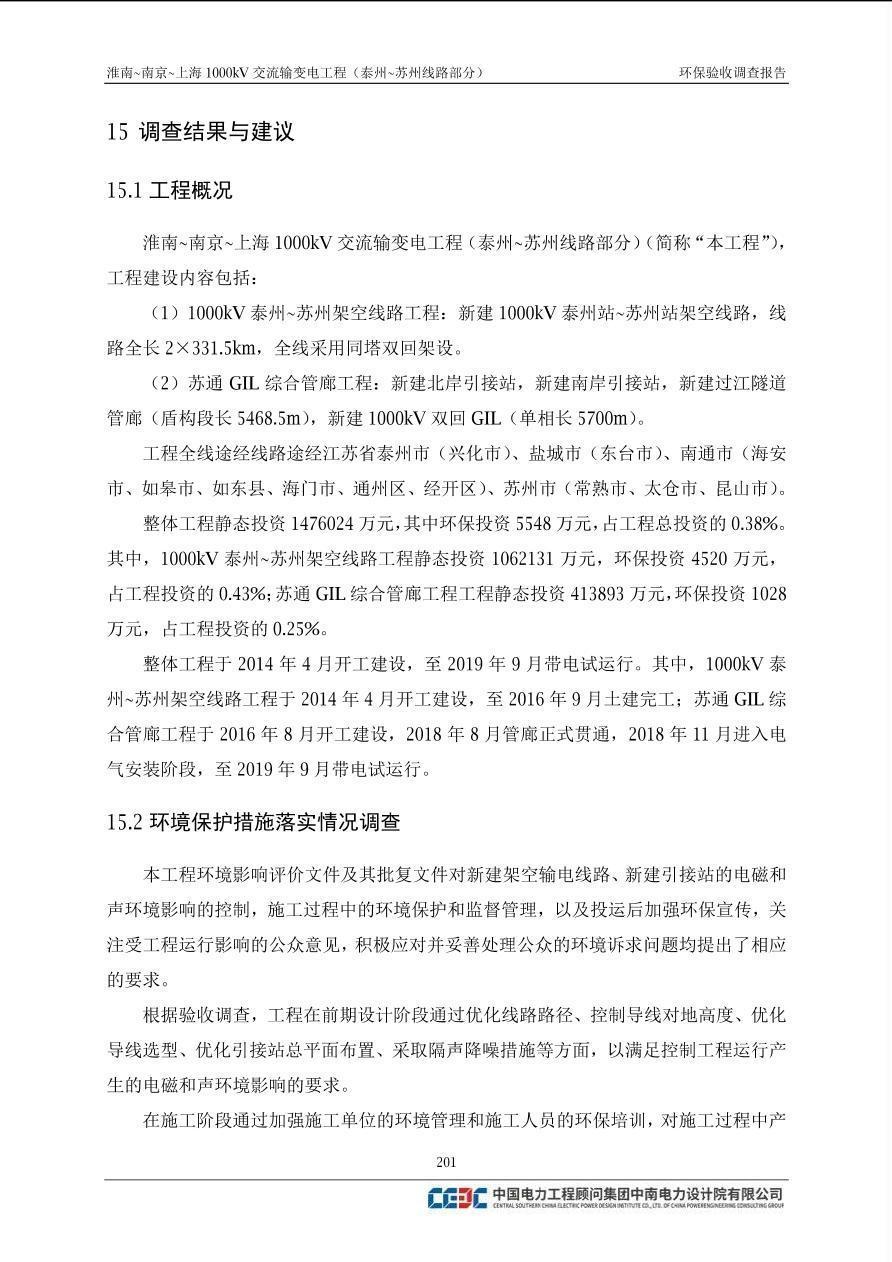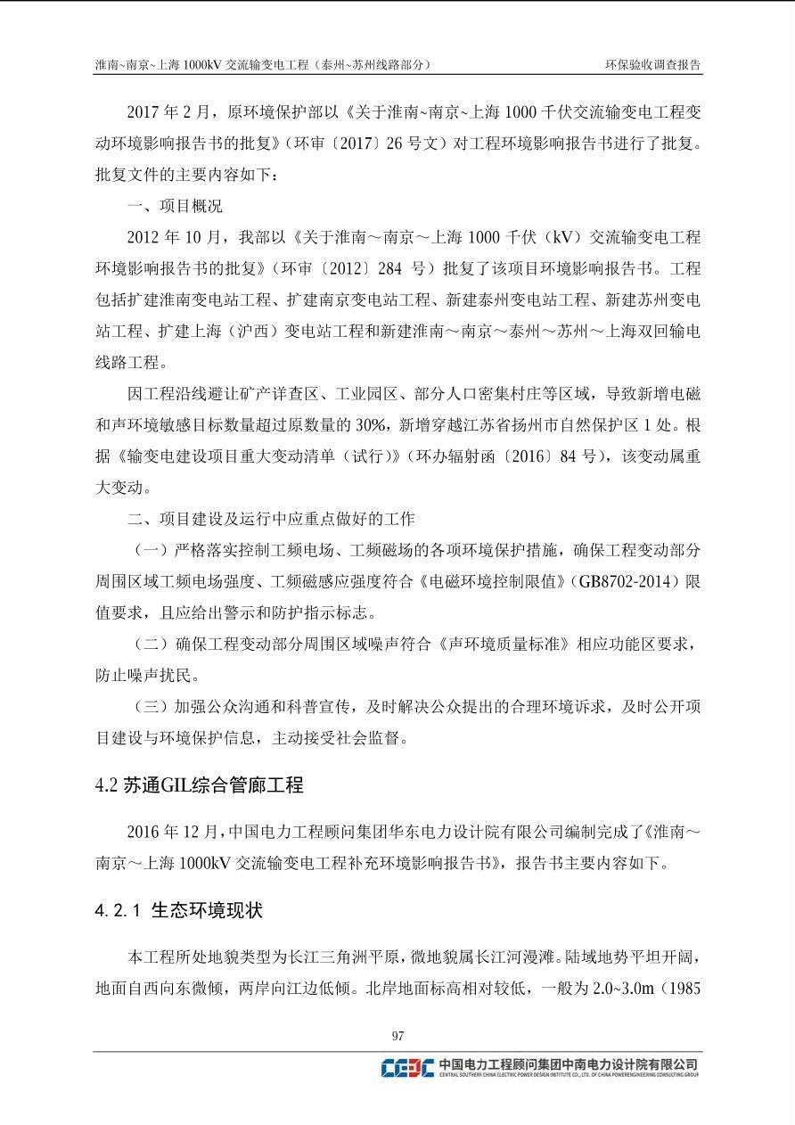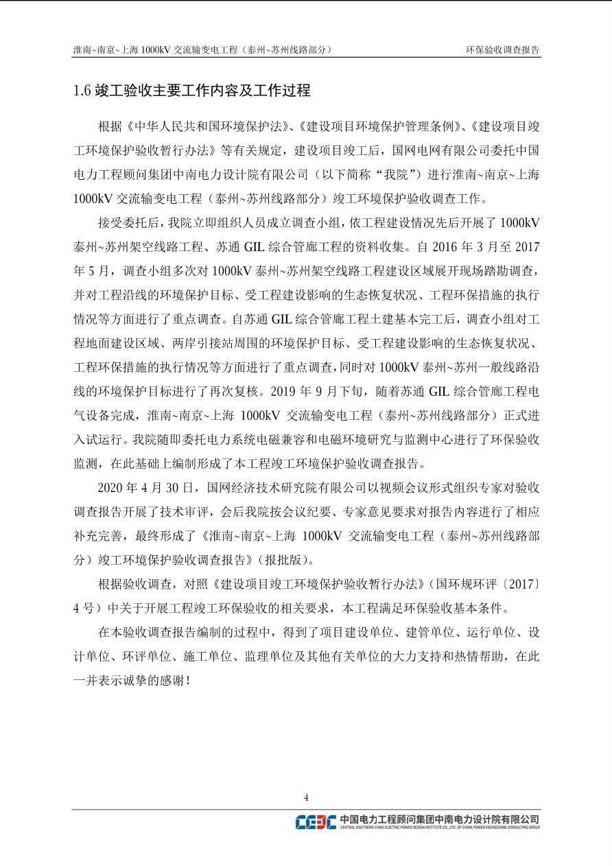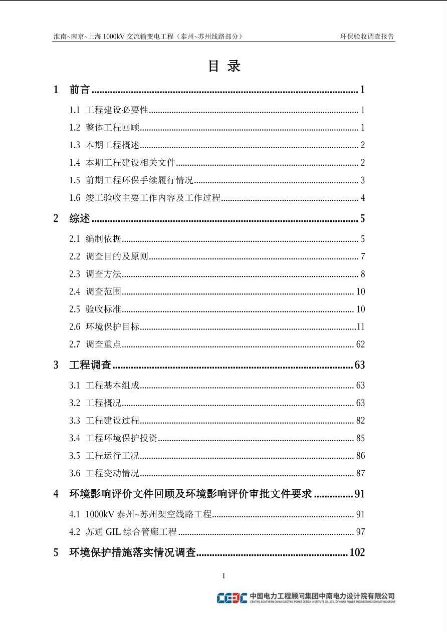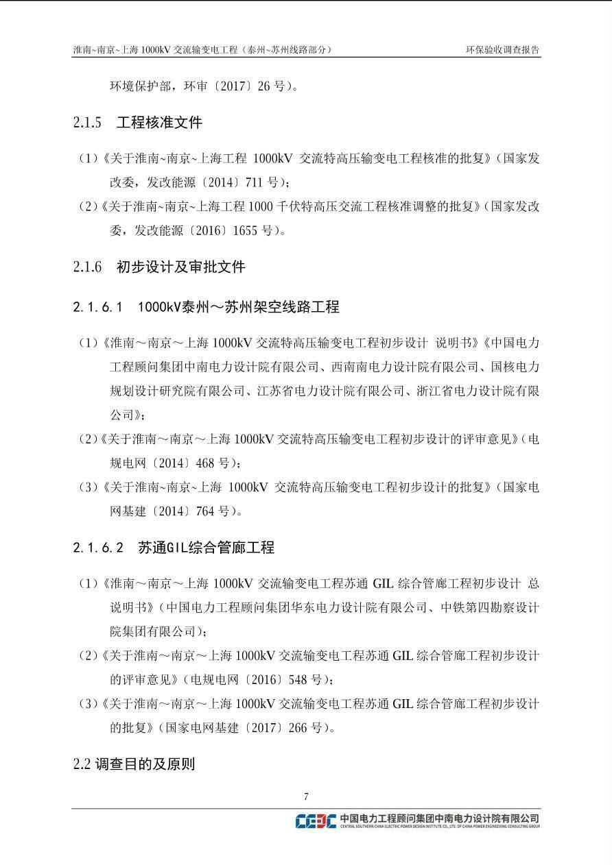 淮南-南京-上海1000kV交流输变电工程(泰州-苏州线路部分)验收调查报告(公示版)