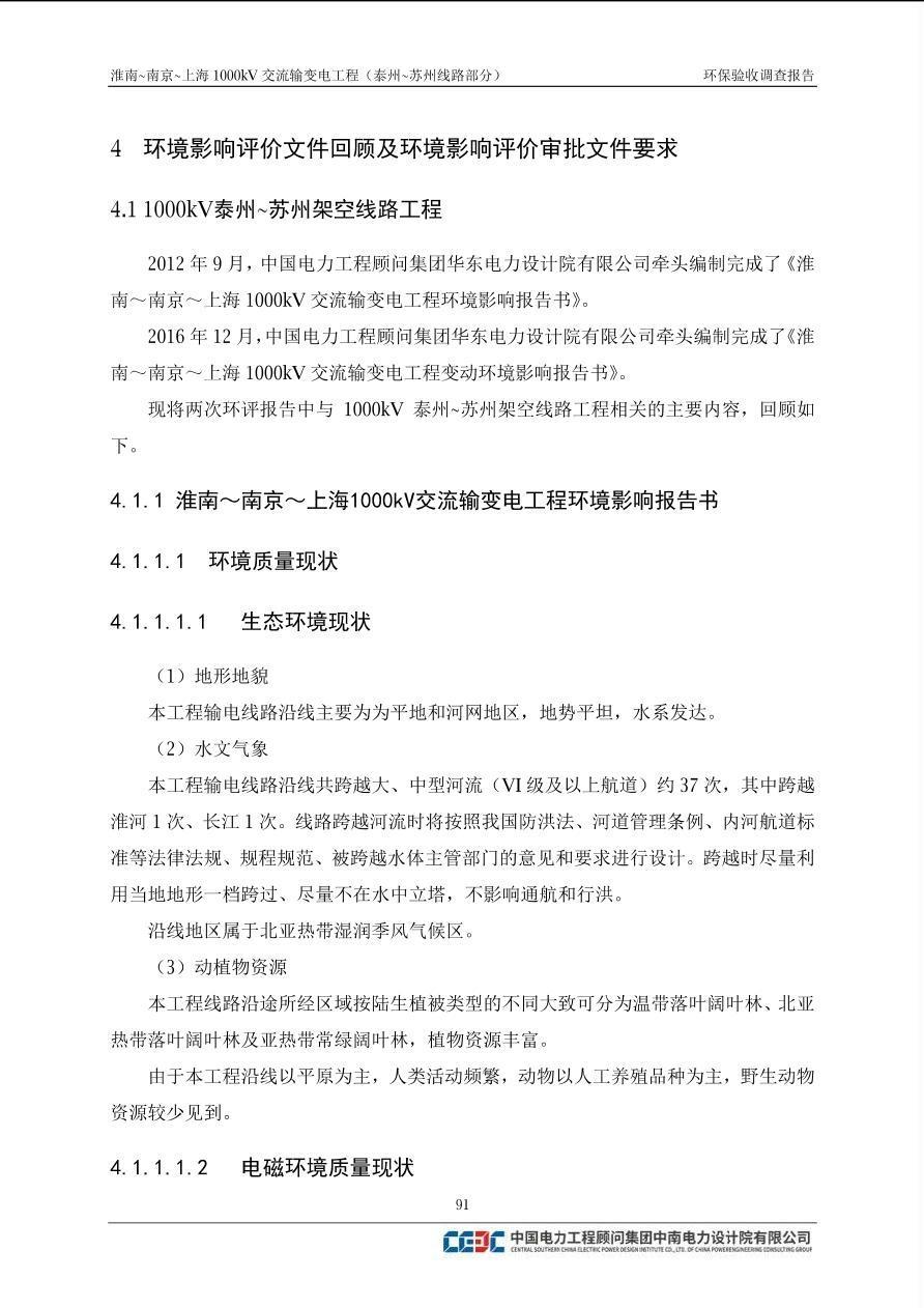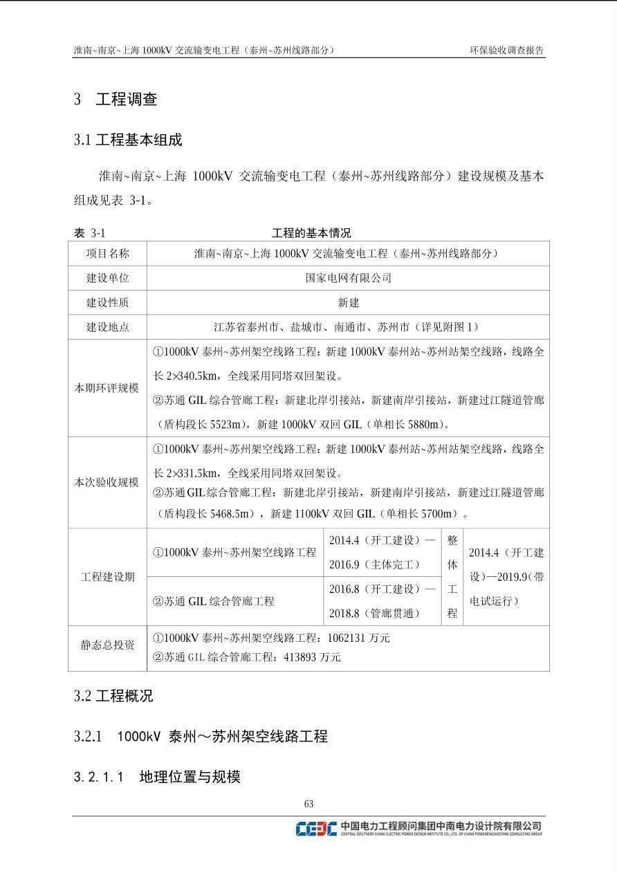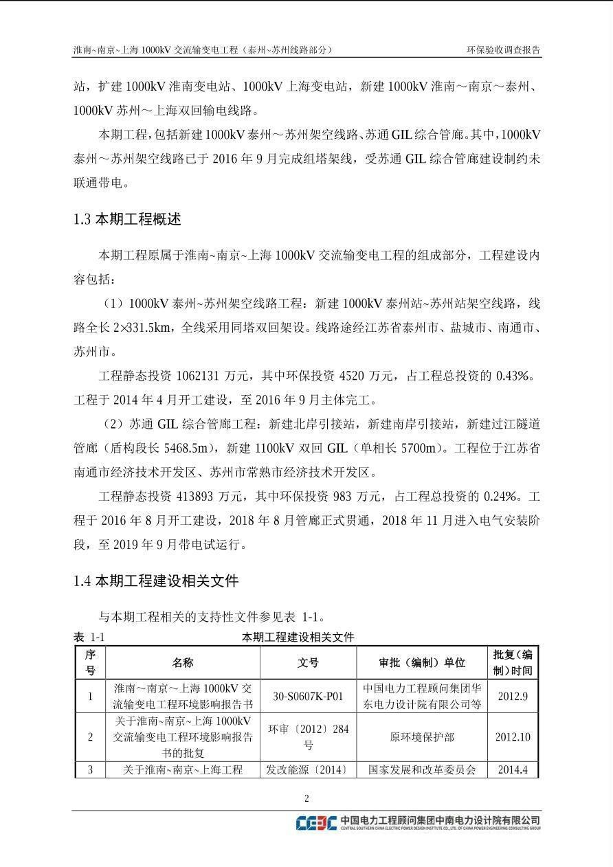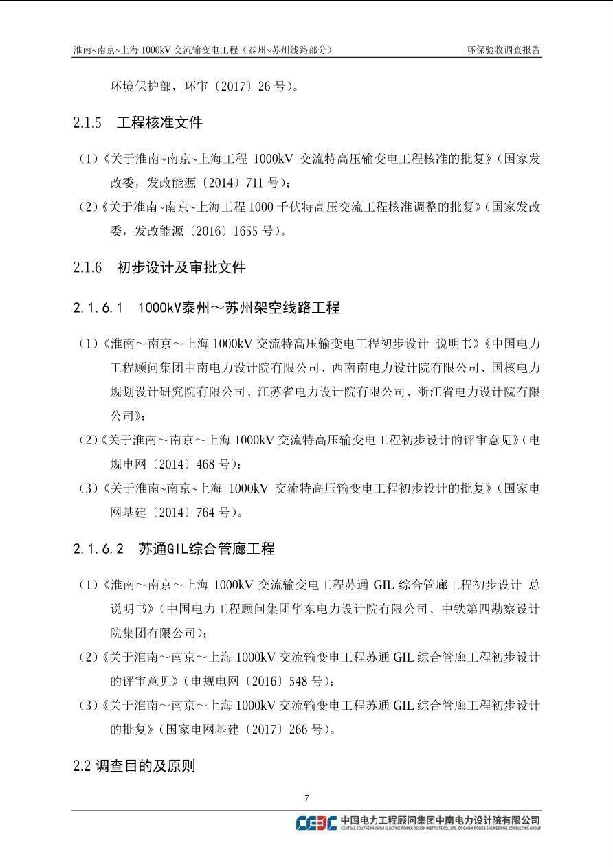 淮南-南京-上海1000kV交流输变电工程(泰州-苏州线路部分)验收调查报告(公示版)