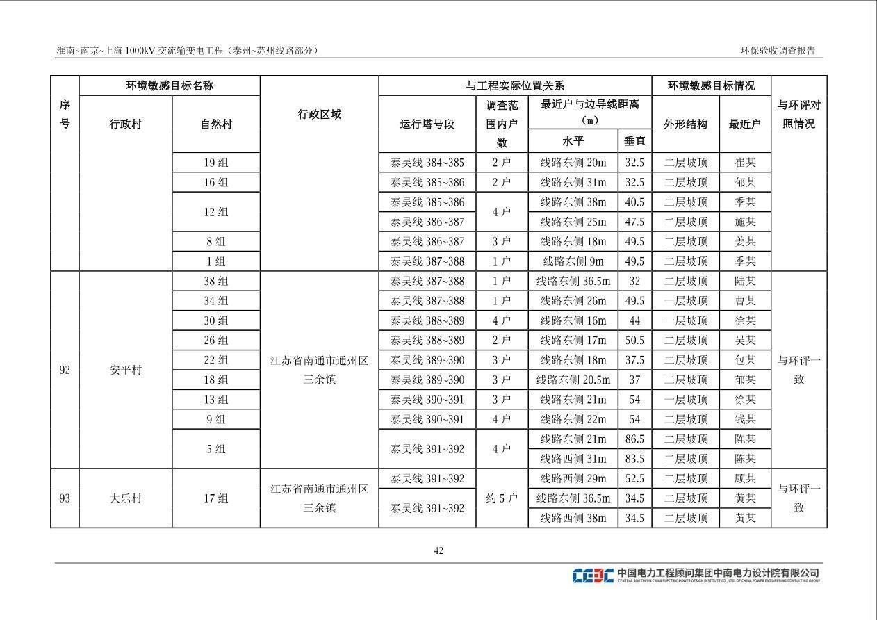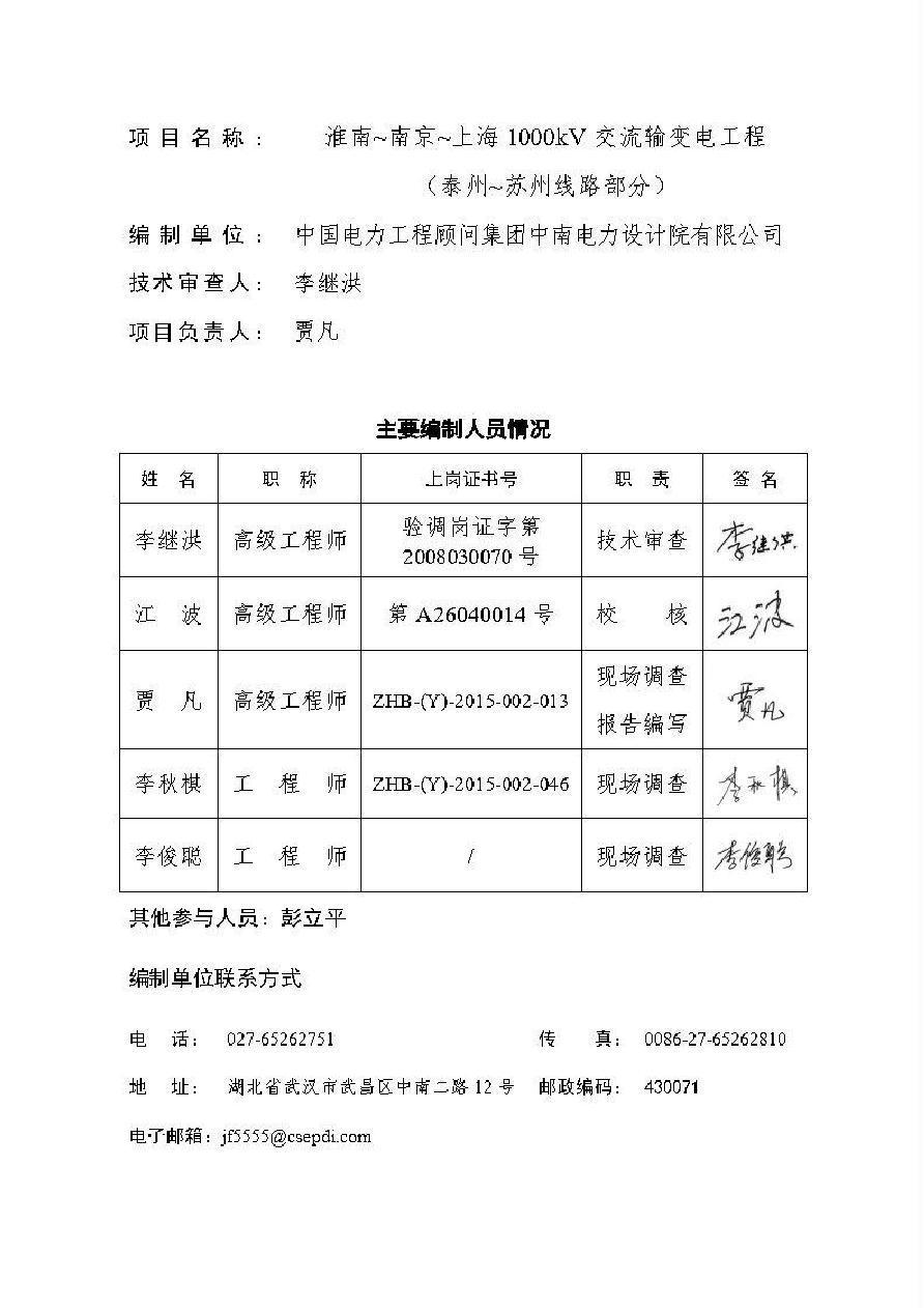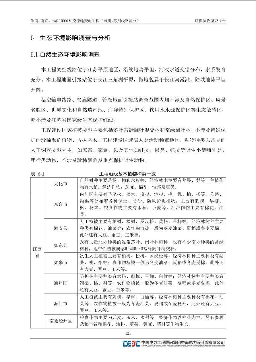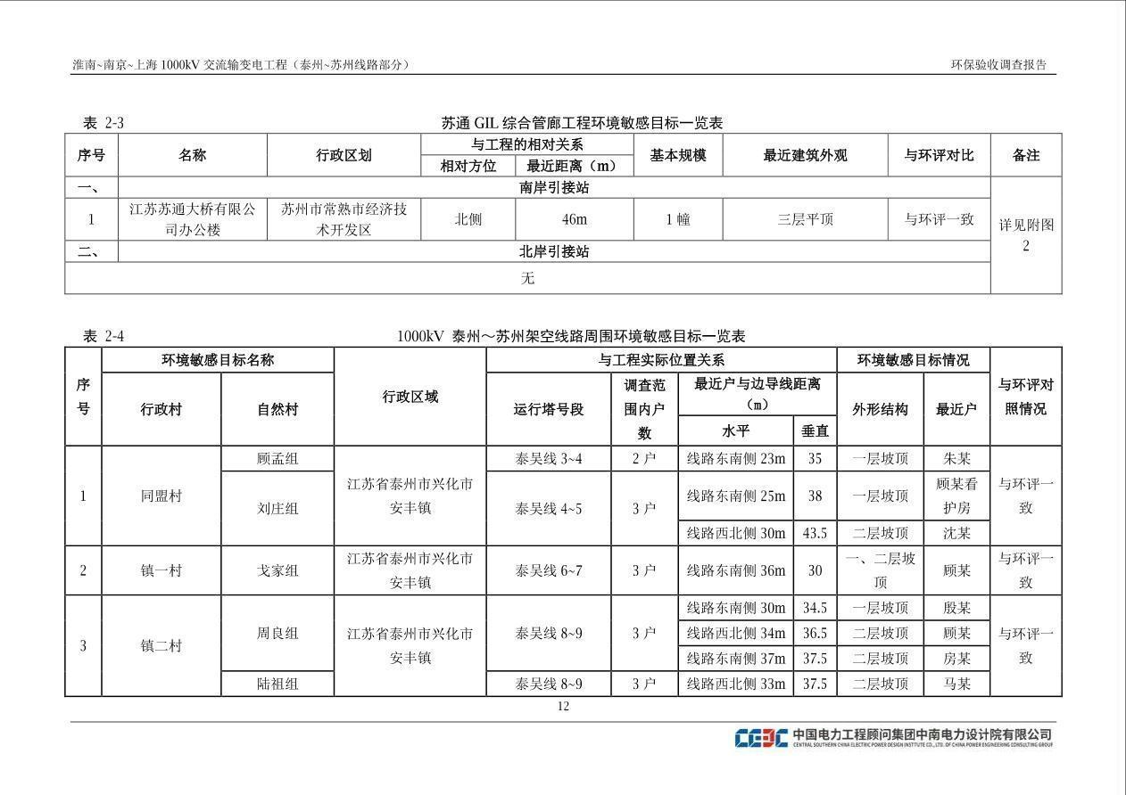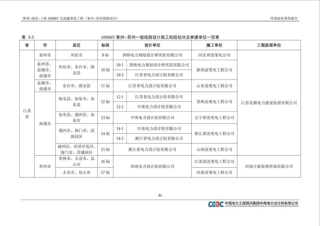 淮南-南京-上海1000kV交流输变电工程(泰州-苏州线路部分)验收调查报告(公示版)