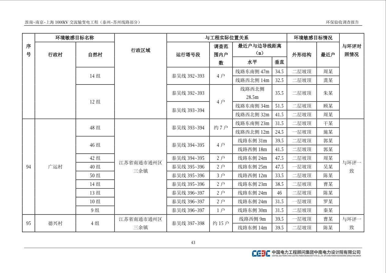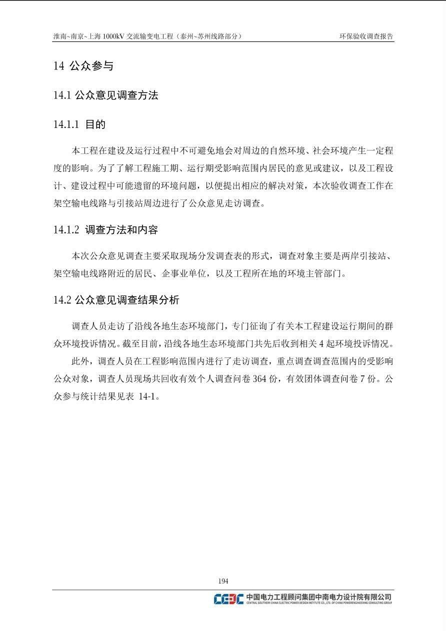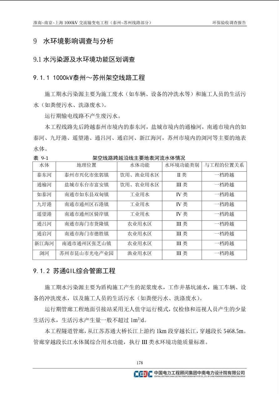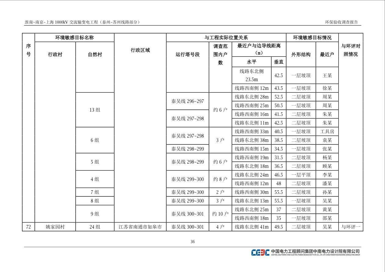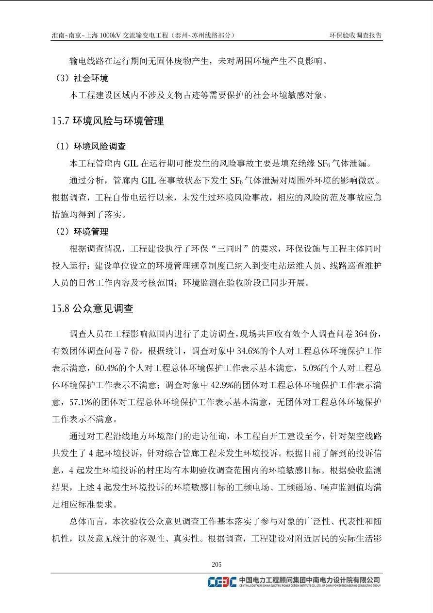 淮南-南京-上海1000kV交流输变电工程(泰州-苏州线路部分)验收调查报告(公示版)