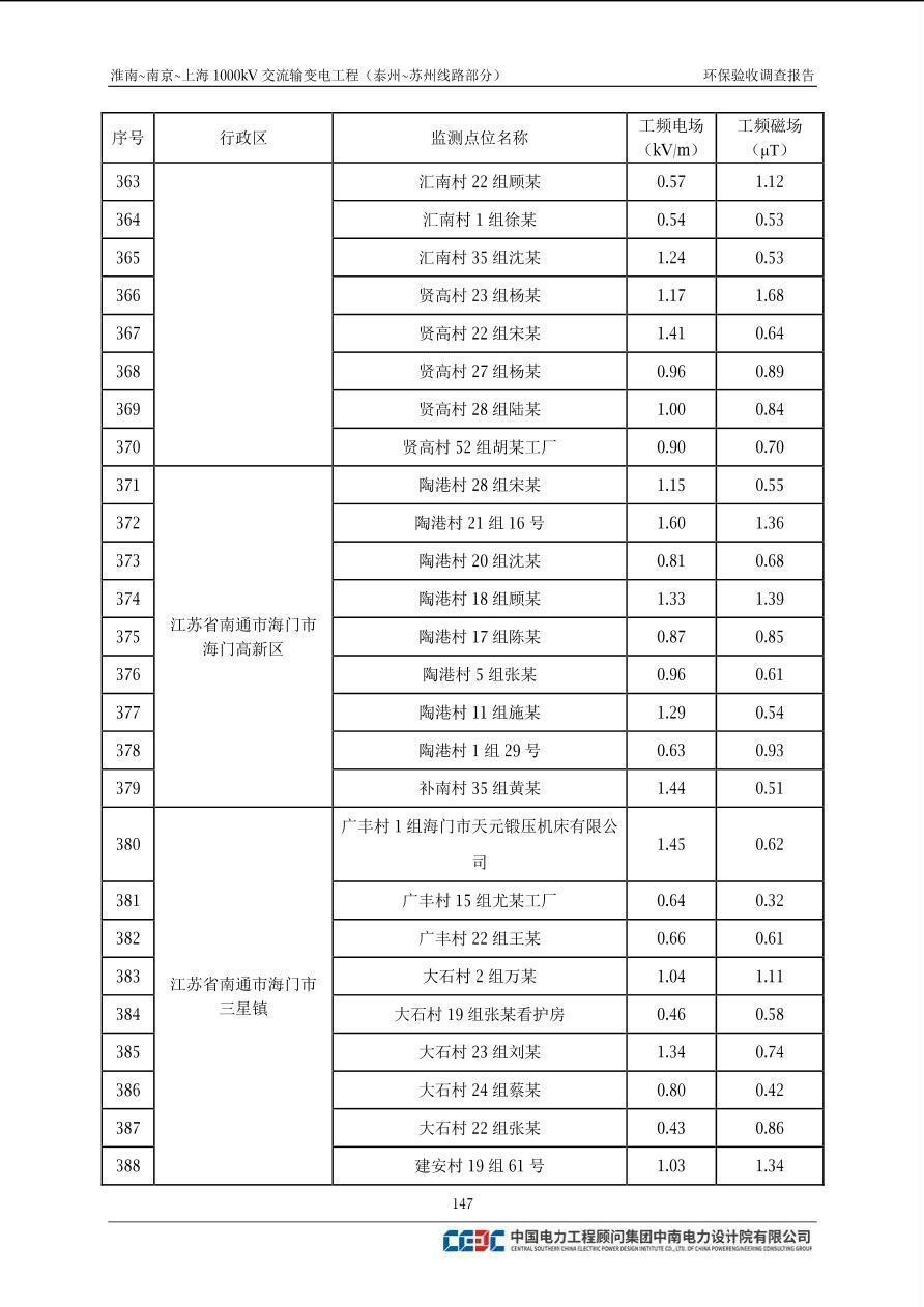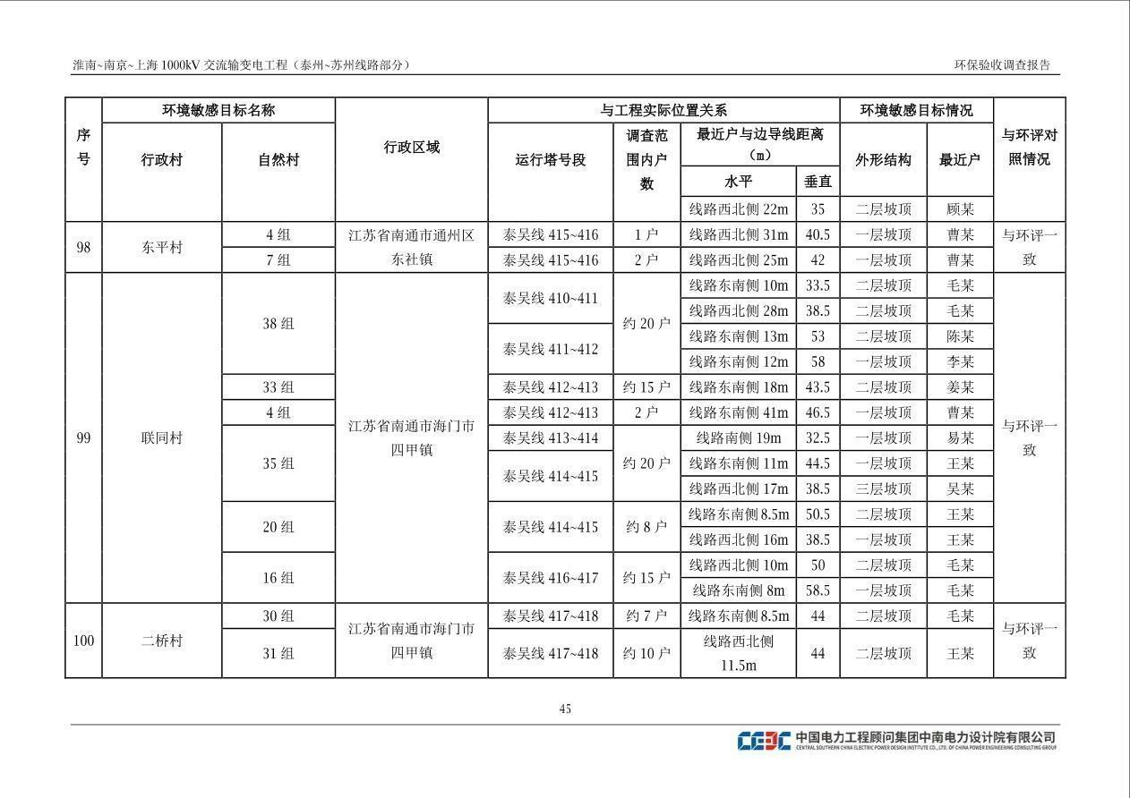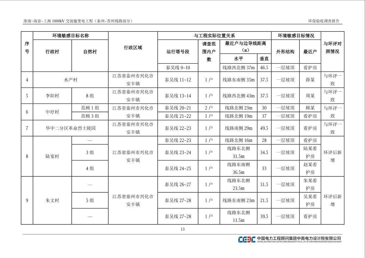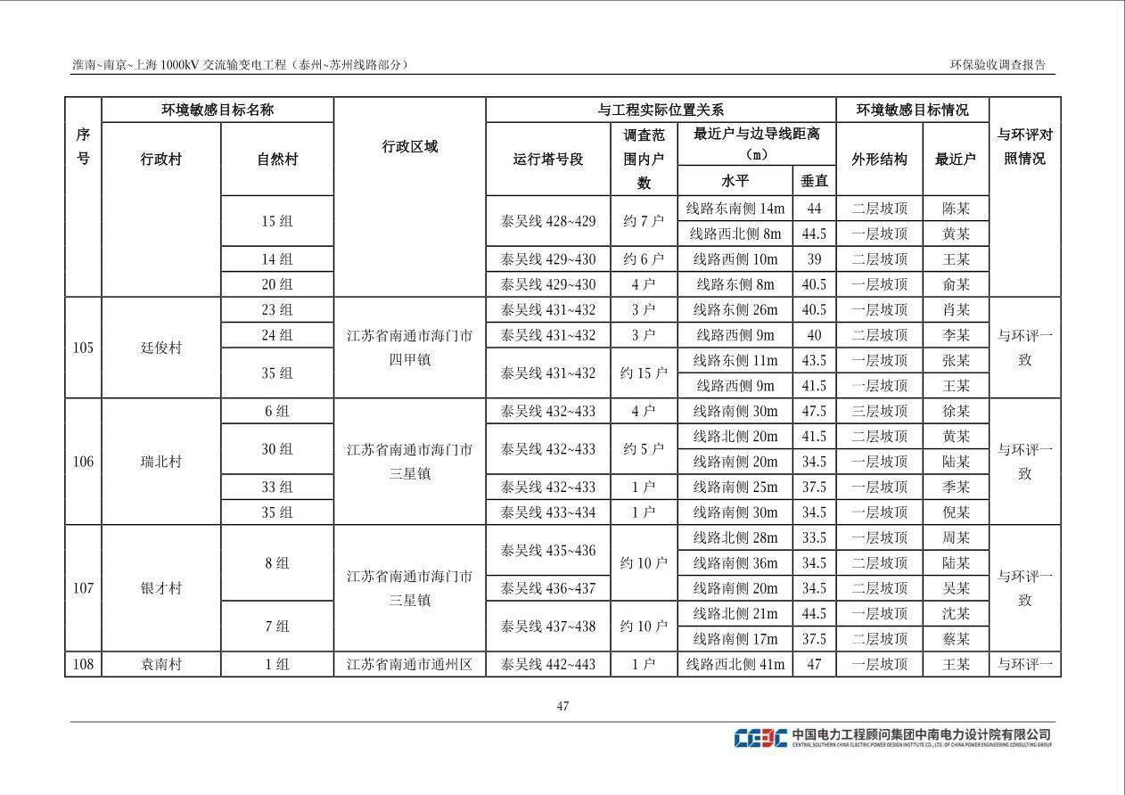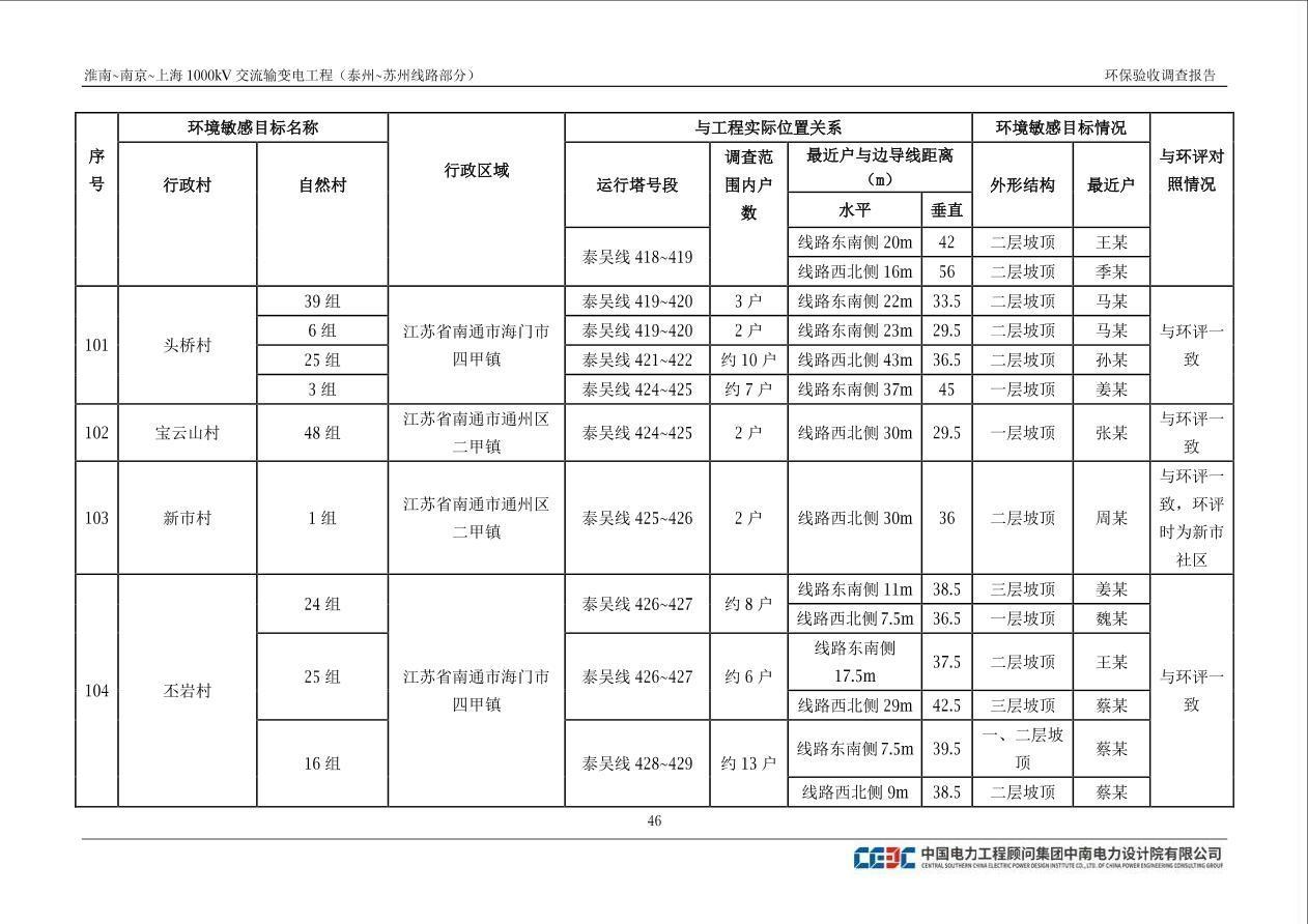 淮南-南京-上海1000kV交流输变电工程(泰州-苏州线路部分)验收调查报告(公示版)