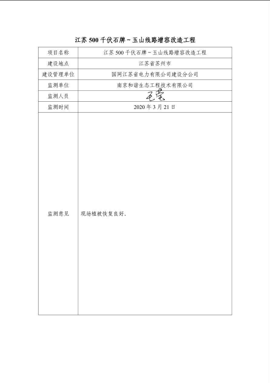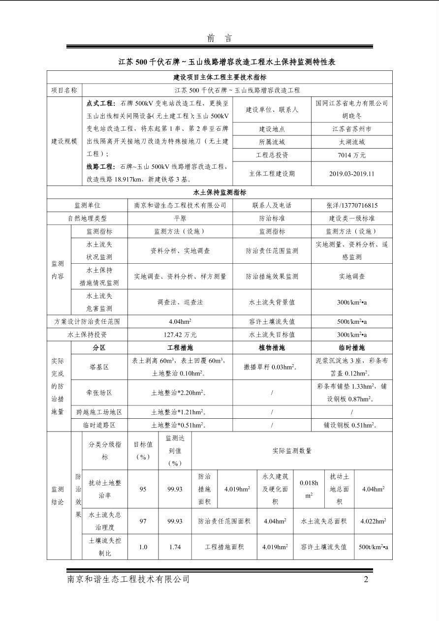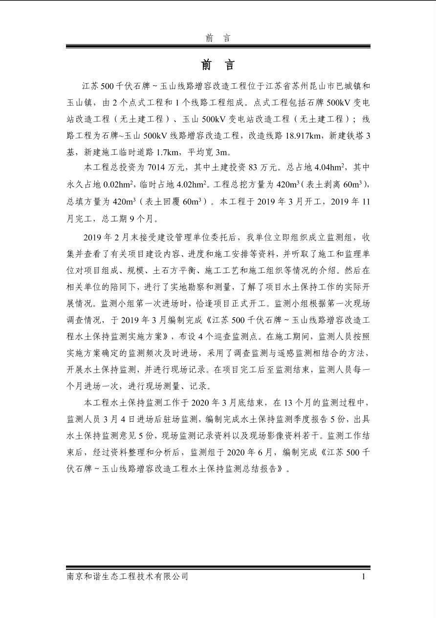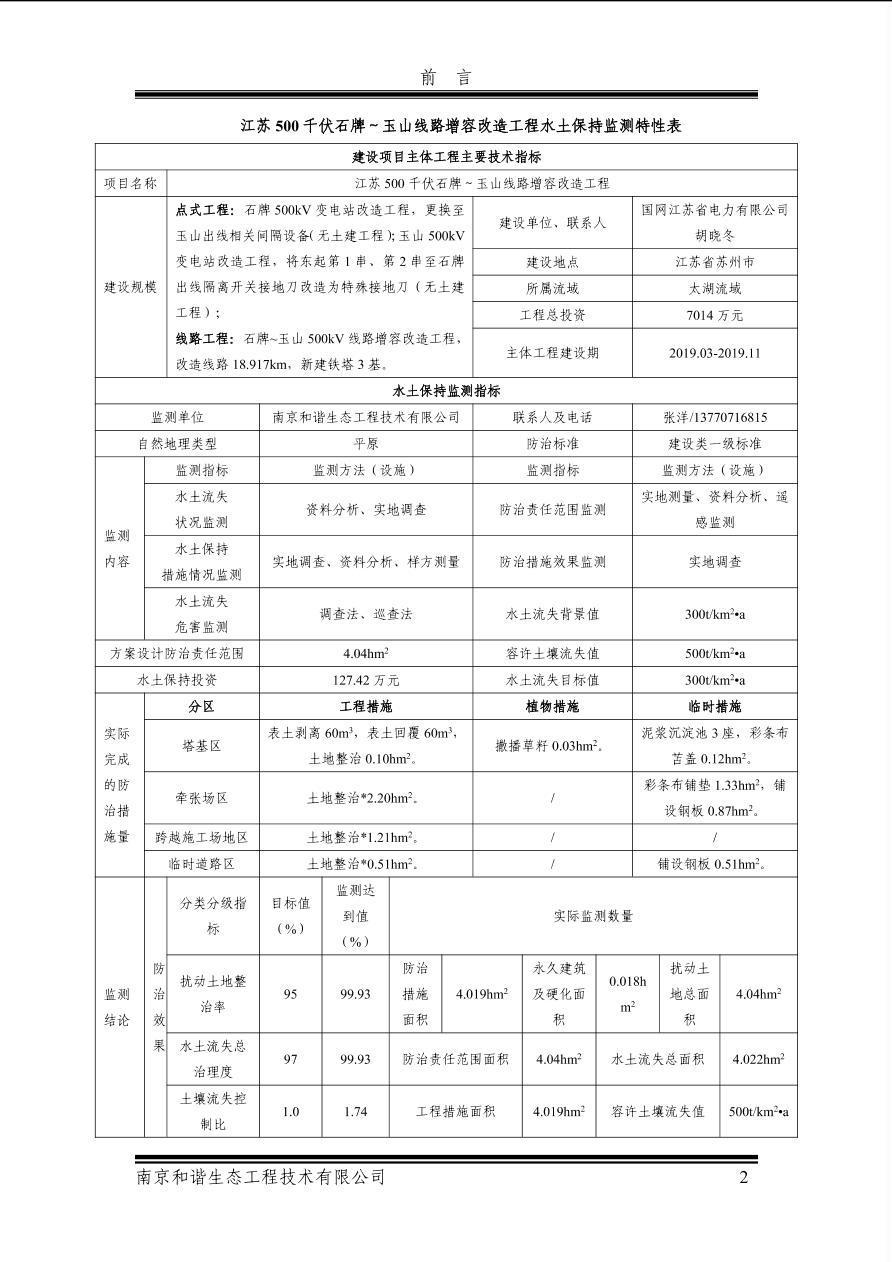 江苏500千伏石牌~玉山线路增容改造工程水土保持监测总结报告