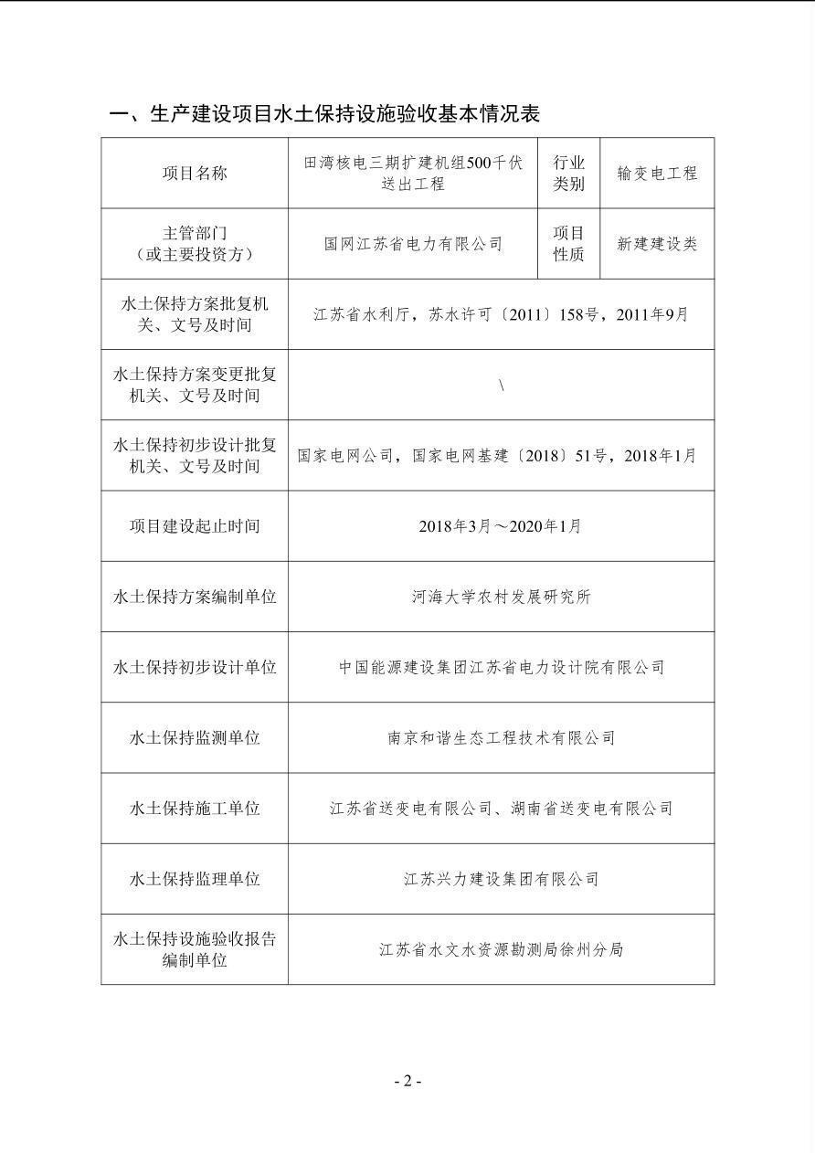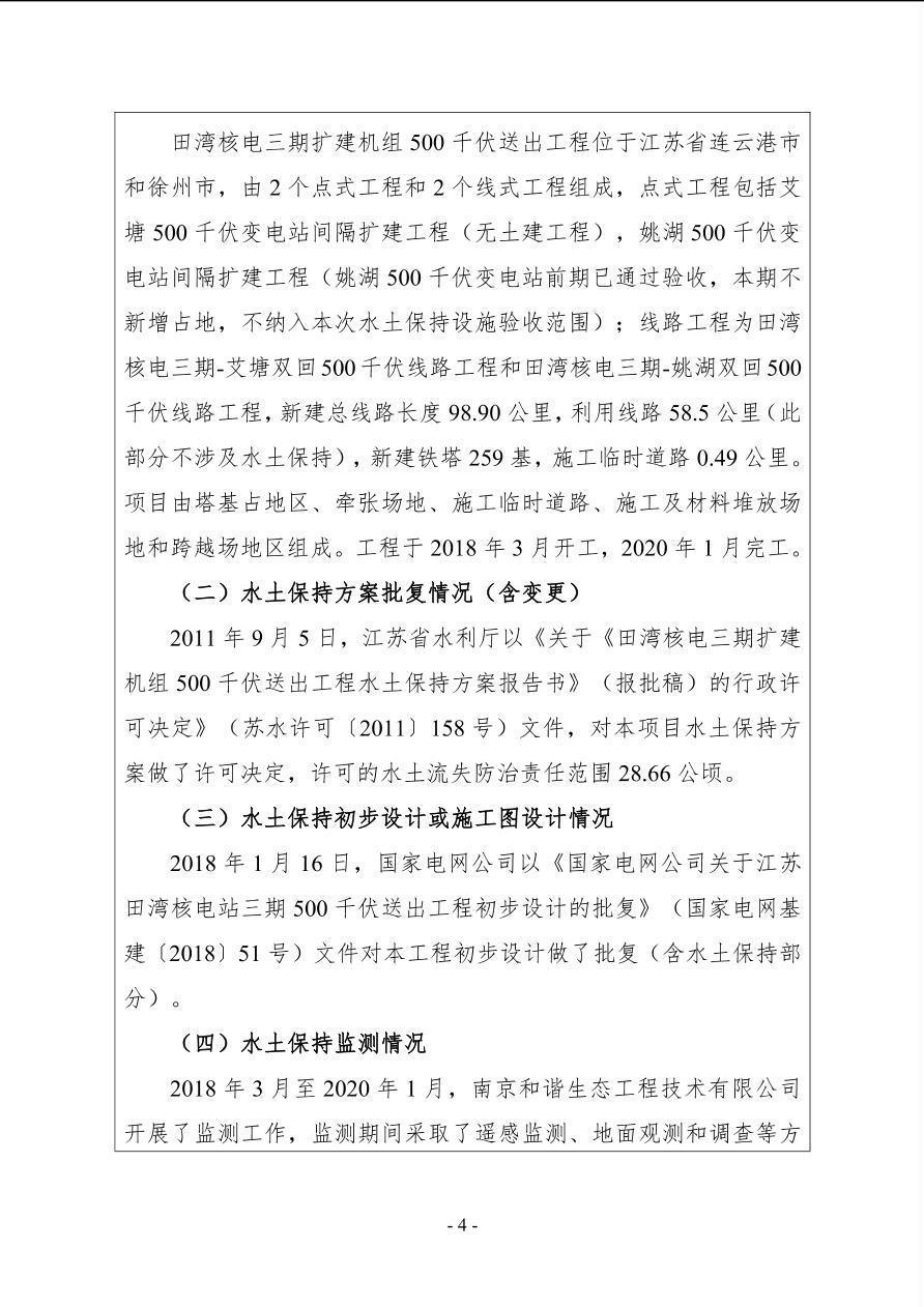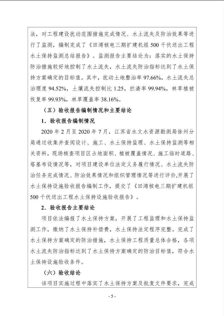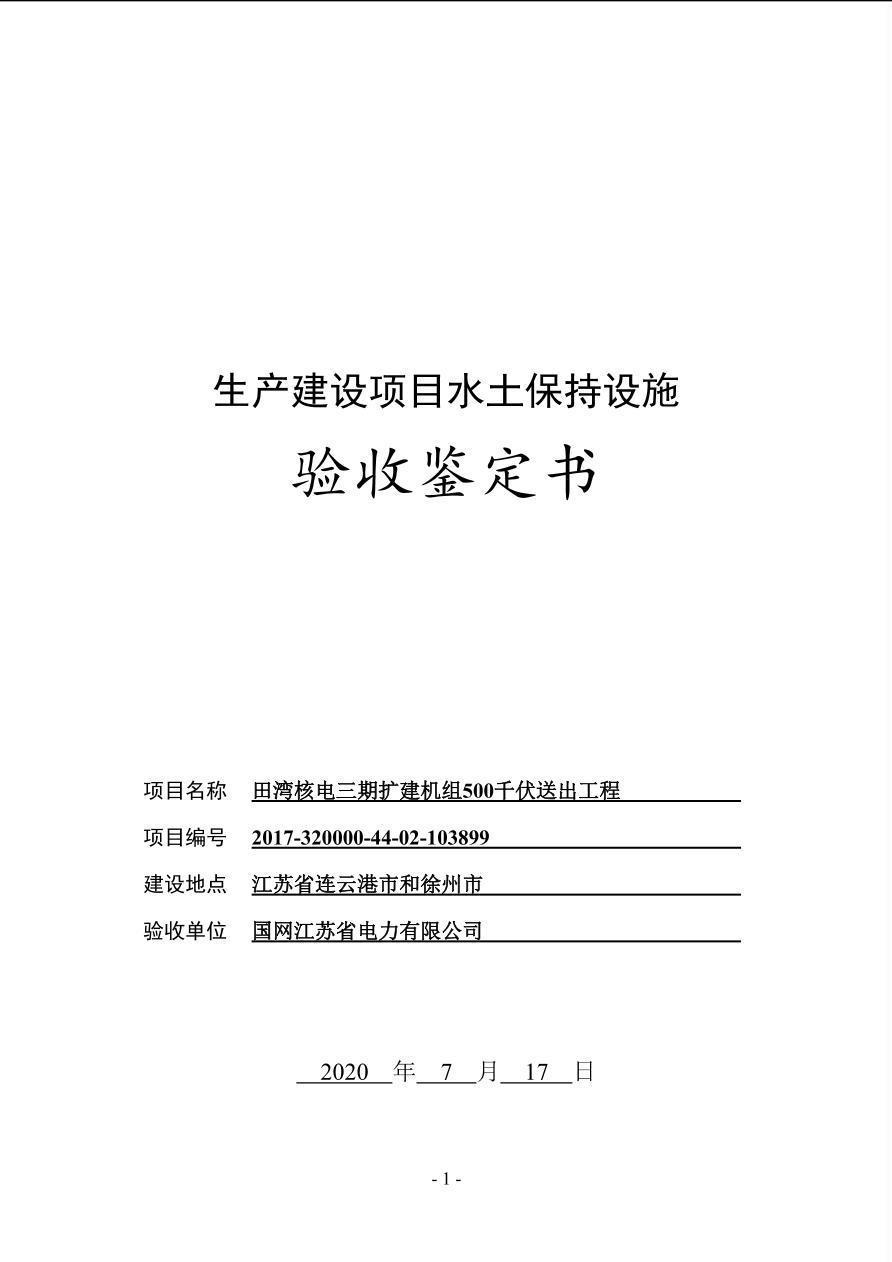 田湾核电三期扩建机组500千伏送出工程水土保持设施验收鉴定书
