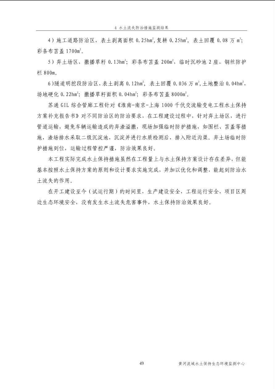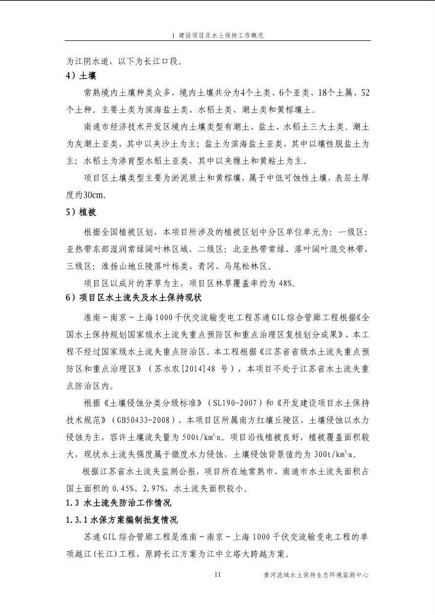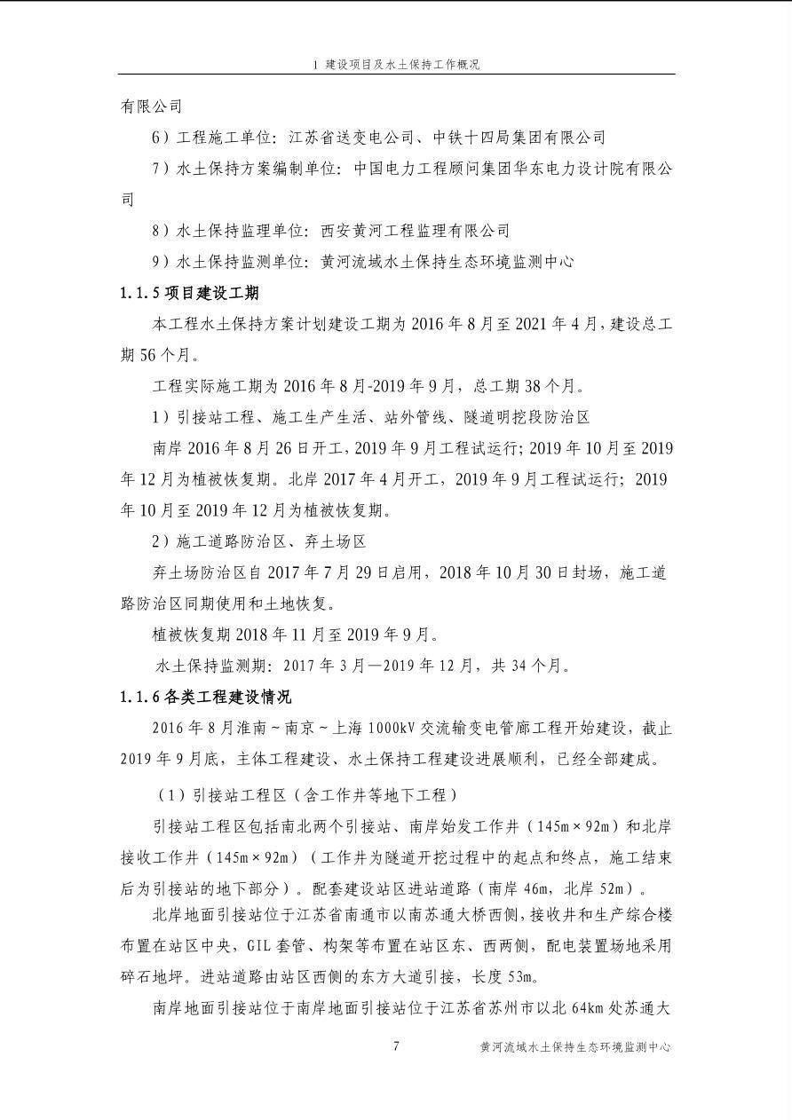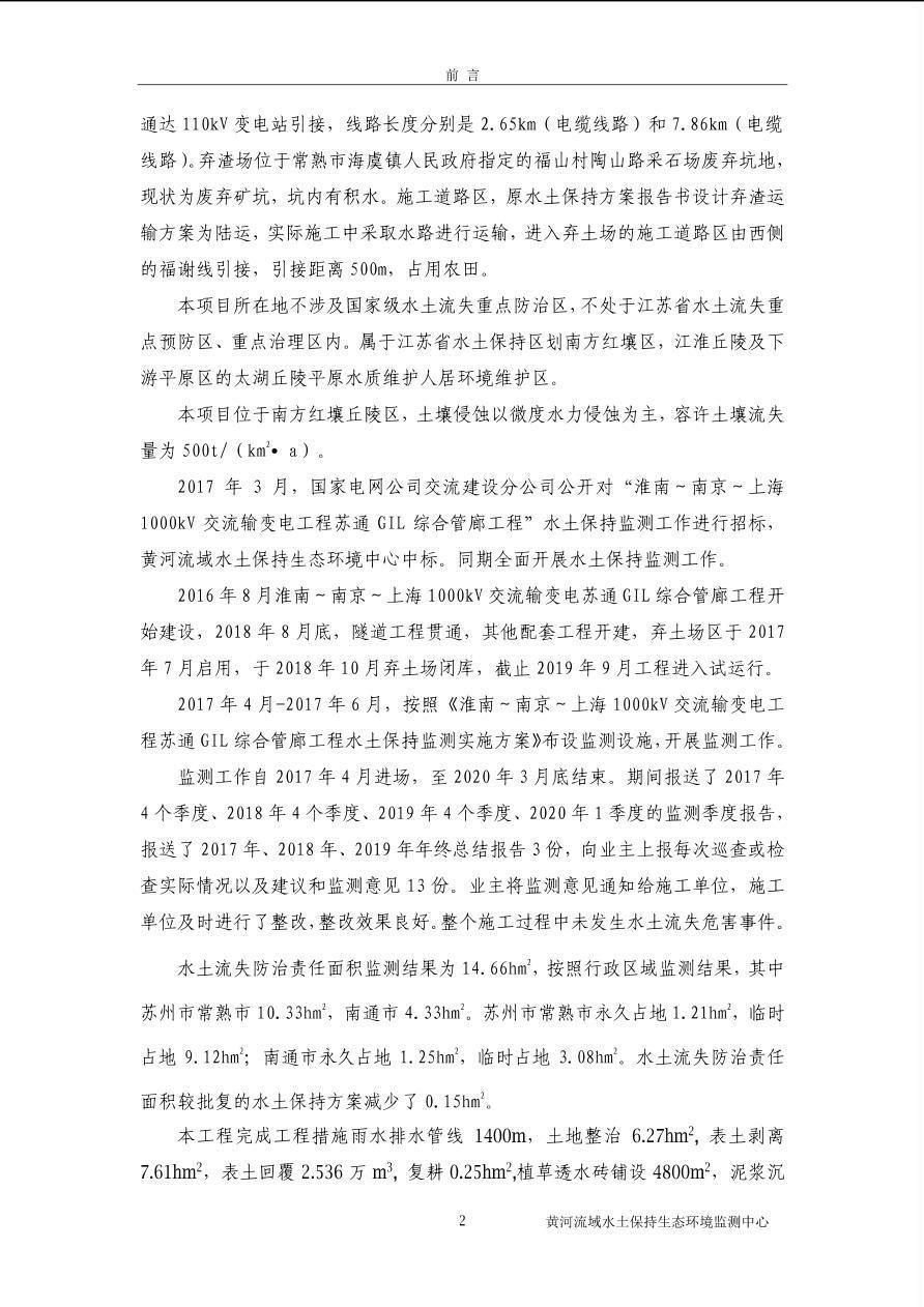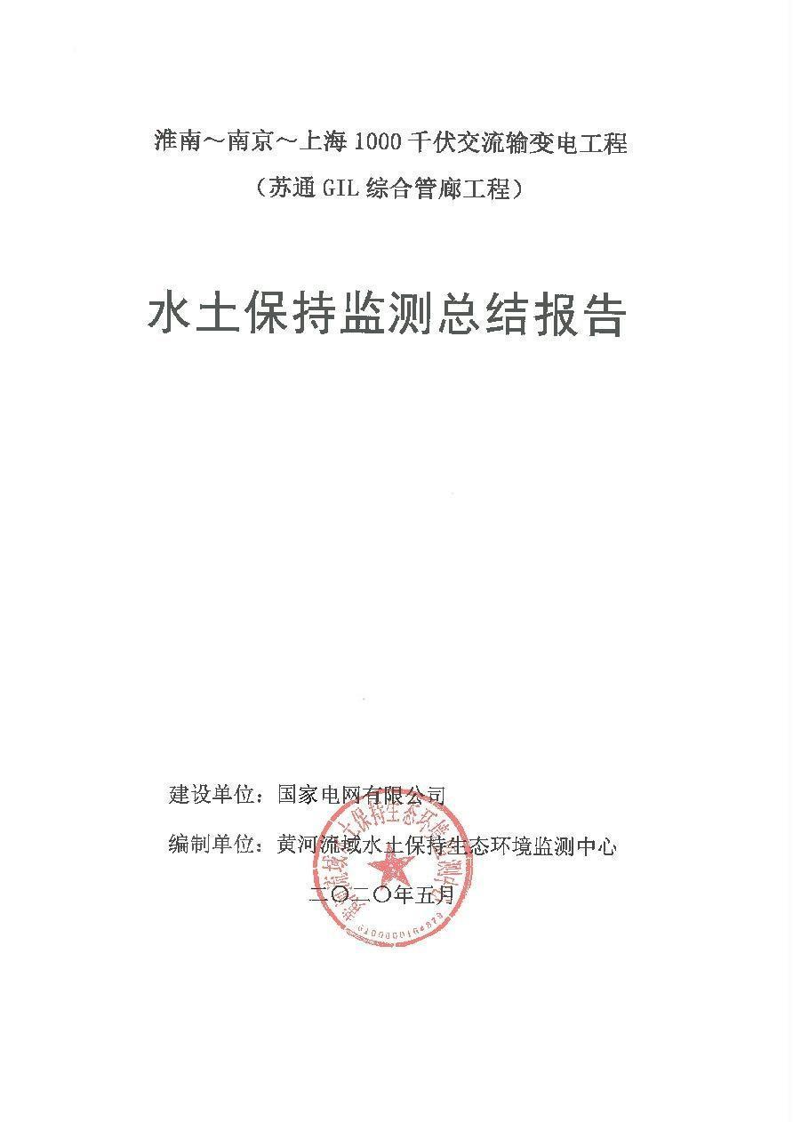 淮南~南京~上海1000千伏交流特高压输变电工程苏通GIL综合管廊工程水土保持监测总结报告