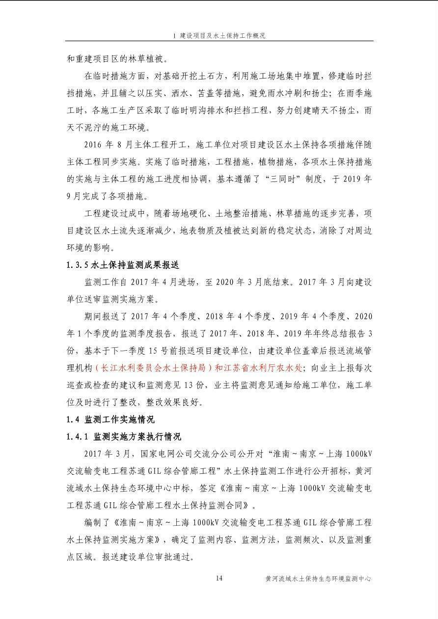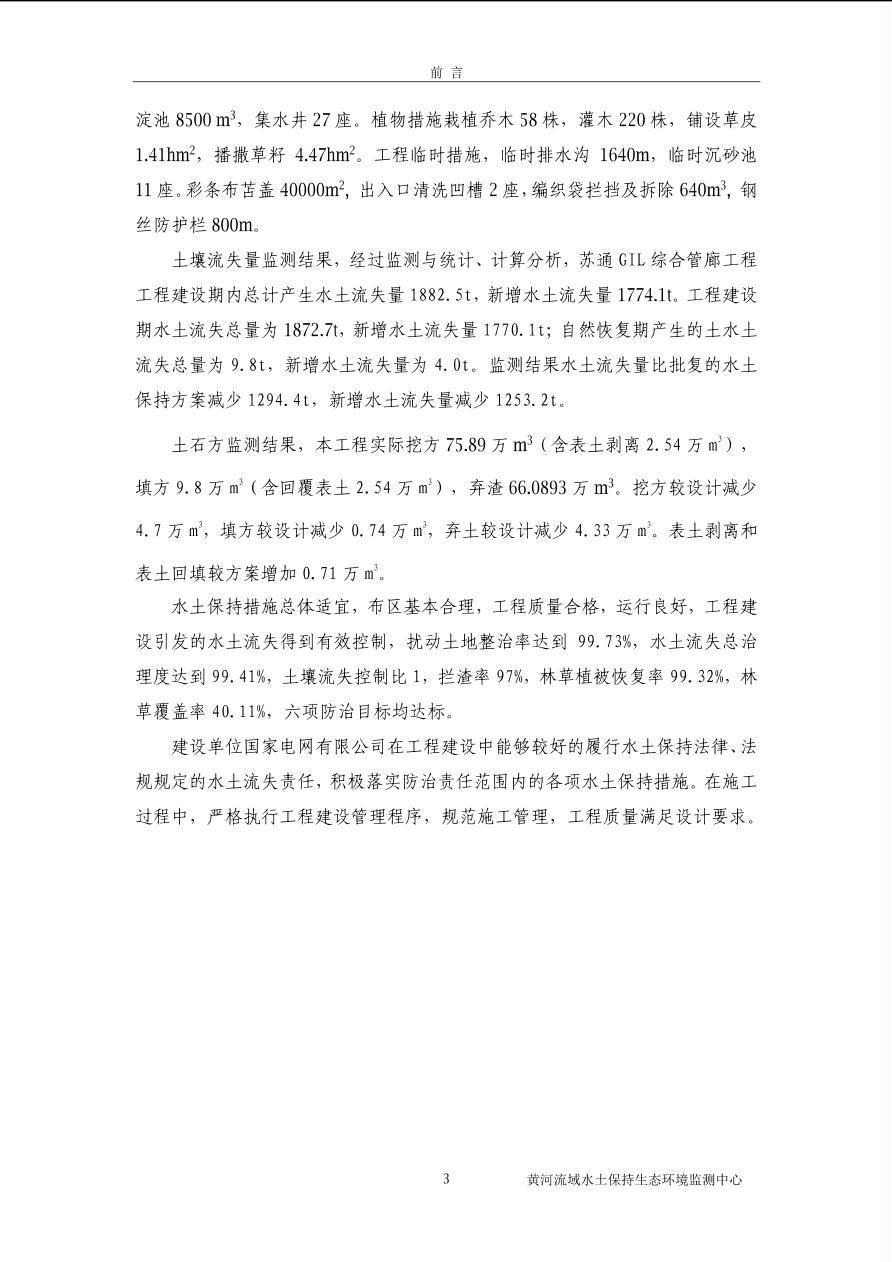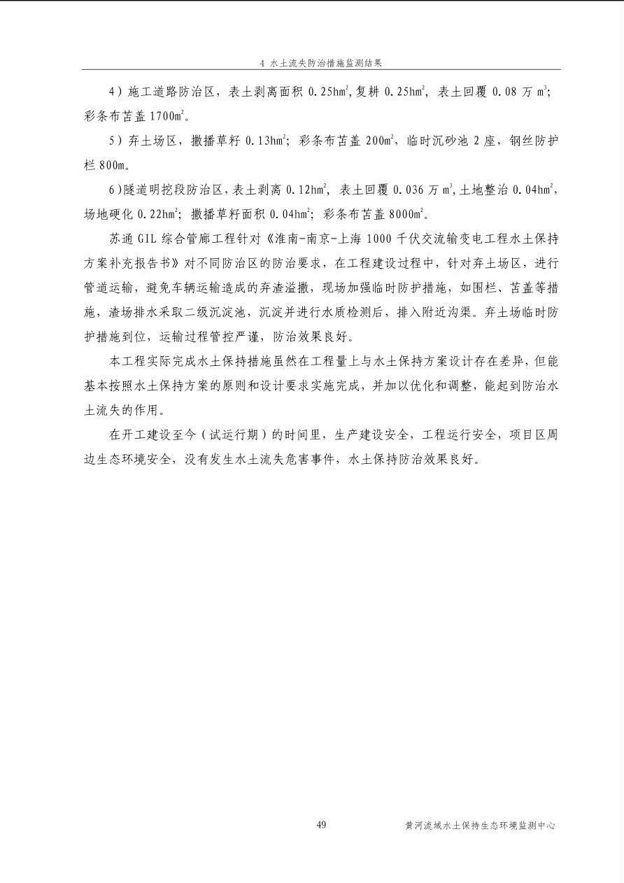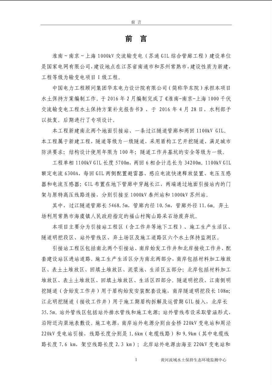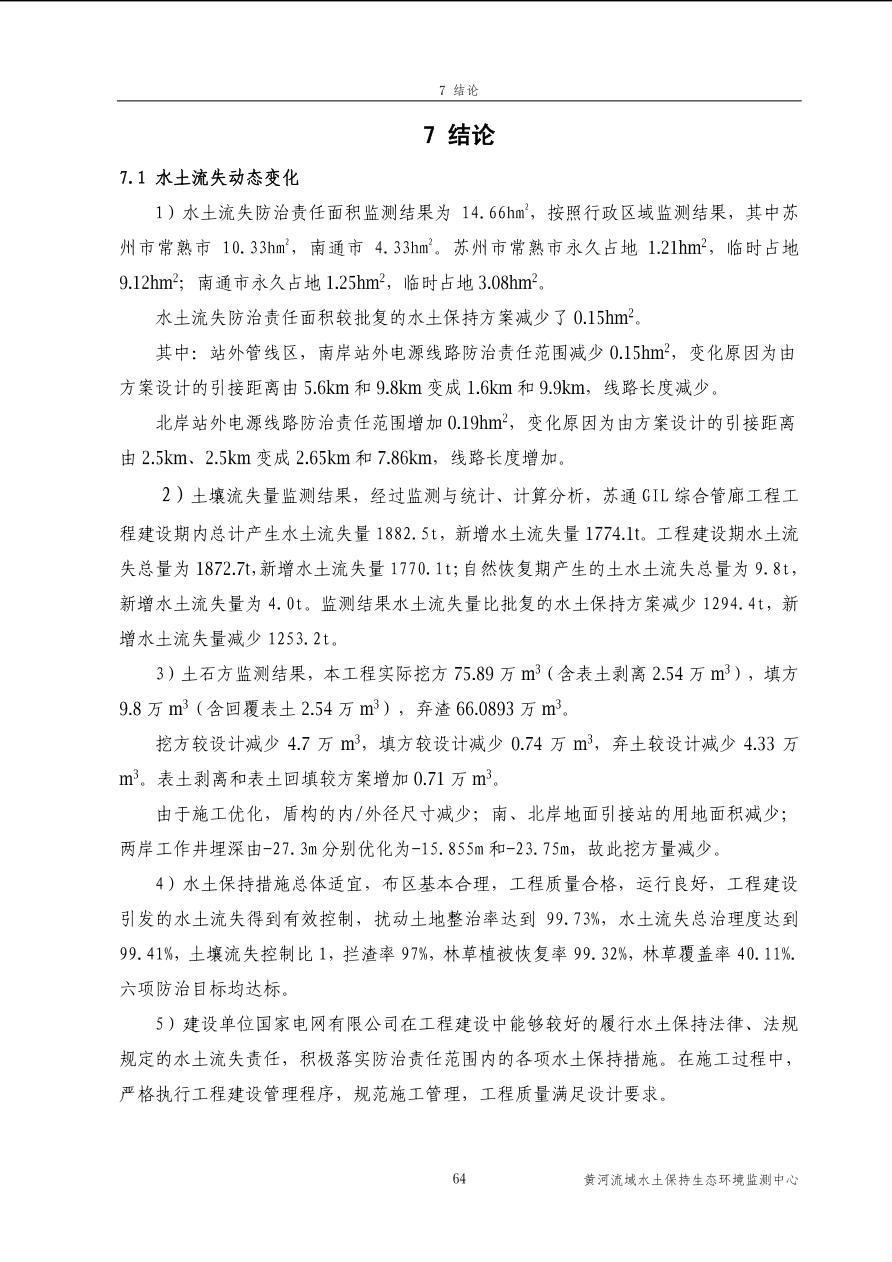 淮南~南京~上海1000千伏交流特高压输变电工程苏通GIL综合管廊工程水土保持监测总结报告