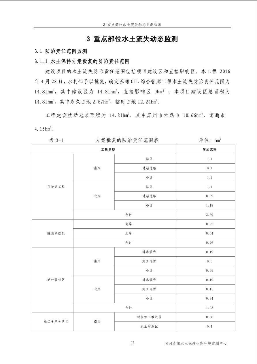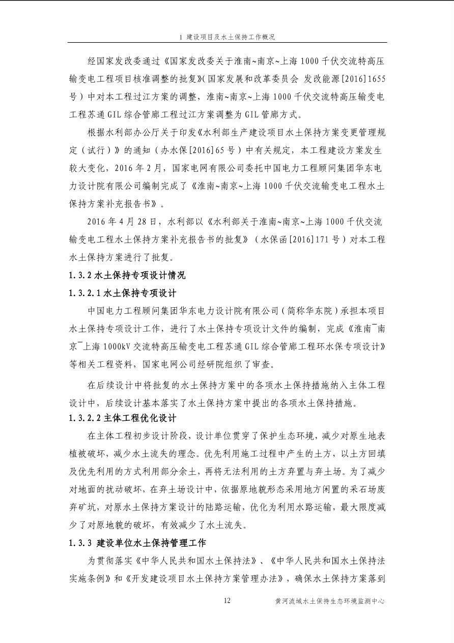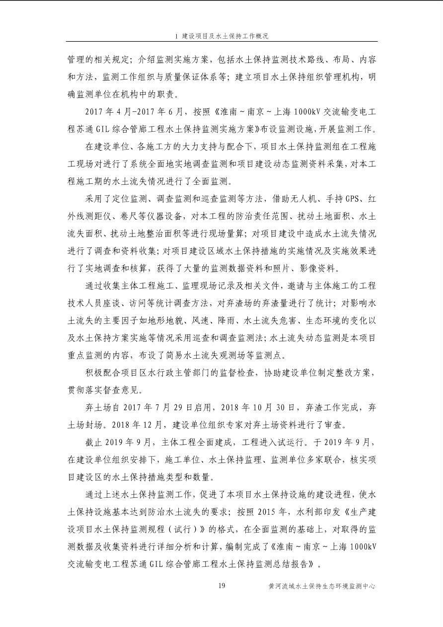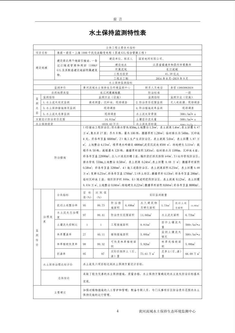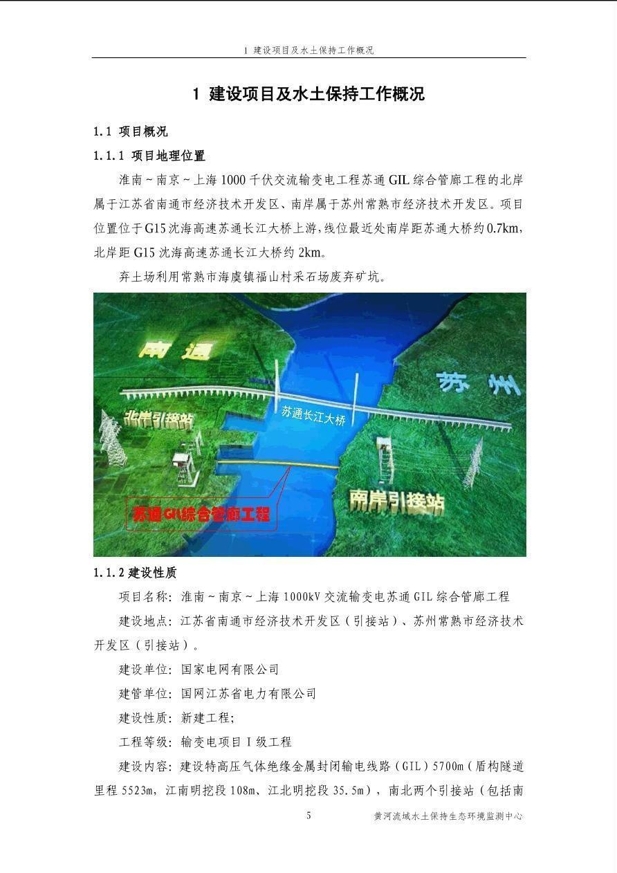 淮南~南京~上海1000千伏交流特高压输变电工程苏通GIL综合管廊工程水土保持监测总结报告