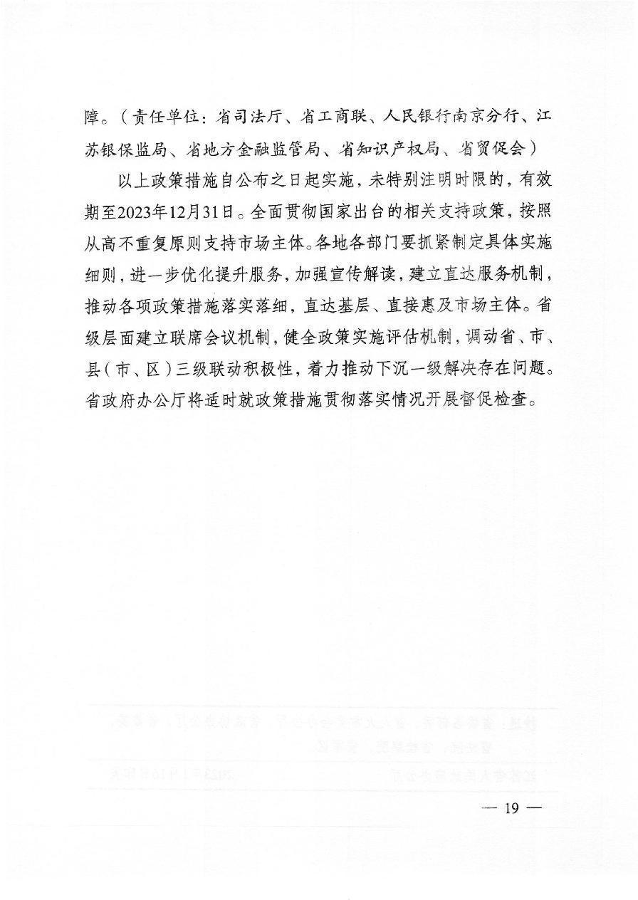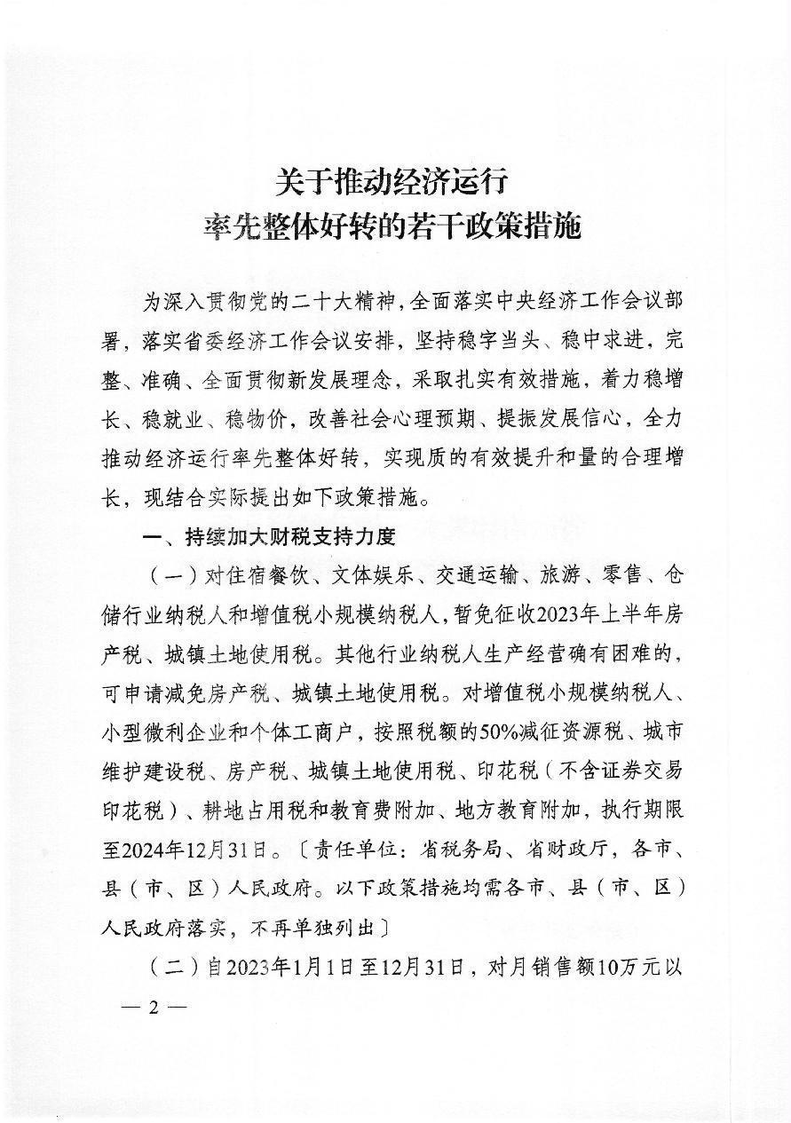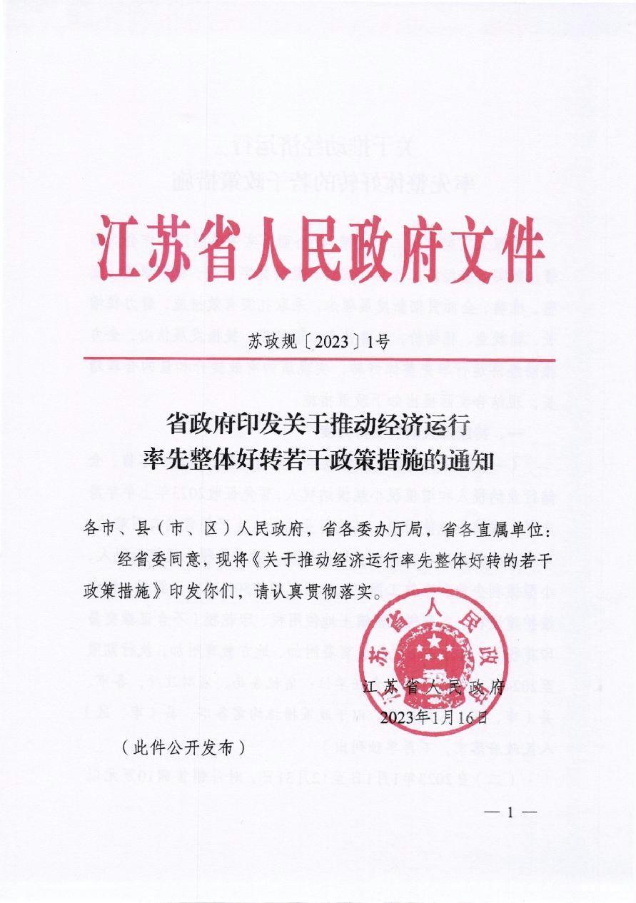 省政府印发关于推动经济运行率先整体好转若干政策措施的通知(苏政规〔2023〕1号)