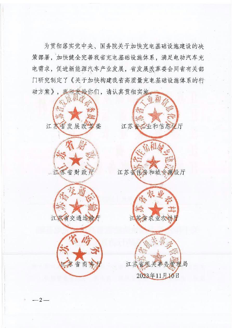关于印发关于加快构建我省高质量充电基础设施体系的行动方案的通知(苏发改能源发〔2023〕1148号)