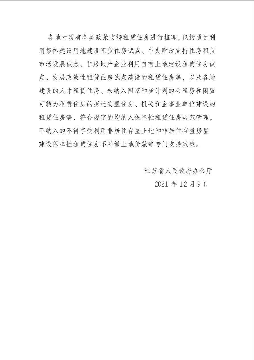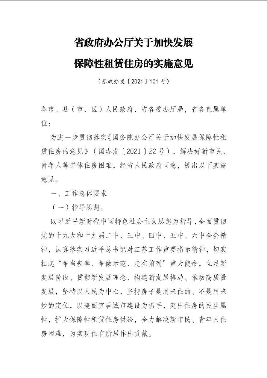 省政府办公厅关于加快发展保障性租赁住房的实施意见(苏政办发〔2021〕101号)