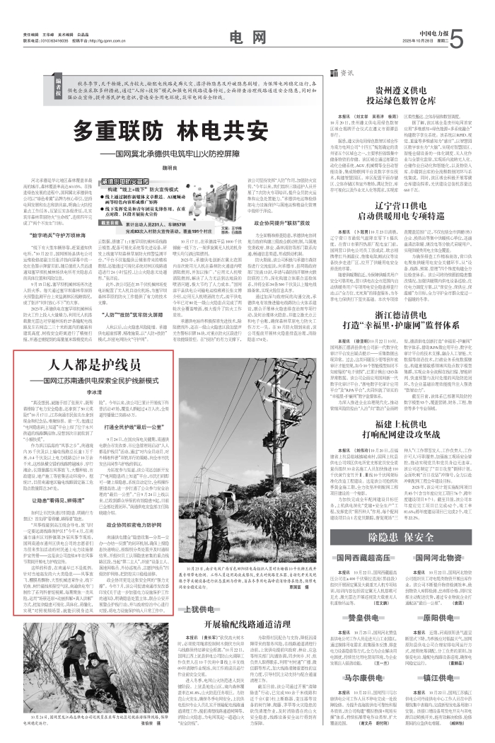 “真没想到,就随手拍了张照片,既帮着排除了电力安全隐患,还拿到了50元奖励!”10月17日,江苏南通市民张先生拿到现金和纪念品,难掩惊喜。前一天,他通过“电网隐患码上知道”平台上报了位于永兴街道的线路飘挂物,没想到次日就收到了“小额快奖”。 作为滨江临海的“风筝之乡”,南通境内35千伏及以上输电线路总长逾1万千米,0.4千伏及以上电力线路总计10万余千米,这些纵横交错的线路跨越城乡、穿行滩涂,长期暴露在风筝放飞、大棚种植、市政建设、地产施工等密集活动环境中。据统计,目前南通地区输电线路固定施工危险点数量即达247处。 让隐患“看得见、辨得清” 如何让市民快速识别隐患、明确行为禁区?首先得“看得懂、辨得清”隐患。 “风筝线碰到高压线会导电,放飞时一定要远离线路保护区!”今年4月,在南通市通州区刘桥镇第29届风筝节现场,国网南通市通州区供电公司的志愿者们为前来参加活动的村民递上电力设施保护宣传册——这是该公司连续8年在风筝节期间开展电力护线宣传。 这样的科普,在南通早已不是孤例。针对当地高发的六大类隐患——风筝放飞、棚膜易飘物、大型机械违章作业、线下钓鱼、树竹碰线和探空气球,南通供电专门制作了系列科普短视频,每期聚焦一类风险,运用“场景还原﹢动画拆解﹢真人讲解”方式,把复杂隐患可视化、具体化、易懂化,实现“对照视频场景,就能识别身边风险”。今年以来,该公司已累计开展线下科普活动47场,覆盖人群超过4万人次,全渠道传播量已突破63万。 打通全民护线“最后一公里” 为拓宽参与渠道,该公司还创新开发了“电网隐患码上知道”平台,市民扫码即可一键上报隐患,系统自动定位,全程操作便捷高效,进一步打通了公众参与安全治理的“最后一公里”。“自9月24日上线以来,已收到群众举报的有效隐患9起,目前已全部处置闭环。”南通供电安监部主任陈晓建介绍。 政企协同织密电力防护网 南通供电健全“隐患收集—分类—交办—办结—反馈”的闭环机制,确保上报隐患快速响应,按级别分类处置并及时通报结果,并组织员工认领隐患密集的重点线路区段,当起“第二主人”,织密“设备主人、属地网格员、外协巡视员、志愿护线员”四级防护网络,把防控关口稳稳前移。 政企协同更是这张安全网的“强力支撑”。今年7月,该公司促请南通市发改委印发《关于进一步加强电力设施保护工作的通知》,明确隐患处置主体,联合公安开展警企护线行动,并与政府综治中心进行对接,将电力设施保护纳入日常工作中。