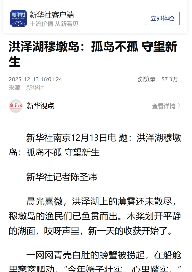 晨光熹微,洪泽湖上的薄雾还未散尽,穆墩岛的渔民们已鱼贯而出。木桨划开平静的湖面,吱呀声里,新一天的收获开始了。 一网网青壳白肚的螃蟹被捞起,在船舱里窸窣爬动。“今年蟹子壮实,心里踏实。”55岁的李广起说。 穆墩岛位于江苏省宿迁市泗洪县,是我国第四大淡水湖洪泽湖中唯一的宜居岛屿,面积约1.96平方公里,四面环水,岛上150余户人家,大多依水而居,以渔为生。 2015年,随着“退圩还湖”等生态保护工程的推进,许多渔民陆续“上岸”,告别了祖辈“水上漂”的生活,外出闯荡。 但像李广起这样的老渔民,早已把根扎在了这片水里。“祖祖辈辈都生活在这儿,离不开了。”他和老伴留了下来,在岛上承包了10亩塘口养螃蟹。 聊起过往,他的记忆飘回童年,“爹妈干活时,总用一根袢带系在我们腋下,另一头拴牢在船梁上,防止我们掉水里。” 如今,孩子们像长大的水鸟飞向了远方,而他和老伴则成了那根系船的桩,守着这片湖,也守着这份延续的牵挂。 孤岛生活,基础设施曾是最大的心病。“岛离岸20多里,坐船也得20多分钟。”李广起回忆,以往岛上只有一条架空电线供电,电杆立在湖边,常年受风雨侵蚀。“碰上刮大风、下大雨,整夜不敢合眼,就怕增氧机停了把蟹憋死。” 规模不敢扩大,生活也有诸多不便,这曾是岛上许多留守渔民共同的困境。 转机从去年开始。为解决岛上用电难题,国网泗洪县供电公司制定了一套“双保险”方案:在原来架空线路供电的基础上,前不久启动了更关键的工程——铺设湖底电缆。 蟹农们未必说得清“双保险”的意义,但他们看得见结果:无论风浪多大,家里和塘口的灯,再也没停过。电稳了,心就定了,李广起筹划着明年把塘口再扩一扩。 让岛上居民感到安心的还有今年2月开通的“空中邮路”,利用无人机投递邮件,从岸上到岛上,单程只需十分钟。 昔日的袢带,系住的是一份即时的看护;如今脚下的电网、头顶的邮路,托起一岛人安稳向前的生计与未来。(完) 稿件来源:新华社 一审一校:吴迪 二审二校:孟飞 三审三校:吕海侠