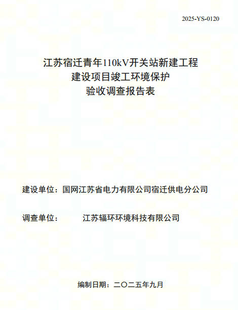 江苏宿迁青年110千伏开关站新建工程竣工环境保护验收调查报告表
