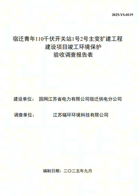 宿迁青年110千伏开关站1号2号主变扩建工程建设项目竣工环境保护验收调查报告表