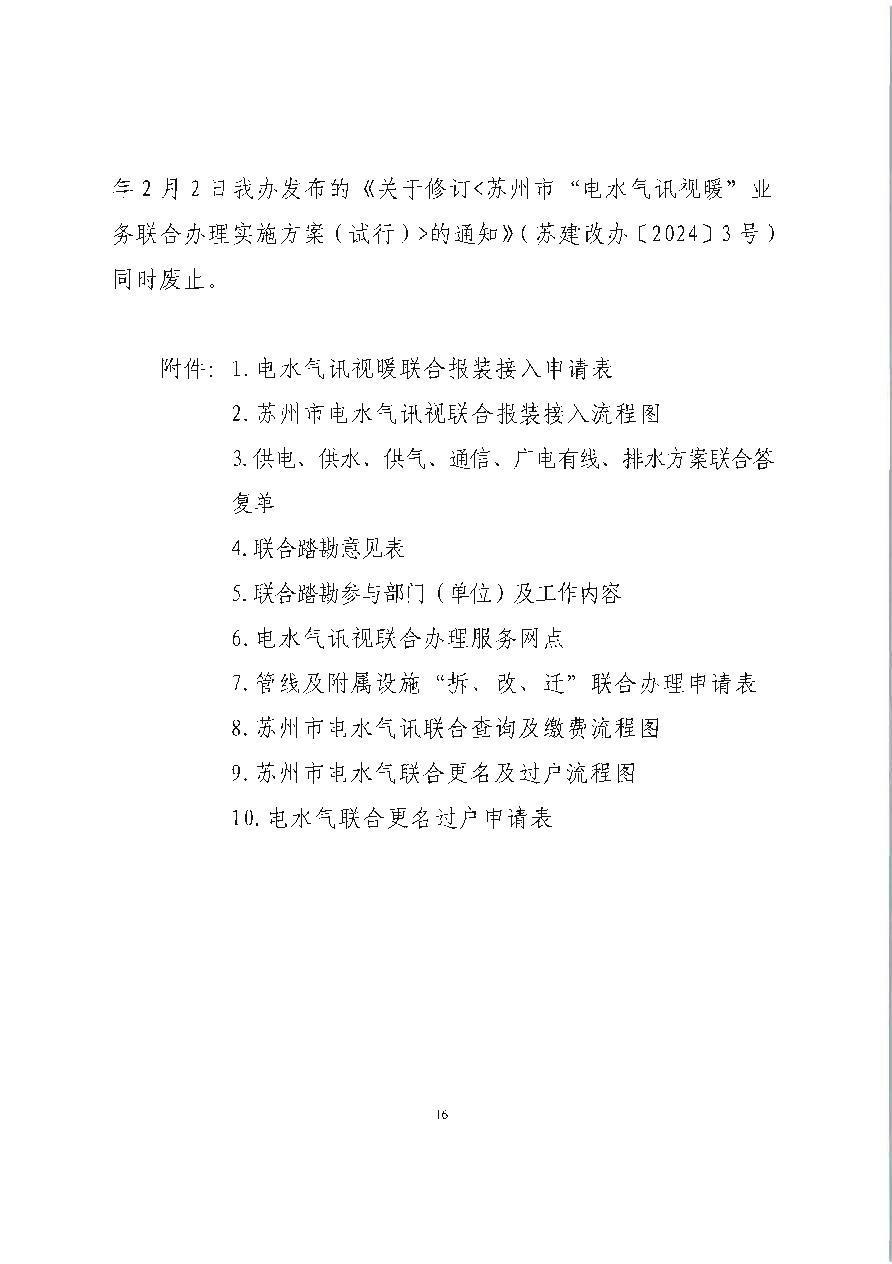 苏建改办〔2024〕10号 关于修订《苏州市“电水气讯视暖”业务联合办理实施方案(试行)》的通知