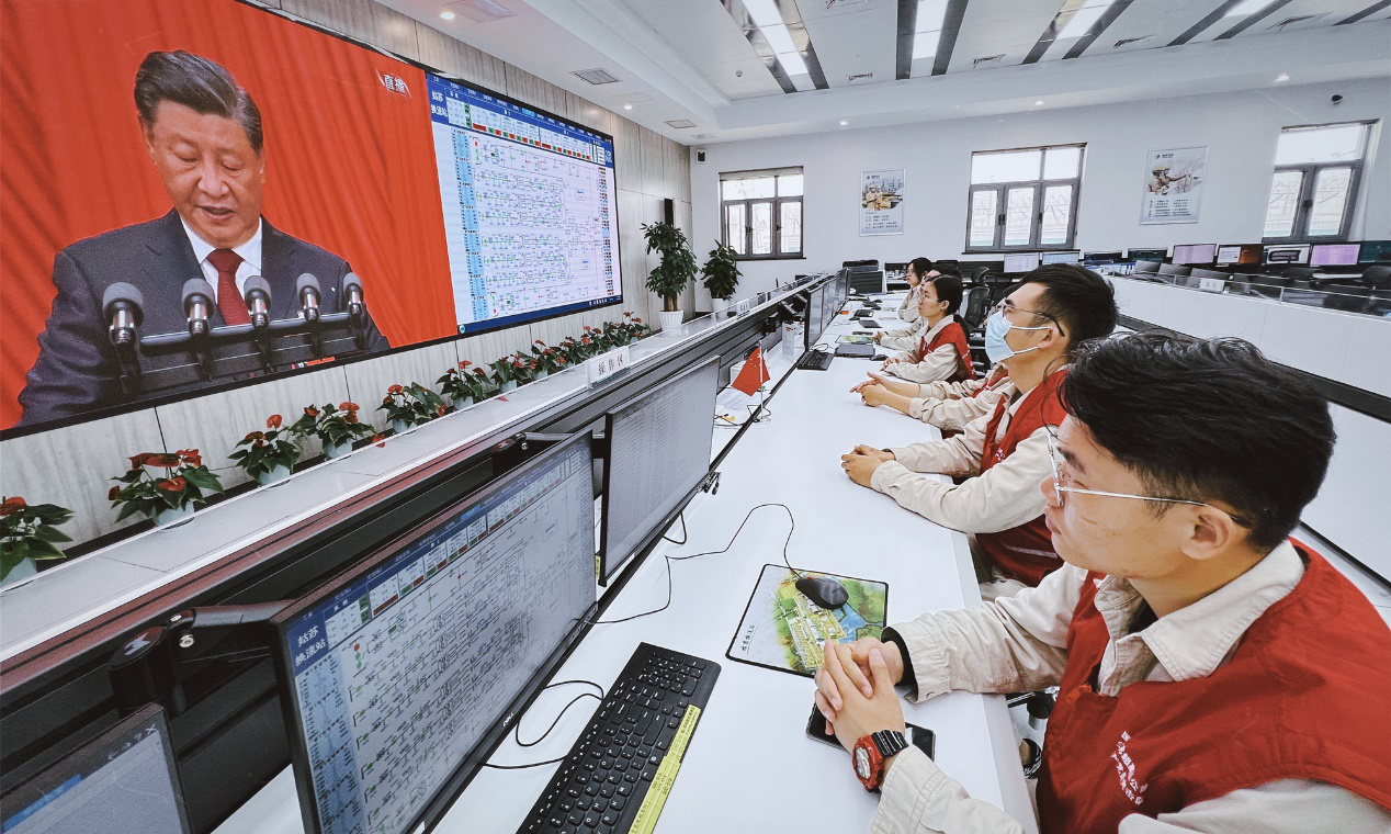 举国关注、举世瞩目,中国共产党第二十次全国代表大会10月16日在北京隆重开幕。习近平总书记代表第十九届中央委员会向党的二十大作报告。 从重大工程现场到学员课堂,再到一线班组、乡村站所,公司系统广大干部员工通过不同方式收视盛会实况,共同回顾党的十八大以来发展的辉煌成就,共同展望至本世纪中叶的宏伟蓝图。大家在聆听总书记的报告后,纷纷表示倍受鼓舞、倍增干劲,要将大会精神融入本职岗位、化为奋进动力。 青 干 班 的“ 特 殊 一 课 ” 党旗庄严,党徽闪耀。10月16日上午,在公司党校党建实训中心,公司2022年青干班36名学员齐聚一堂,集中收视党的二十大开幕会直播。 “同志们!新时代的伟大成就是党和人民一道拼出来、干出来、奋斗出来的!”在聆听习近平总书记所作的报告时,青干班学员中不时爆发出热烈掌声。不少学员还认真记录下其中的“金句”。收视结束后,大家一起高唱《没有共产党就没有新中国》,歌声久久回响。 新时代新征程中国共产党的使命任务、加快构建新发展格局、增进民生福祉、推动绿色发展、坚定不移全面从严治党……当天下午,围绕党的二十大报告15个部分中的热点议题,全体学员分组展开讨论,畅谈体会。 对报告中提到的“选拔忠诚干净担当的高素质专业化干部”,青干班学员、公司组织部干部二处处长孙涛深有感触,“作为能源领域国有企业年轻干部,我们要主动担当作为,切实扛起治企兴企责任,加强自身能力建设和作风修养,涵养志气、骨气、底气,立鸿鹄志、做奋斗者,用智慧和汗水为祖国电力事业发展谱写青春华章。” 青干班学员盱眙县供电公司总经理、党委副书记季彬的笔记本上,记下了总书记报告中的一句话:“当代中国青年生逢其时,施展才干的舞台无比广阔,实现梦想的前景无比光明。”季彬在发言中道出心声,“我们要坚定不移听党话、跟党走,怀抱梦想又脚踏实地,敢想敢为又善作善成,立志做有理想、敢担当、能吃苦、肯奋斗的新时代好青年。” 讨论一直持续到当天傍晚。学员们纷纷表示,要把学习宣贯党的二十大精神作为首要政治任务,着力在深学细悟笃行上下功夫,把思想和行动统一到党中央决策部署上来,将党的二十大提出的新思路、新战略、新举措,转化为破解难题、推动工作、促进发展的具体实践。(陈霄 董梁) 在 姑 苏 换 流 站 看 盛 会 10月16日6时,晨光熹微。±800千伏姑苏换流站主控室内,运维值长顾元强完成了极2低端阀组设备的倒闸操作。他已为这项工作忙了一夜。 自9月底开始低端系统调试以来,姑苏站内日夜繁忙。“早上有一次换流站全面巡视工作,小商去双极高端换流变区,陈畅去双极低端直流场及可控效能装置室……”没顾得上休息,顾元强向商皓钰、陈畅等10名值班员交代了工作任务。 “今天是党的二十大召开的日子,咱们早点去,回来一起看直播!”陈畅对商皓钰说。说罢,他们拿上红外测温仪、戴上安全帽,便分头前往各自负责的设备区域巡视。 “快来,直播要开始了!”9时50分,结束巡视的陈畅回到主控室,拿起手机,打开直播,招呼同事们一起来看。“马上就来!”仍在埋头填写巡视记录的商皓钰回答道,“现在是党的二十大保电的关键期,每一项设备数据更要好好核对,绝不能出差错。” 10时,主控楼内除监盘人员外,其他值班人员全神贯注,通过视频画面感受振奋人心的党的二十大开幕会盛况,聆听习近平总书记代表第十九届中央委员会作报告。 “这些年,我亲眼目睹了电力行业的快速发展,由过去设备依靠进口,到现在核心设备基本实现国产化!短短十余年时间,我国特高压输电技术从落后到位居世界第一,成为继高铁之后的又一张中国名片。”当听总书记提到“加快实施创新驱动发展战略,加快实现高水平科技自立自强”时,姑苏换流站副站长朱晓峰有感而发。他表示,“我要把党的二十大精神贯彻到本职工作中去,守好外电安全入苏的生命线。”从2012年起,朱晓峰先后参加了1000千伏淮上线、±800千伏泰州换流站的生产准备工作,见证了中国特高压的发展。(庞家彧 陈玥琳) 守 护 廊 道 只 为 滨 江 新 貌 10月16日清晨5点,天还未亮,在长江之滨、南通狼山边的220千伏滨江GIL管廊内,南通供电公司输电运检中心电缆班班长叶超等一行3人就开始了当天管廊内线路的巡检工作。 2020年11月,习近平总书记视察江苏,第一站就来到南通滨江片区考察长江生态,叮嘱要“处理好城市生产生活和生态环境保护的关系”。作为该片区生态修复的配套工程,1个月后,220千伏滨江GIL管廊全线投运。 位于地下1.5米深处的滨江GIL管廊内,贯穿着4回220千伏输电线路。“这个位置原先是4条架空线路。”叶超指着头顶说,“随着管廊建成,这4条线路全部改造入地,原本纵横交错的‘蜘蛛网’消失了,长江天际线一望无垠。” 当天10点,党的二十大将在北京隆重召开。叶超和同事葛良军、李仲恒怀着十分激动的心情,一早便赶到狼山边,进入滨江GIL管廊巡视设备,以便完成巡视任务后收看二十大开幕会。他们一边巡视,一边对照标准化巡视卡,记录各个气室的气压数值。总长5.3公里的管廊,巡视一趟下来,他们用了3个多小时。 9时许,三人回到GIL监控中心,通过智能管控平台,查看管廊内温度、湿度、氧气、六氟化硫等环境指标。确认无异常后,叶超在手机上打开了二十大开幕会直播,三人一同