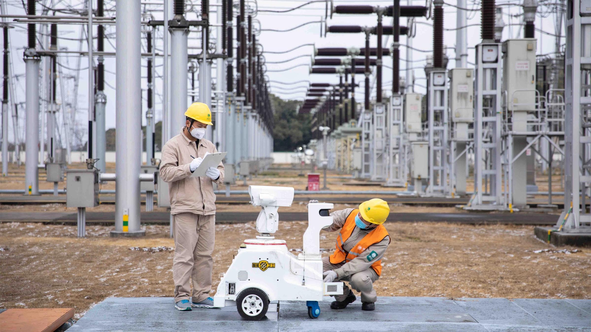 1月14日,国网江苏超高压公司运维人员正在特高压泰州站内检查电气设备及配套设施运行情况。(仲金龙)