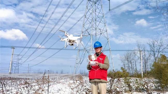 1月15日,国网江苏超高压公司输电运检人员利用无人机对1000千伏淮盱线开展巡检。(张子阳)