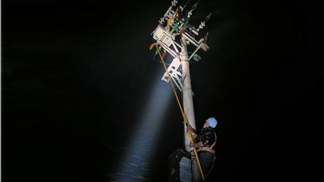 1月13日晚,国网海安市供电公司工作人员迅速排除了老坝港10千伏海防线故障,及时恢复了向居民供电。(蔡小洋)