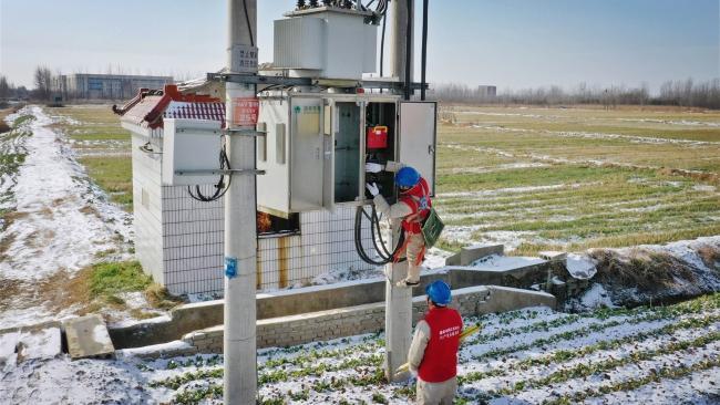 1月15日,国网滨海县供电公司工作人员检查辖区内变压器和配电线路。(周吉成)