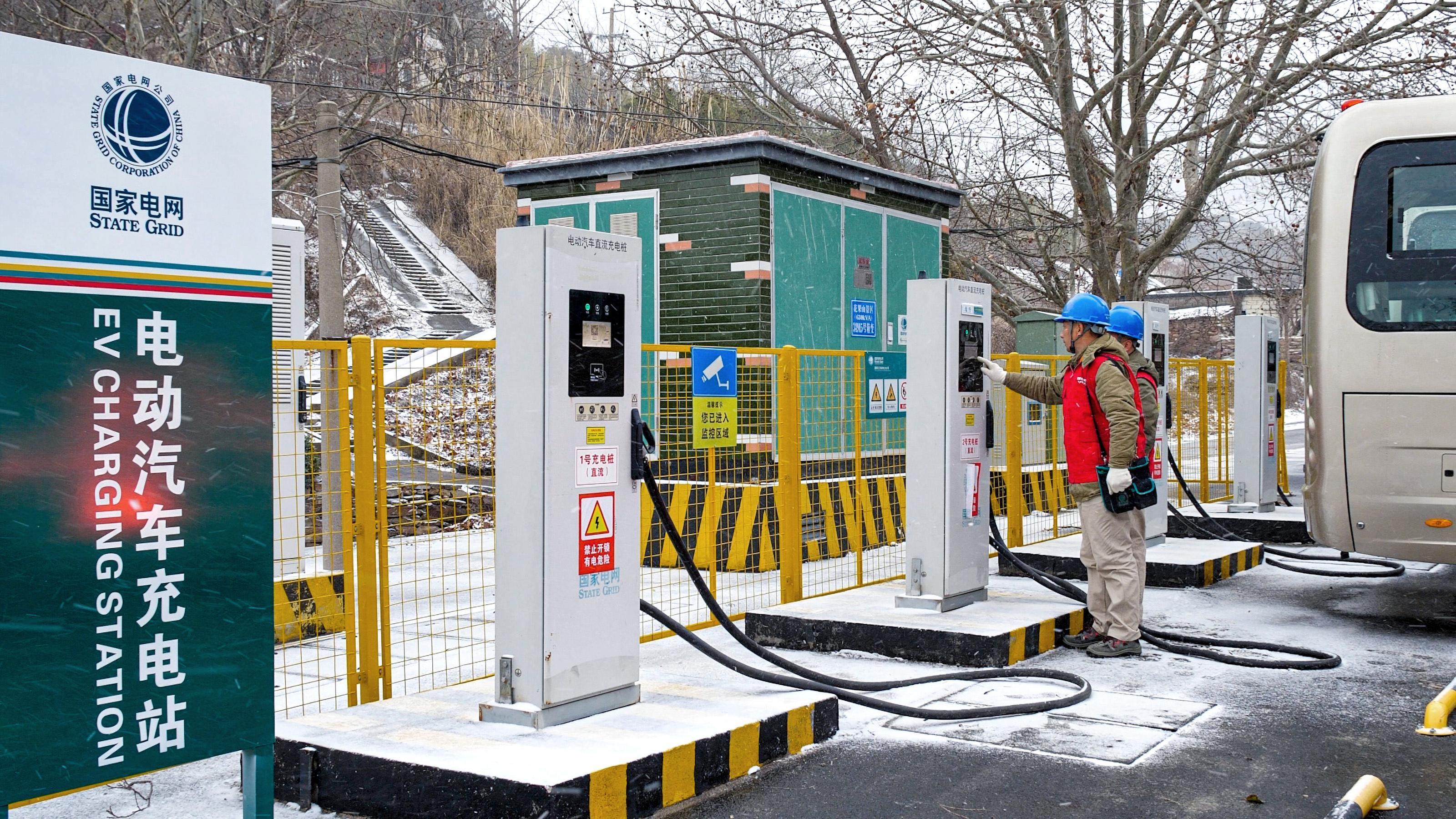 1月14日,国网连云港供电公司工作人员检查花果山景区内充电桩等用电设施。(卢颖 申甲雁)