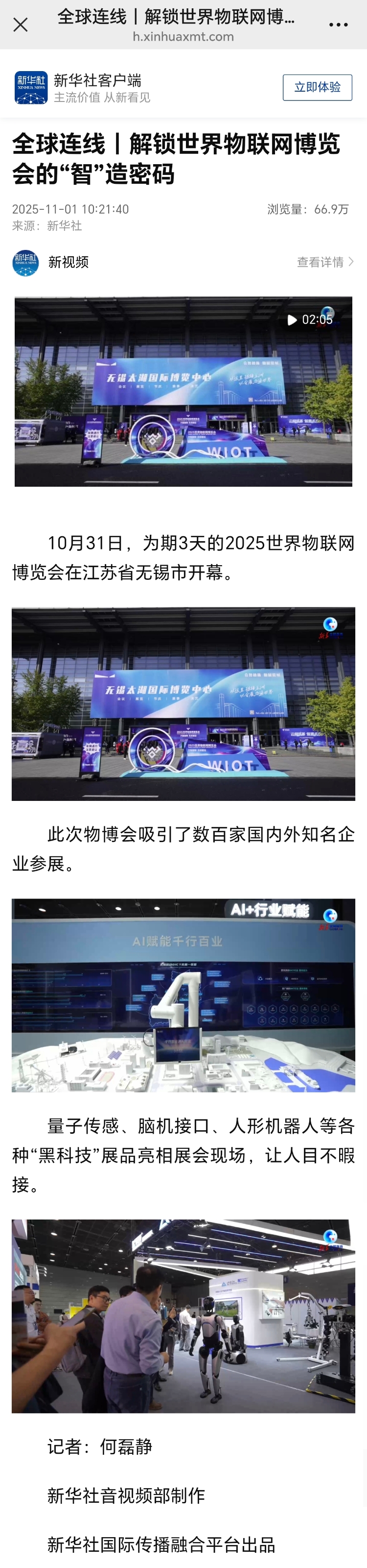 11月1日 新华社刊发视频通稿《全球连线|解锁世界物联网博览会的“智”造密码》